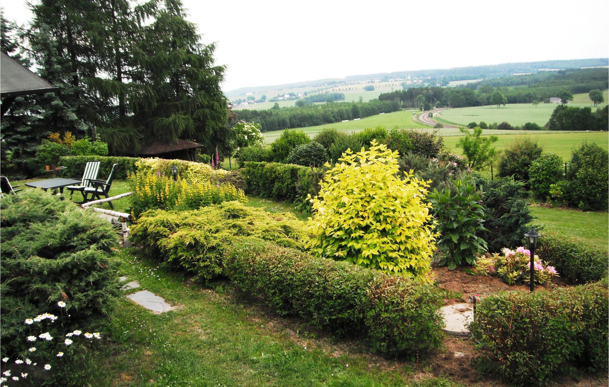 Rustikt og meget hyggeligt indrettet feriehus til 4 personer på en skråning ved skovbrynet. Dejligt panoramaudsigt til Vogtland fra terrassen.
