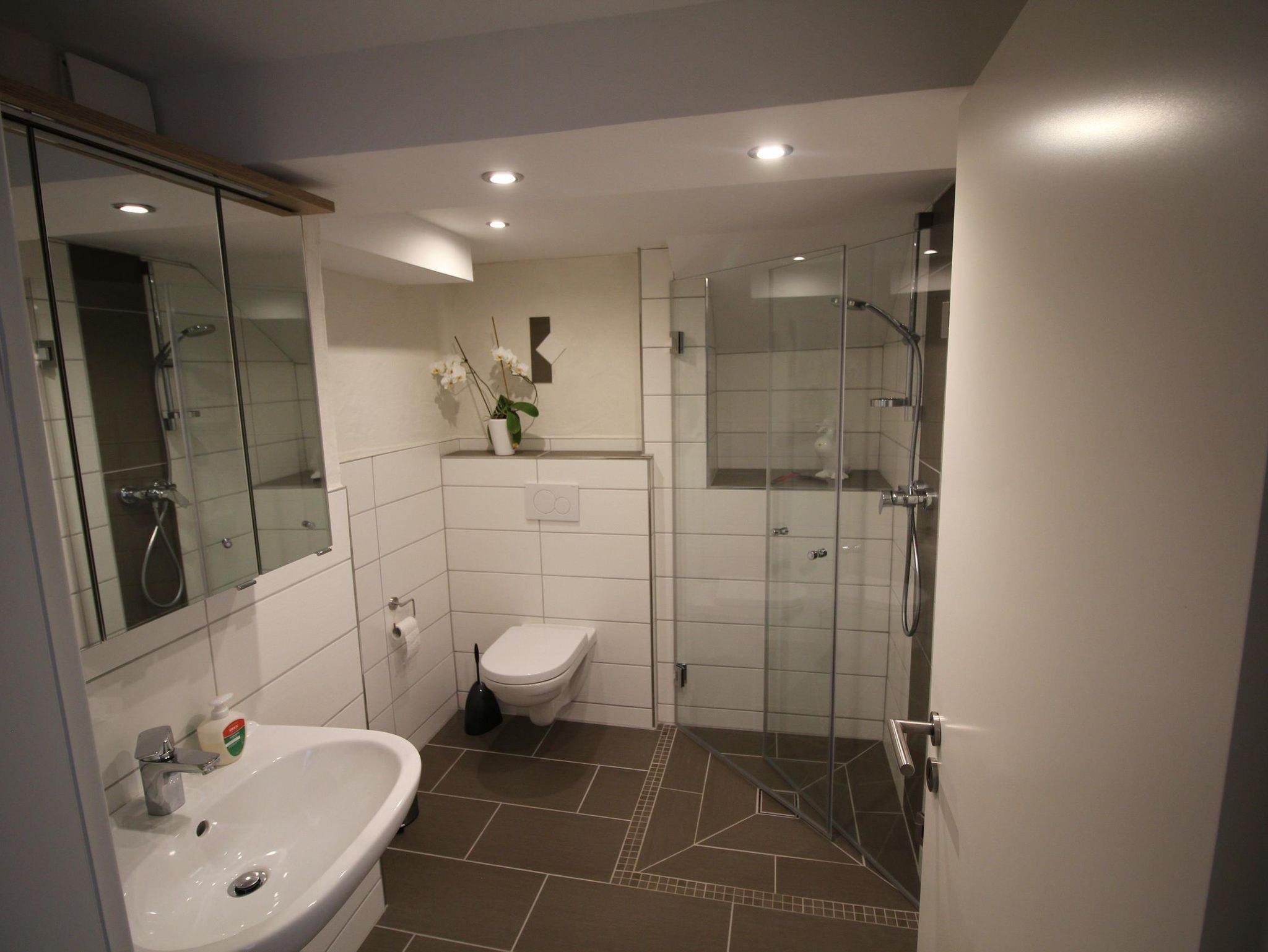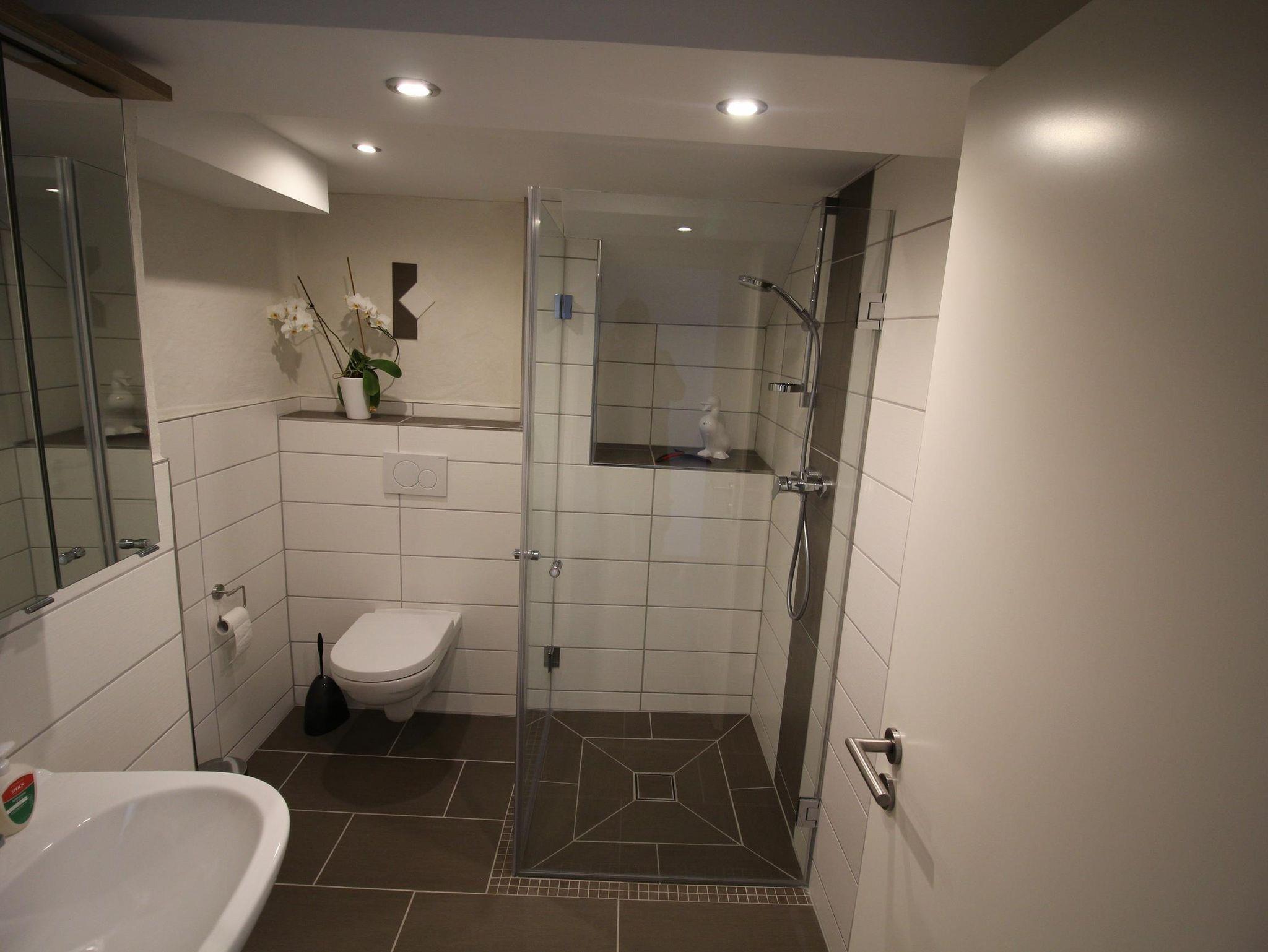 Im Bad befindet sich eine ebenerdige Dusche.