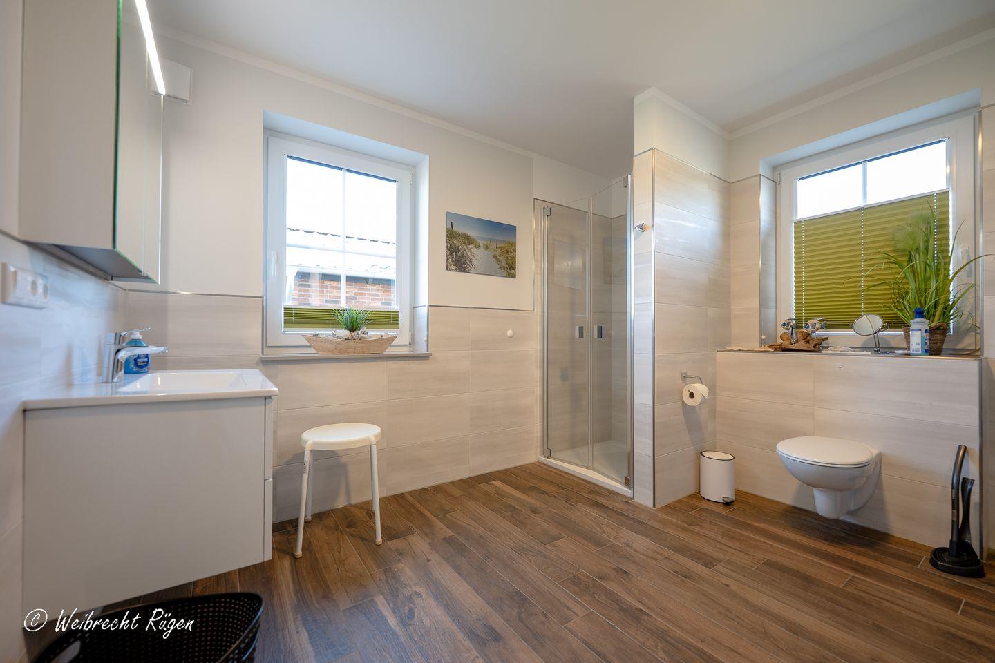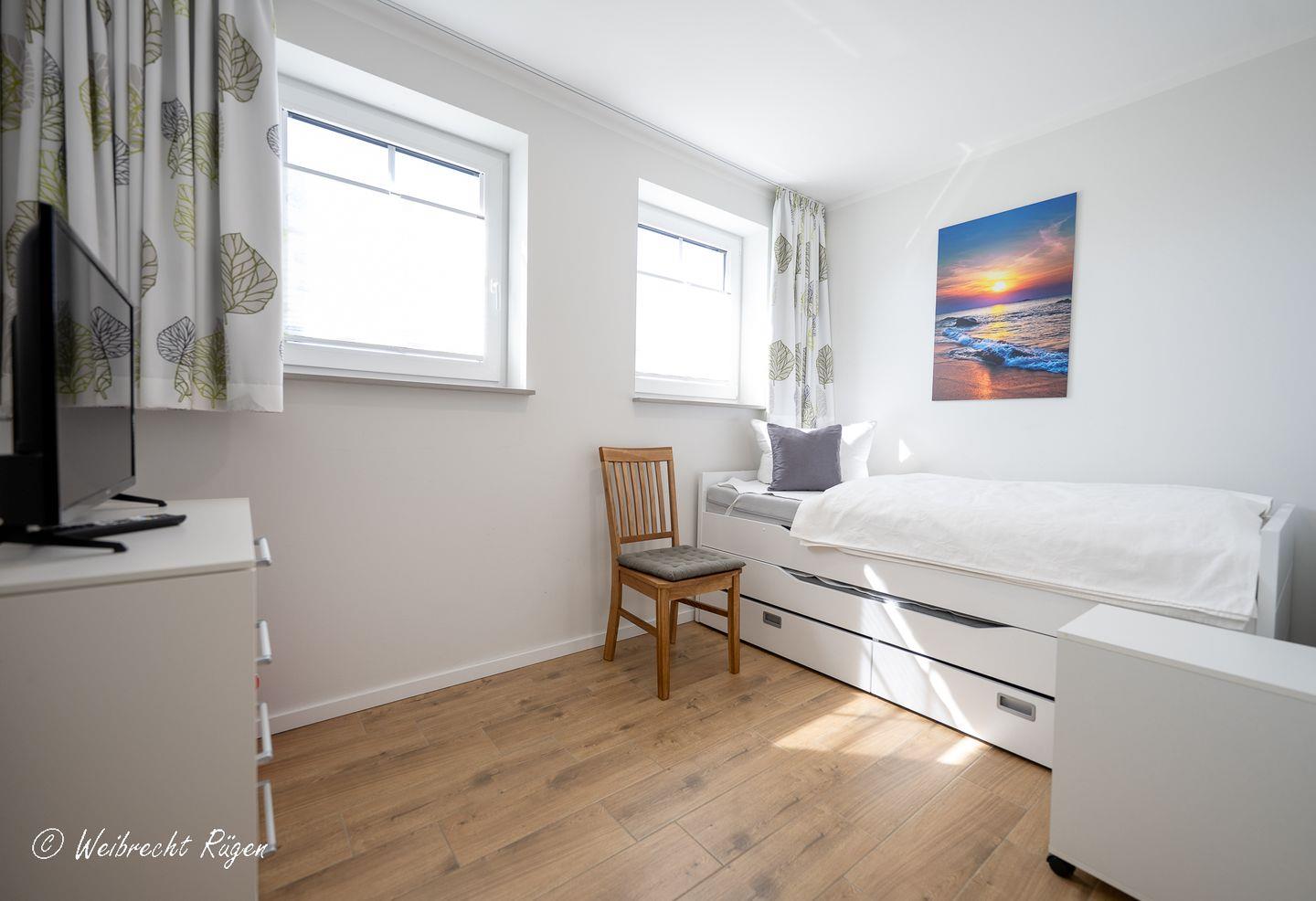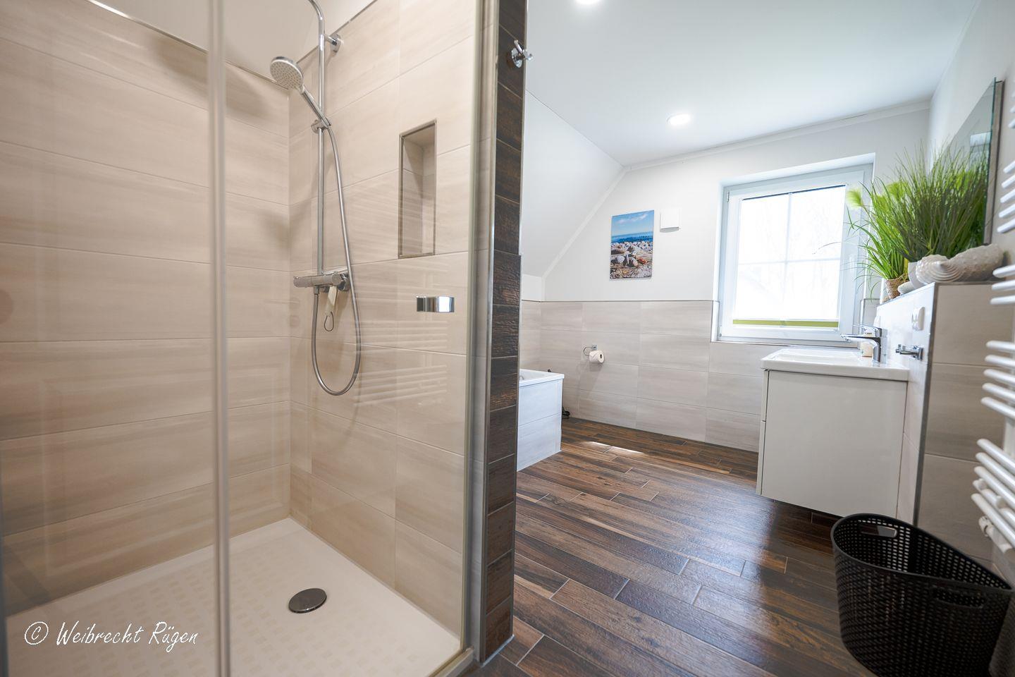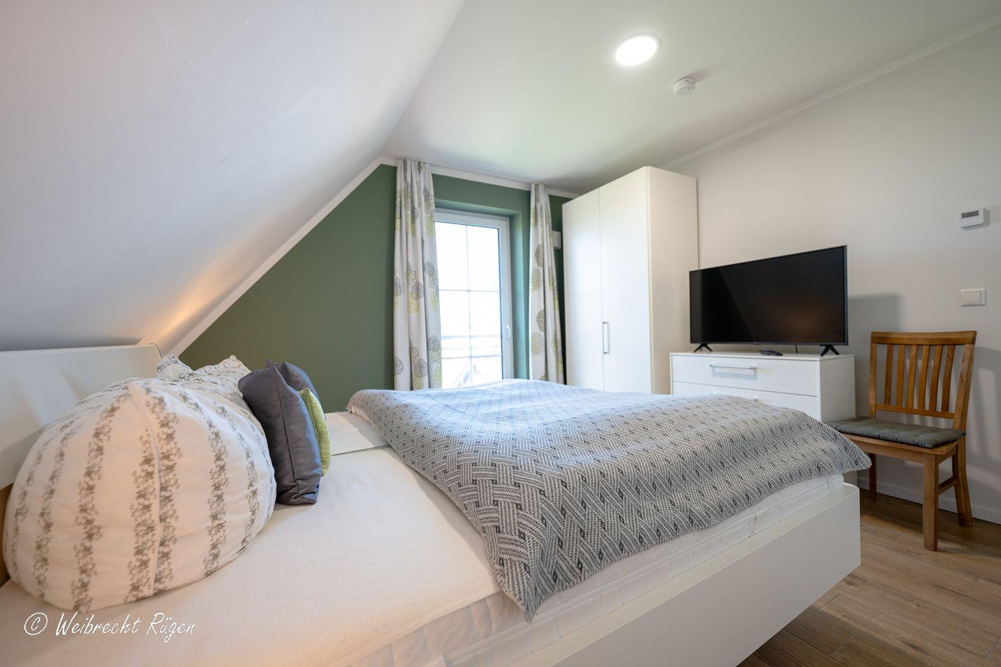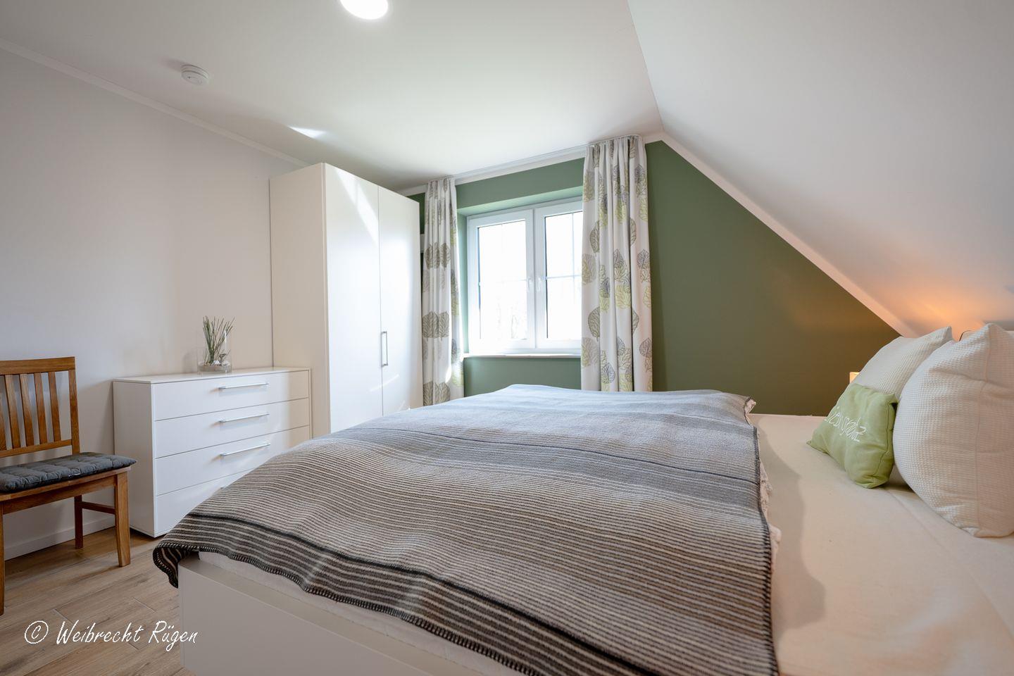 Im Dachgeschoss sind die 4 Schlafzimmer untergebracht. Die 3 großen Schlafzimmer verfügen jeweils über 1 Doppelbett. Das kleine Schlafzimmer ist mit dem ausziehbaren Kojenbett als gemütlicher Schlaf- und Rückzugsort für Ihre Kinder gedacht. Das Tageslichtbad verfügt über Badewanne, Dusche und Doppelwaschtisch.