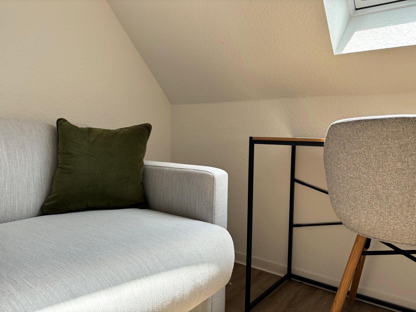 Auf Anfrage kann sich ein Co-Working Space (1 Arbeitsplatz in einem gemeinschaftlich genutztem Büro) hinzugebucht werden.