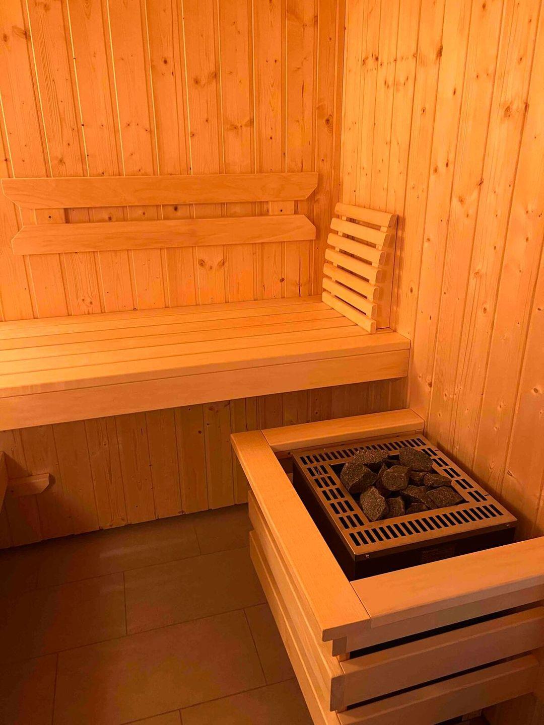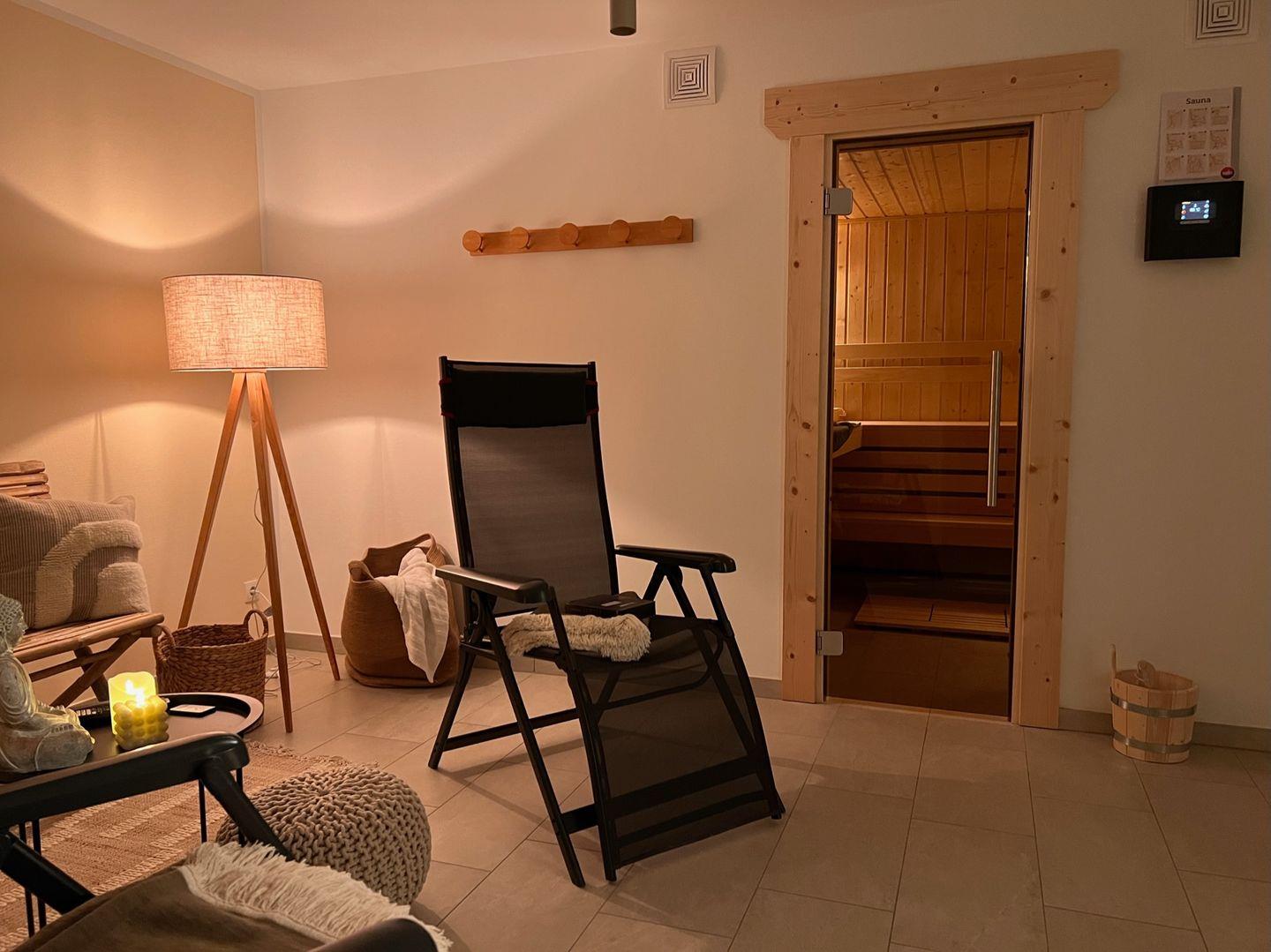 Die Anlage bietet eine Sauna mit Ruhebereich. Handtücher und Bademäntel erhalten Sie auf Anfrage. Hierfür erheben wir eine kleine Gebühr.