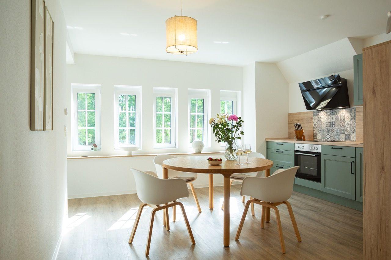 Auszeit auf Gut Vahlkamp! Wir haben das historische, baufällige Hotel Gut Vahlkamp im Artland nach KFW 55 kernsaniert und zu einer modernen Apartmentanlage umgebaut. Der Gutshof überzeugt mit modernen Baustandard und historischem Charme. Die Ferienwohnung bietet Platz für bis zu 4 Personen und einen wunderschönen Blick ins Grüne.