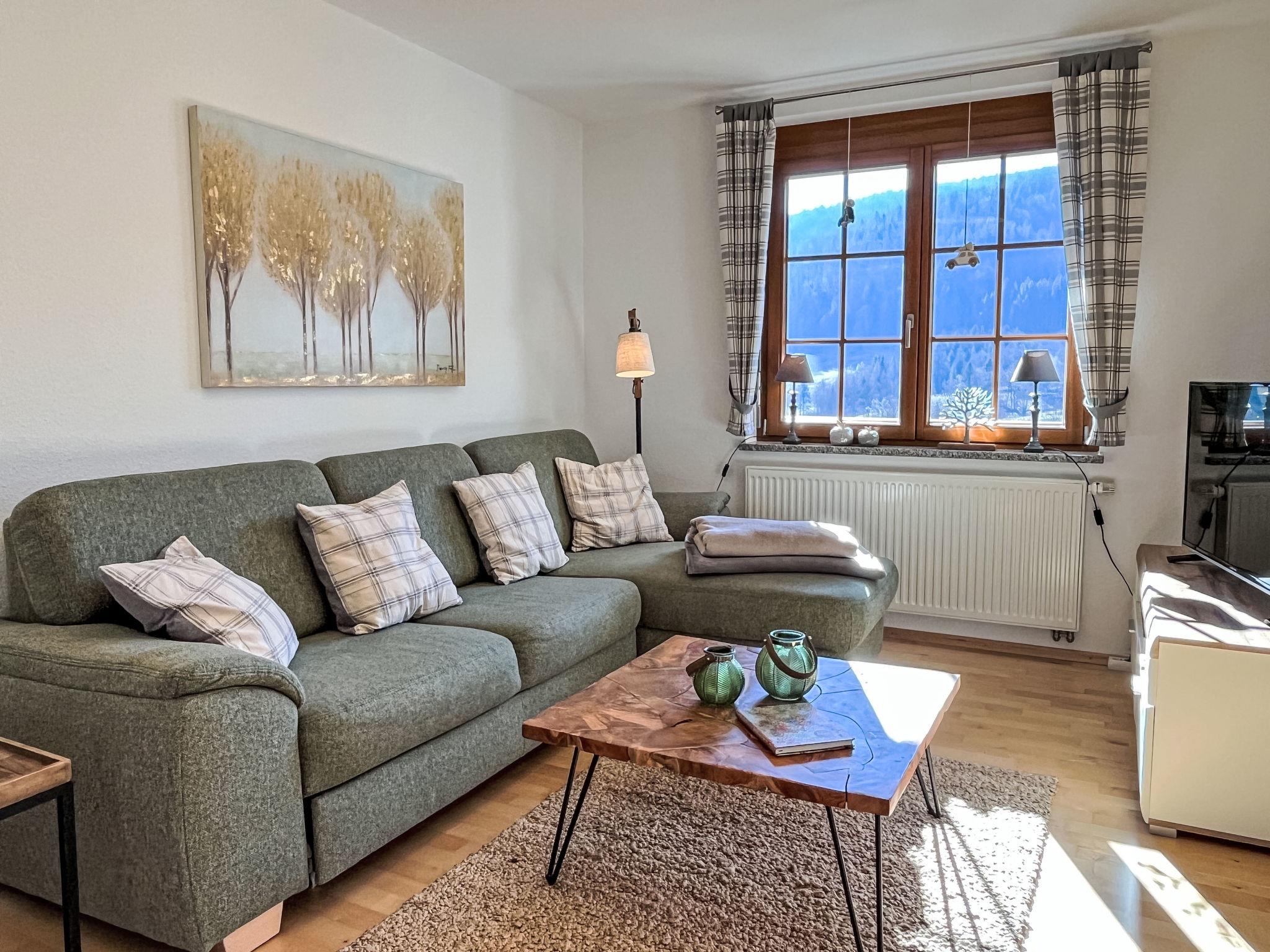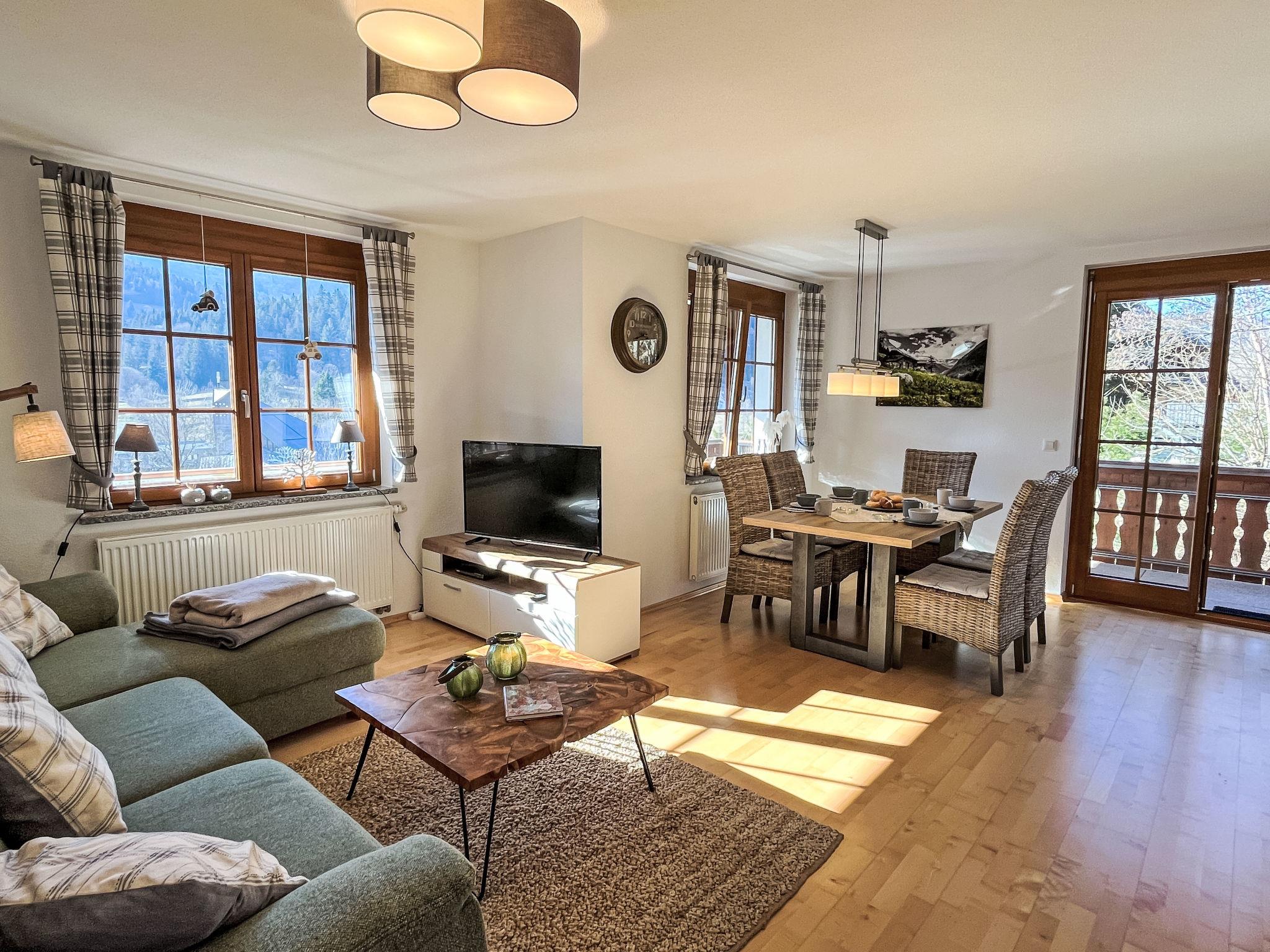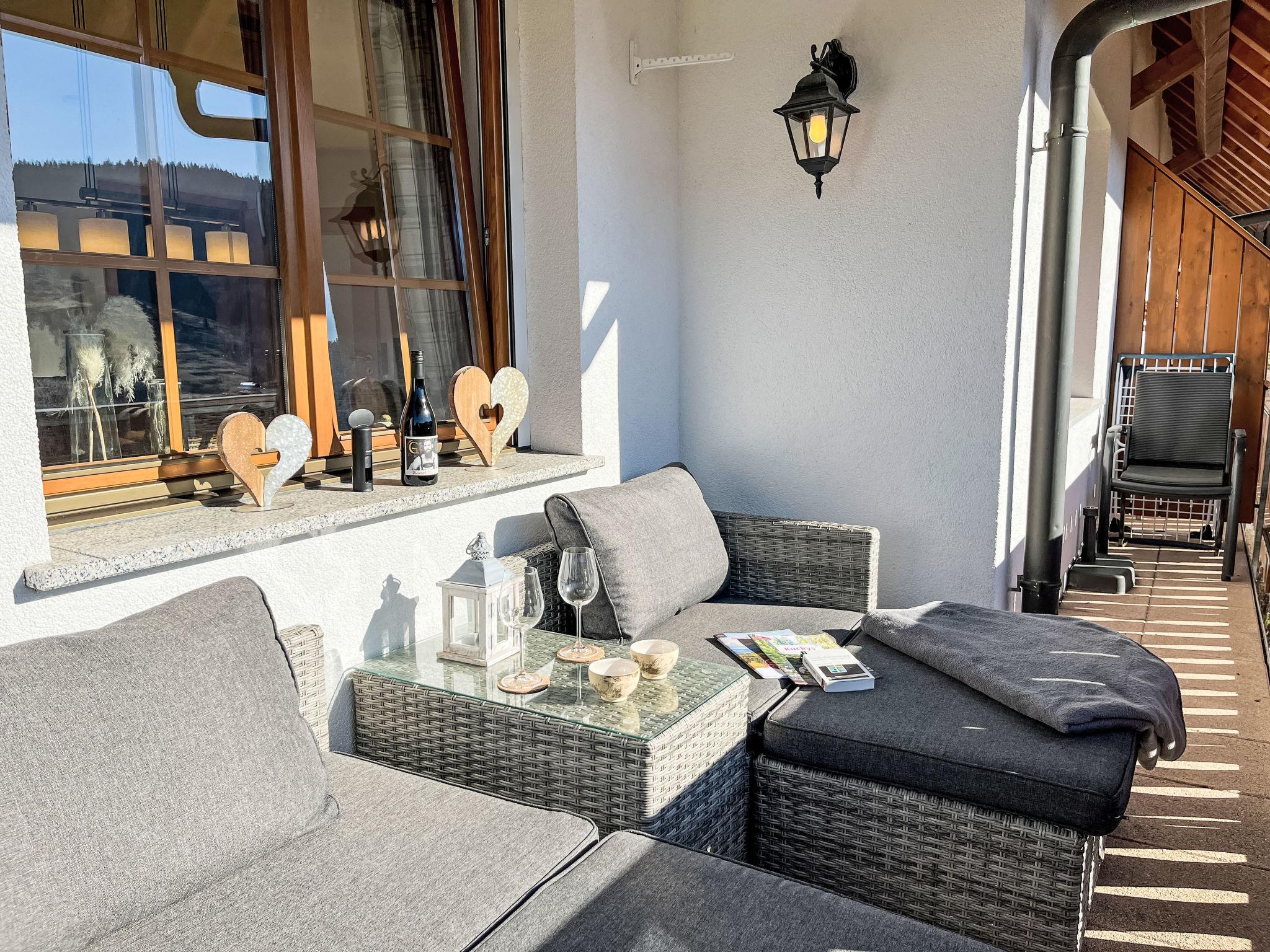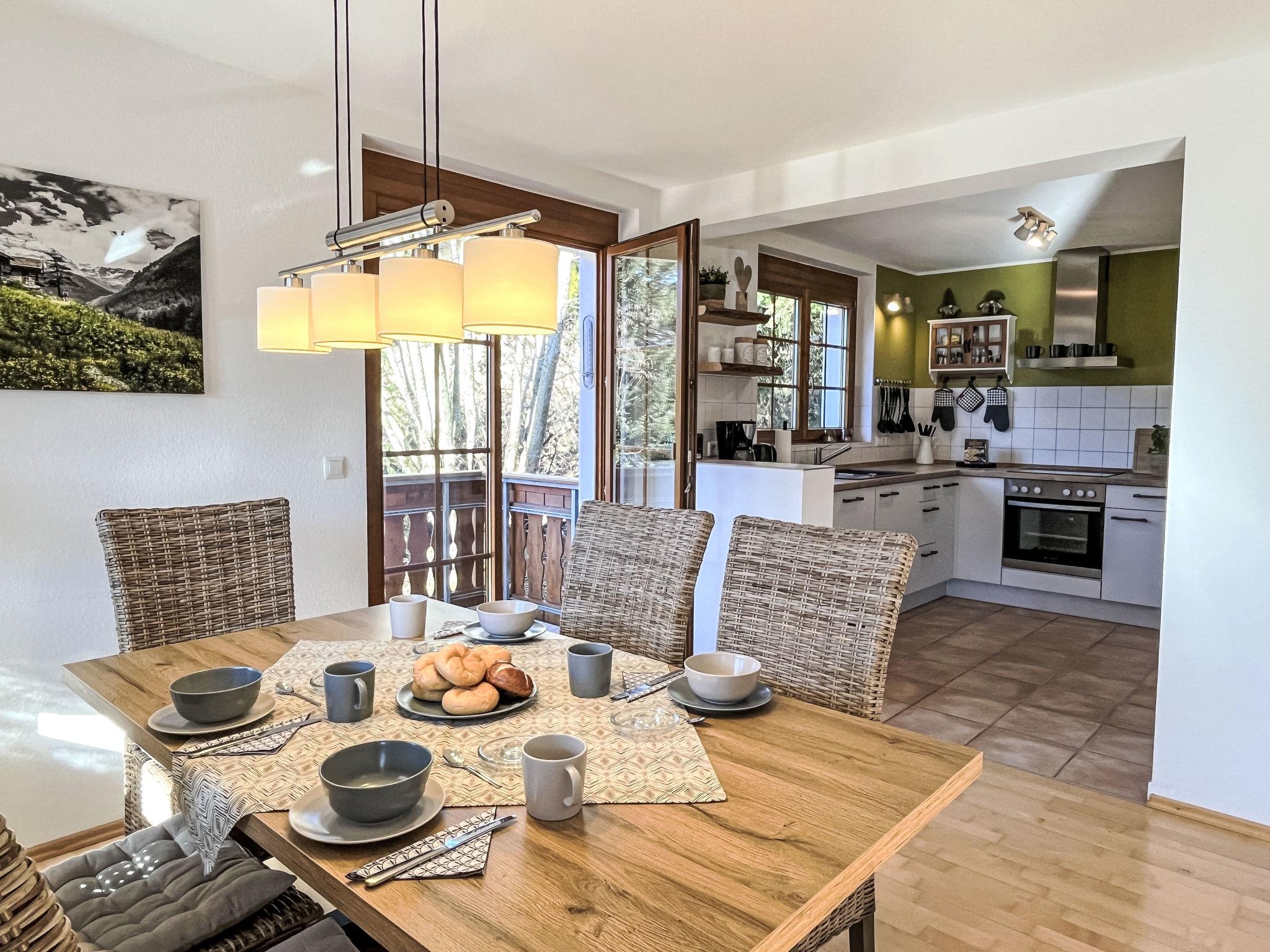 "Kleine Auszeit", 3-room apartment 90 m2, on the upper floor. Spacious and bright, renovated in 2019, modern and cosy furnishings: entrance hall. Living/dining room with dining table and satellite TV (flat screen), DVD. Exit to the balcony. Open kitchen (oven, dishwasher, 4 ceramic glass hob hotplates, toaster, kettle, electric coffee machine). Shower/WC. Heating. Upper floor: 1 large room with 1 double bed (160 cm, length 200 cm). 1 room with 2 beds (80 cm, length 200 cm). Bath/WC with corner bath. Underfloor heating. Large balcony, south-west facing position. Balcony furniture, electric barbecue (portable), box-room. Marvellous view of the mountains, the valley, the ski run and the resort. Facilities: children's high chair, baby cot for up to 2 year olds, hair dryer. Internet (WiFi, free). Parking (1 car), garage (1 car) at the house. Please note: non-smokers only. Private entrance, smoke alarm, fire extinguisher, no lift.