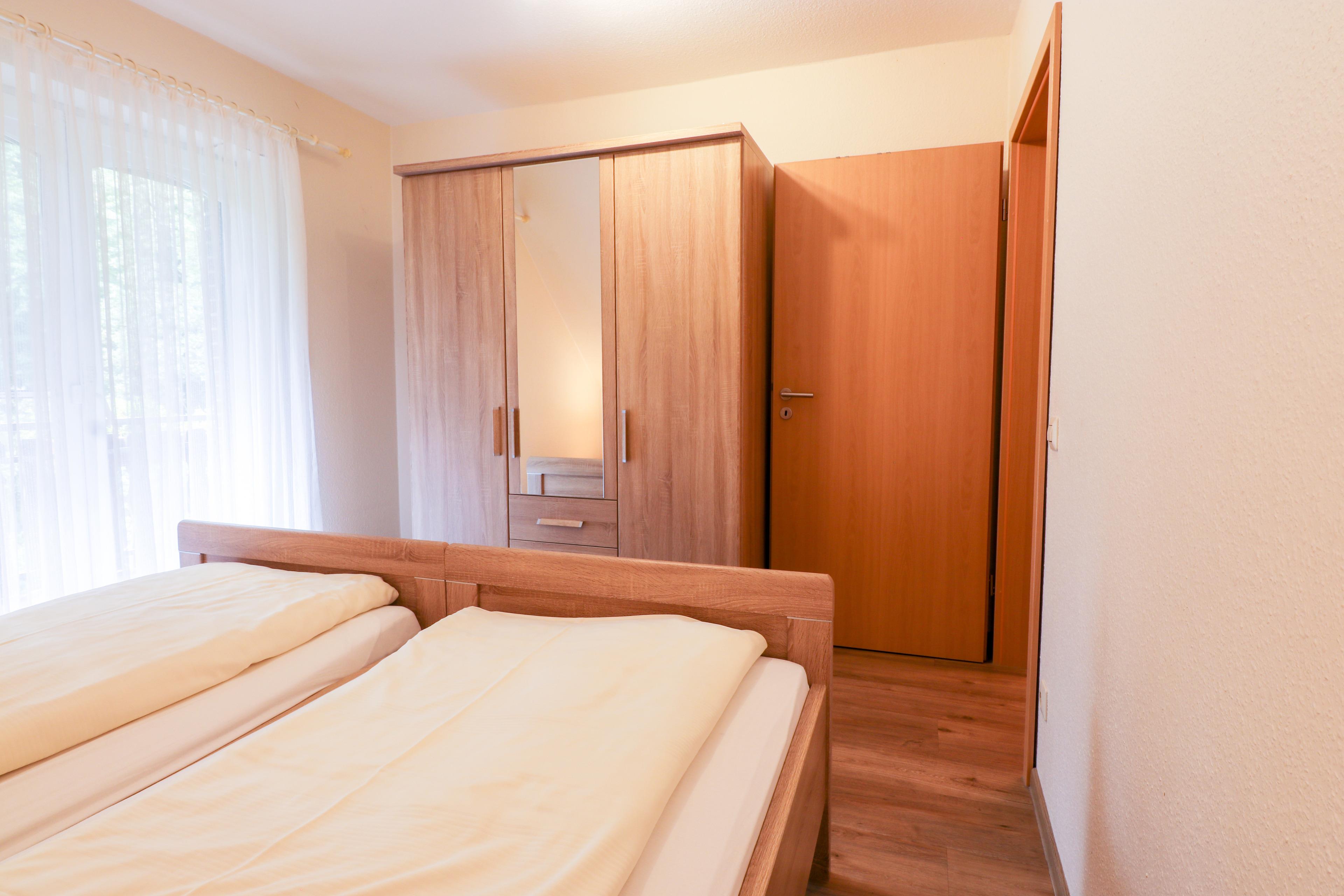 Diese Wohnung ist ideal für 4 Personen, aufgeteilt in zwei Schlafzimmer mit jeweils zwei Betten. Die Einzelbetten lassen sich problemlos umstellen, so dass man diese als Doppelbett nutzen kann.