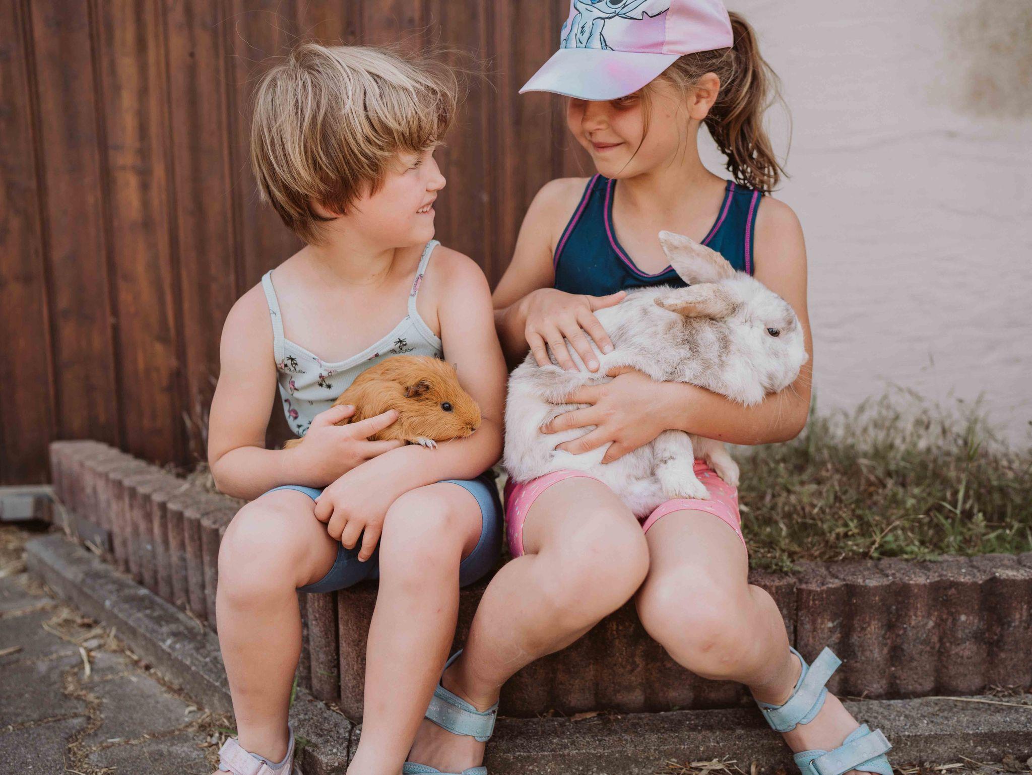 Bei uns ist tierisch was los. Unsere Ponys, Ziegen, Hasen und Katzen freuen sich auf unsere kleinen Gäste.