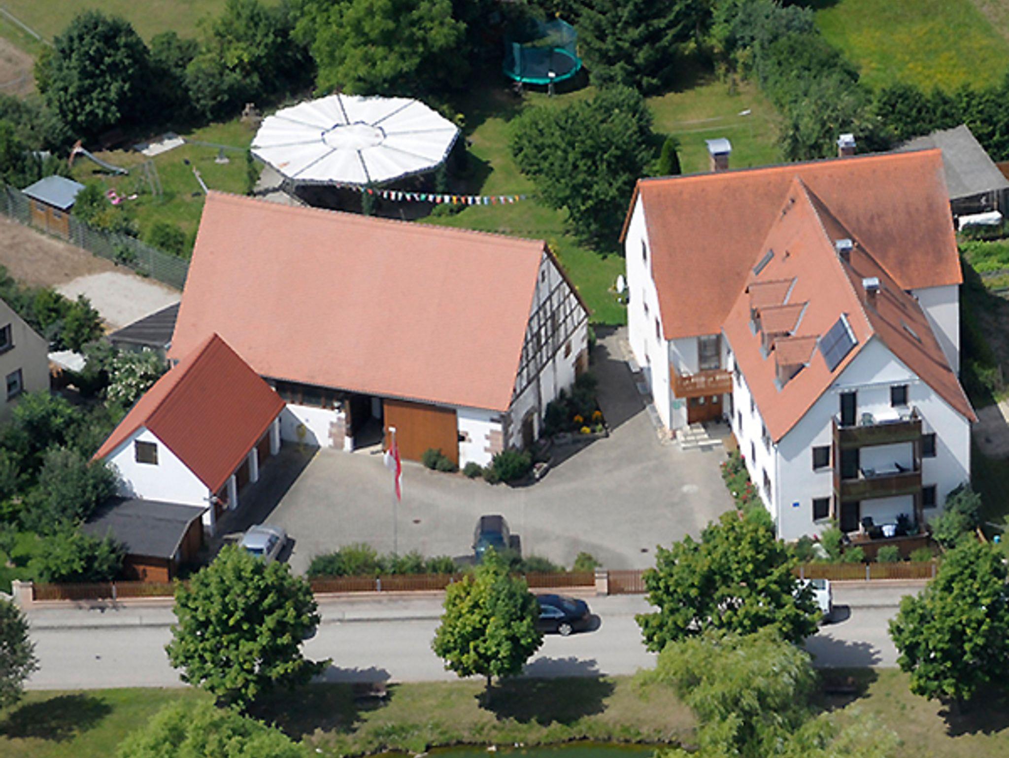 Unser Feriendomizil befindet sich am Ortsrand von Merkendorf in ruhiger Lage mit Blick auf Wiesen und Felder.