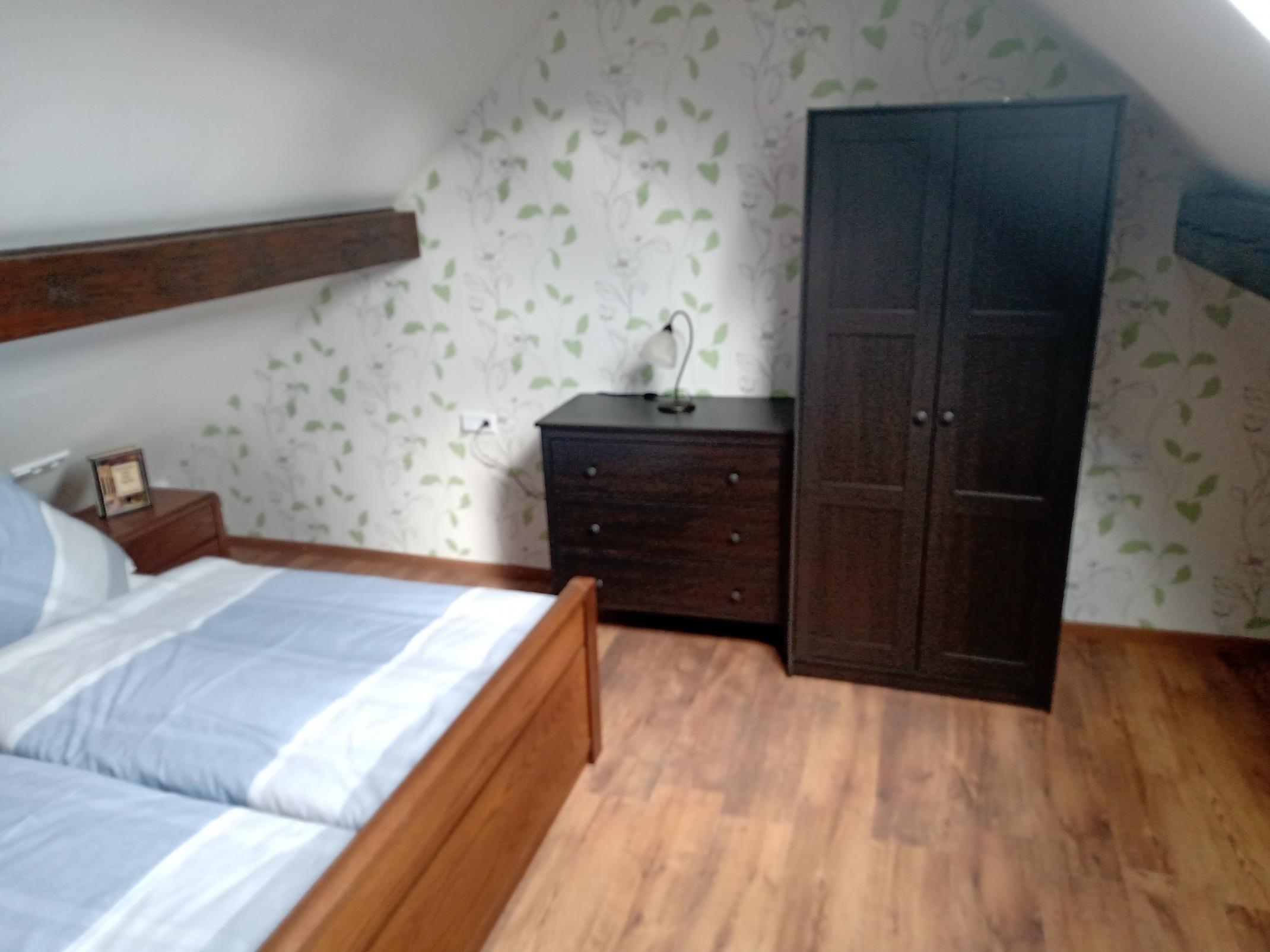 Unsere Ferienwohnung "Taubenschlag" ist eine liebevoll neu renovierte Wohnung die im Dachgeschoss unsres Hauses liegt. Eine gemütliche Wohnung mit Küche, Wohnzimmer, Schlafzimmer und Bad. Nicht unbedingt was für Großgewachsene wegen der Deckenhöhe ( 2m ) in Diele und Bad, aber im Wohnzimmer, Schlafzimmer und Küche gibt es reichlich Platz auch nach oben.