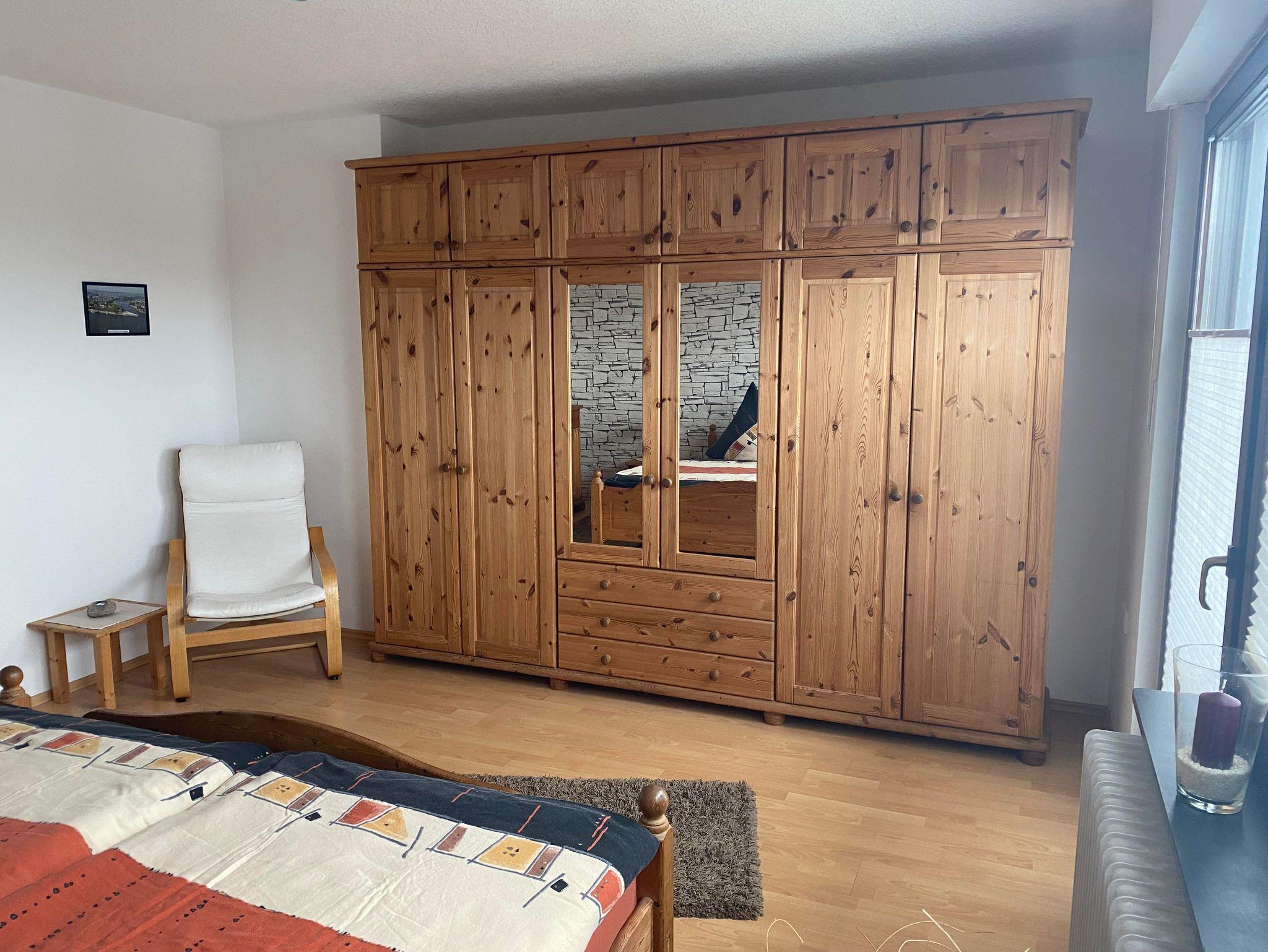 Schlafzimmer 18 qm: Doppelbett mit guten Matratzen 1,80 x 2,00 m, 2 Nachttische, Kinderbett, Kommode, großer Kleiderschrank 3,00 m, angrenzender Balkon 5 qm.