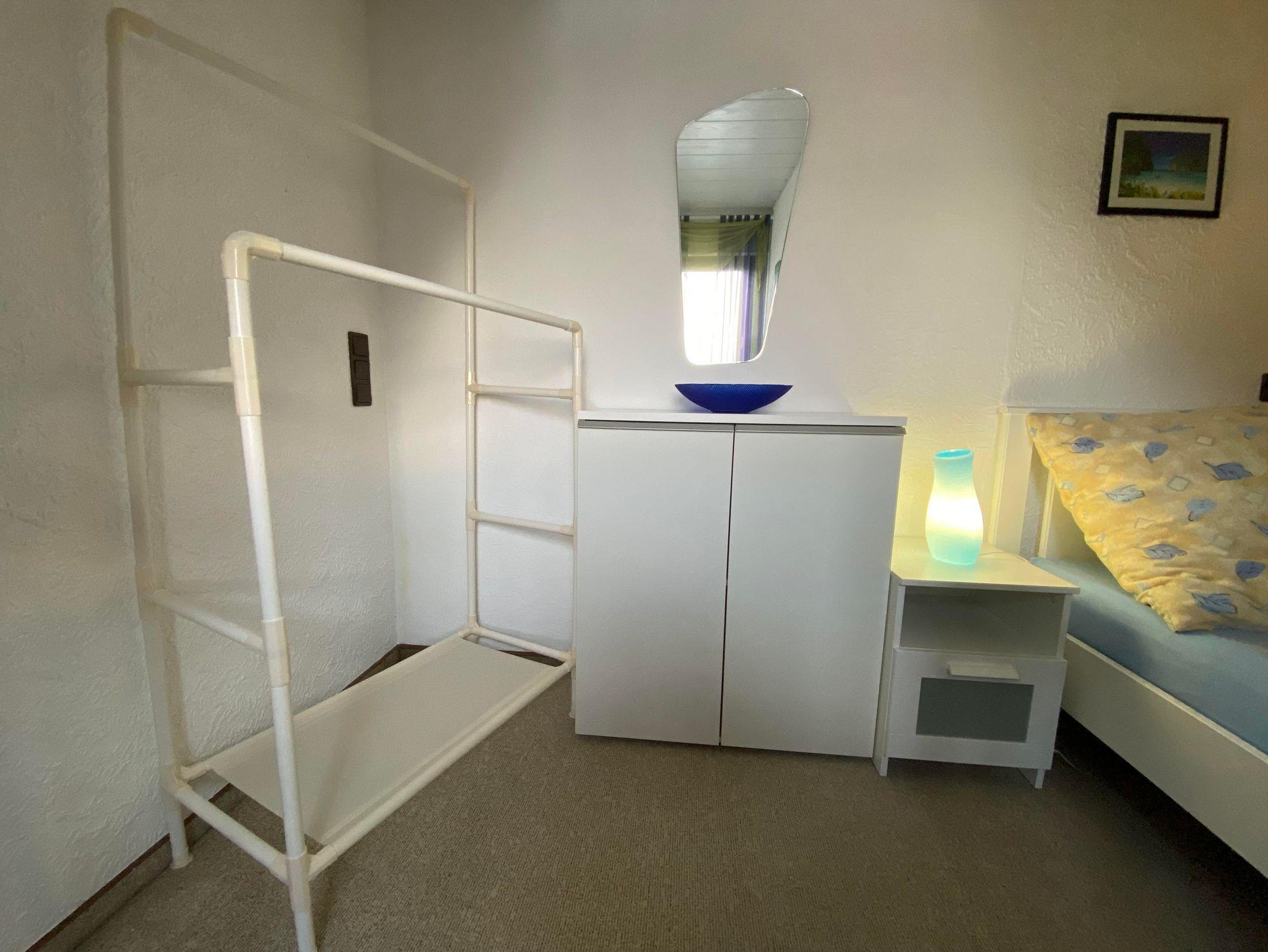 Empore 7 qm: Doppelbett 1,40 x 2,00 m, 2 Nachtkonsolen, 1 Kommode, Ständer mit 2 Kleiderstangen