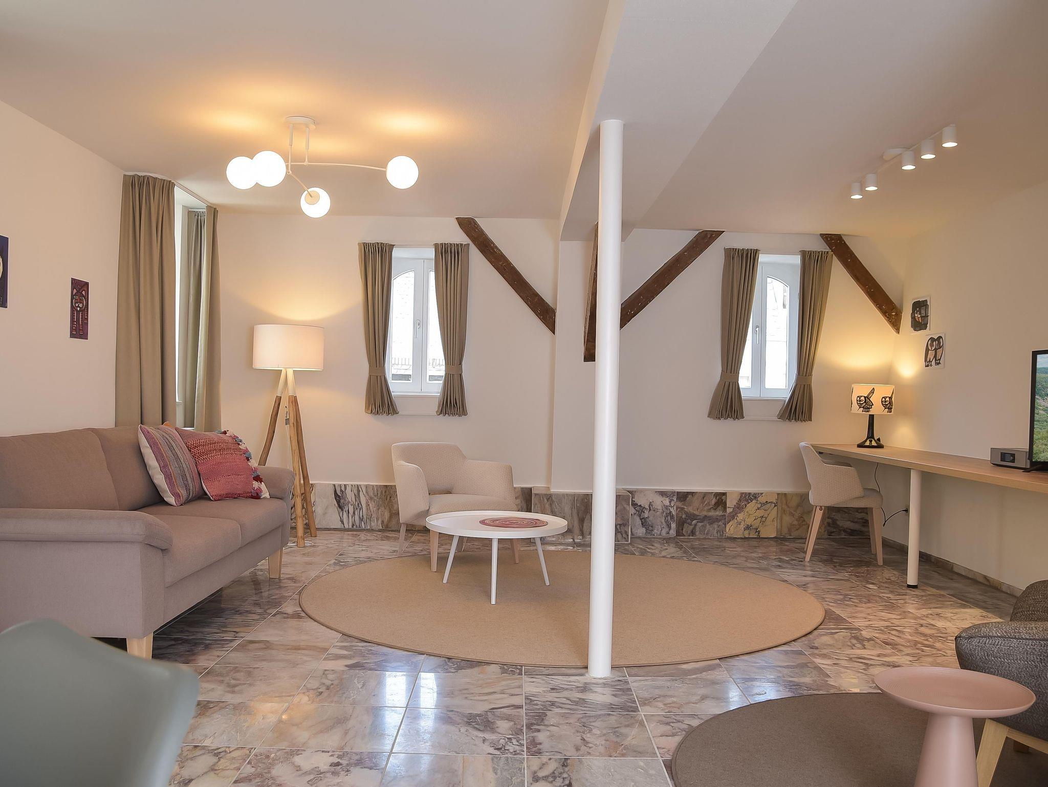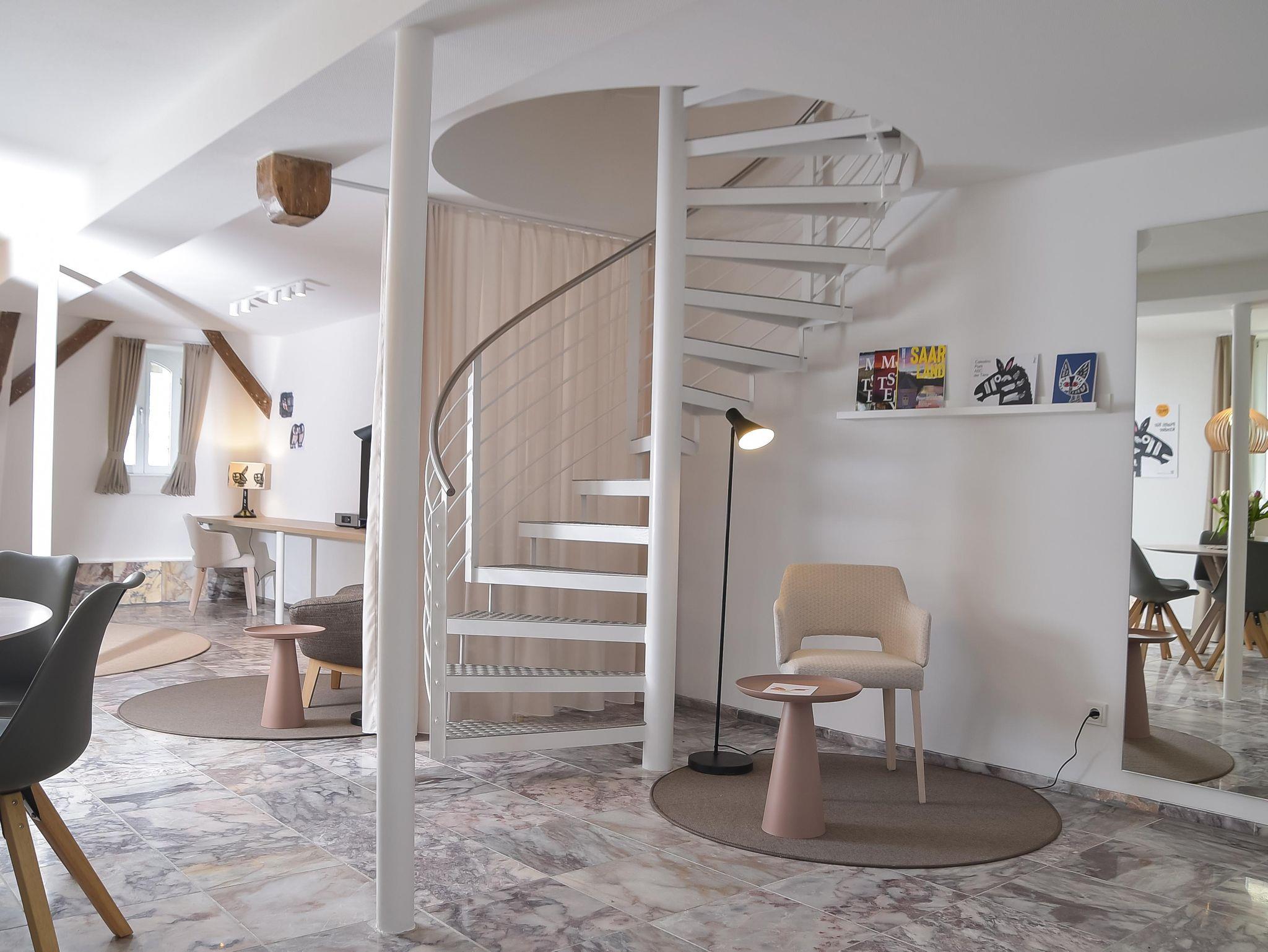Die Ferienwohnungen Stadt Merzig, Appartement Piatti und Appartement Bücherliebe sind beide mit 5 Sternen ausgezeichnet und sind mitten im Herzen von Merzig. Die beiden Wohnungen sind zweigeschossige Maisonette Wohnungen und befinden sich in der idyllischen Fußgängerzone in einem komplett restaurierten, denkmalgeschützten Altbau. Über den Dächern der Stadt bestechen die Wohnungen durch ihre sichtbar offene Dachkonstruktion und das alte Sprengwerk. Die abgeschliffenen Balken im oberen Geschoss zu welchen Sie durch eine Wendeltreppe gelangen, verleihen einen charmanten und gemütlichen Charakter.