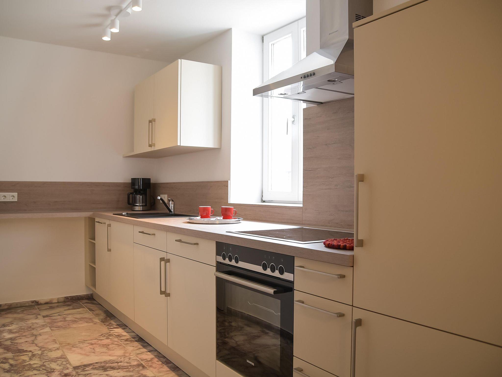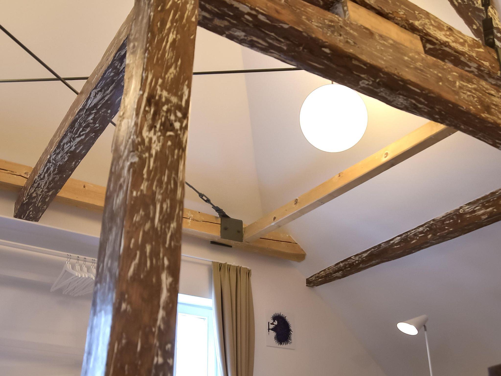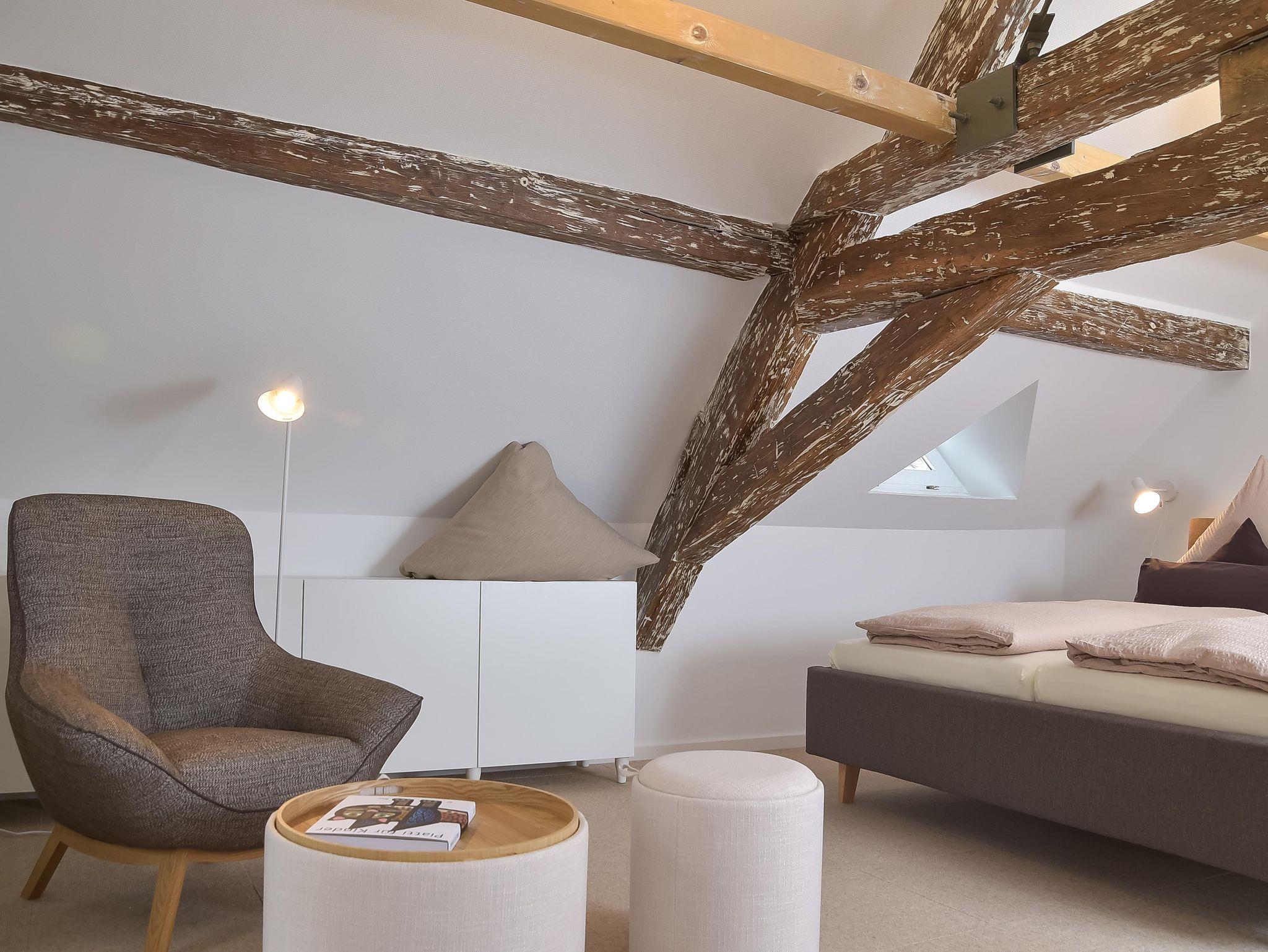 Appartement Piatti ist eine zweigeschossige Maisonettewohnung für 2-3 Personen in einem denkmalgeschützen Stadthaus. Küche, Essbereich, Wohnzimmmer, Leseecke, Schreibtisch, Gäste WC und ein kleinen Abstellraum sind unten. Über eine Wendeltreppe erreichen Sie den Schlafbereich mit offenm Sprengwerk. Die alten Balken (obwohl der Raum sehr hoch ist, müssen Sie sich bei einigen Balken leicht bücken) haben wir abgeschliffen. Hier ist ein Doppelbett, Schrank Sessel und eine Schlafcouch ( 150 x 200 cm ) und das Bad. Im Keller finden Sie Waschmaschine und Trockner und ein Fahrradraum. Ausgezeichnet mit 5 Sternen
