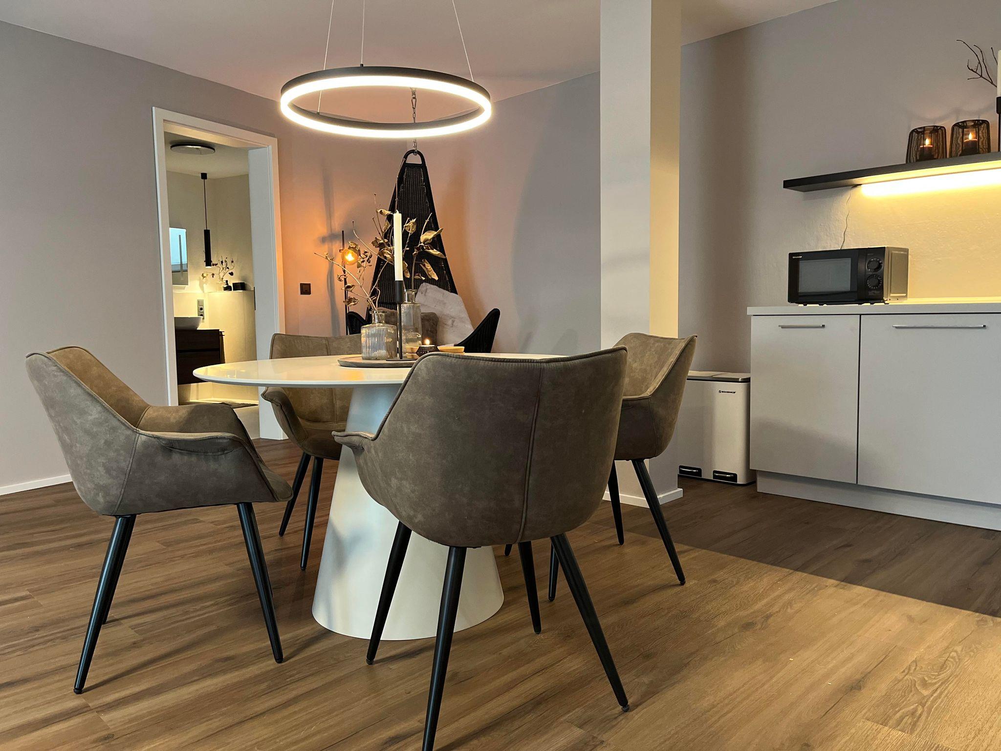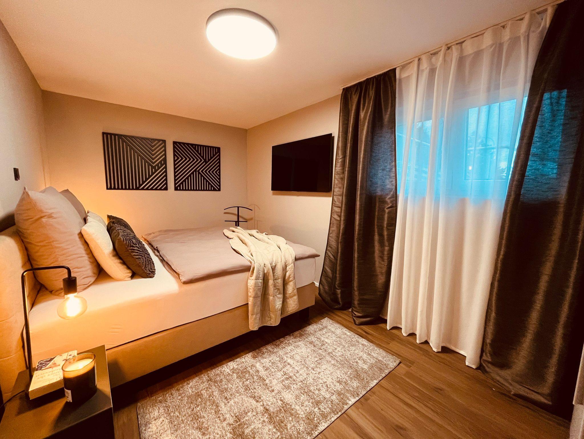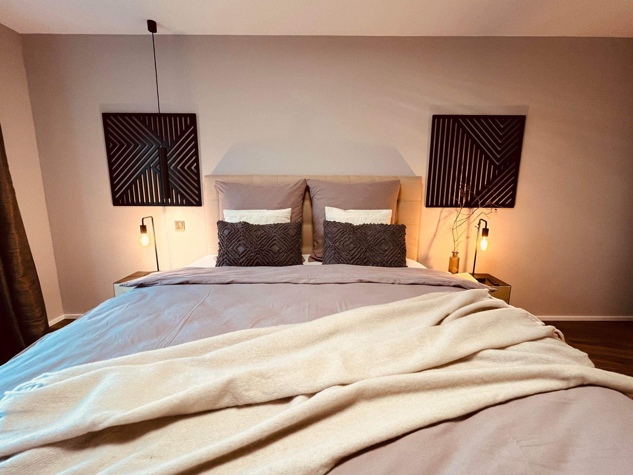 Luxuriöses, neu gebautes Souterrain-Appartement mit 2 Schlafzimmern und 3 großen Smart-TV. Das Appartement „Die Eine“ lässt, was die Einrichtung anbelangt, keine Wünsche offen. Möbel der Extraklasse, dazu ein Wellnessbad in Komfortausstattung. Genießen Sie das Frühstück auf Ihrer Sonnenterrasse mit Panoramablick über das Saartal. Der private Garten ist eingezäunt und somit ideal für Haustiere.