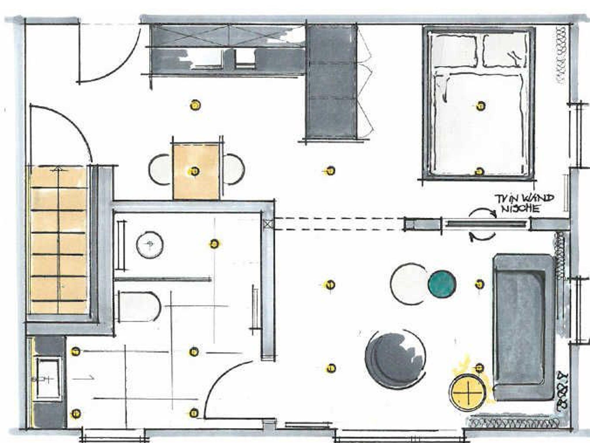 Bad: Bodengleiche Dusche mit großem Duschkopf und Handbrause, Handtuchheizkörper, Fön, separater Wäscheraum mit Waschmaschine und Trockner auf Anfrage.