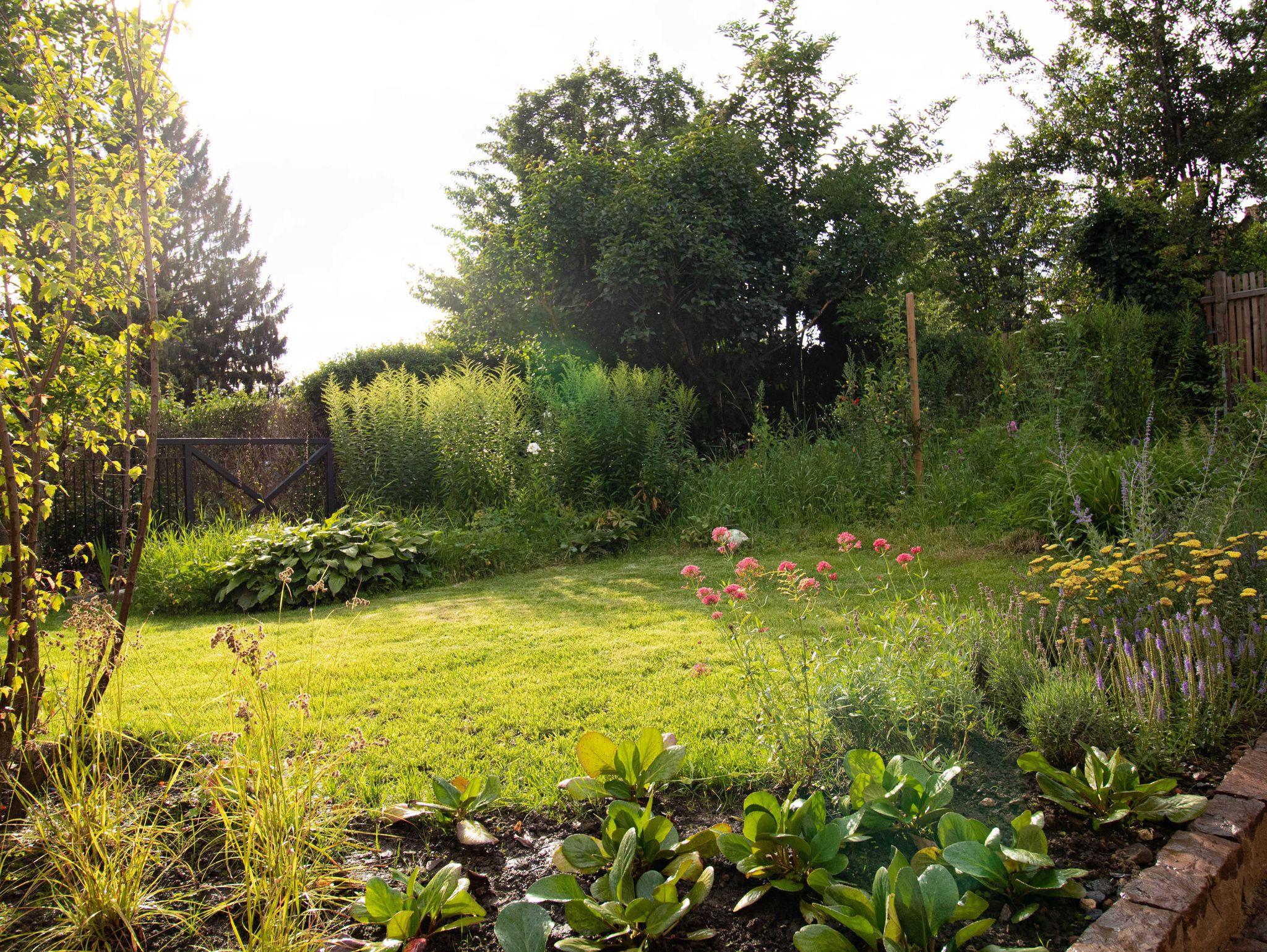 Garten und Dachterrasse mit Blick ins Grüne sorgen für Entspannung pur.