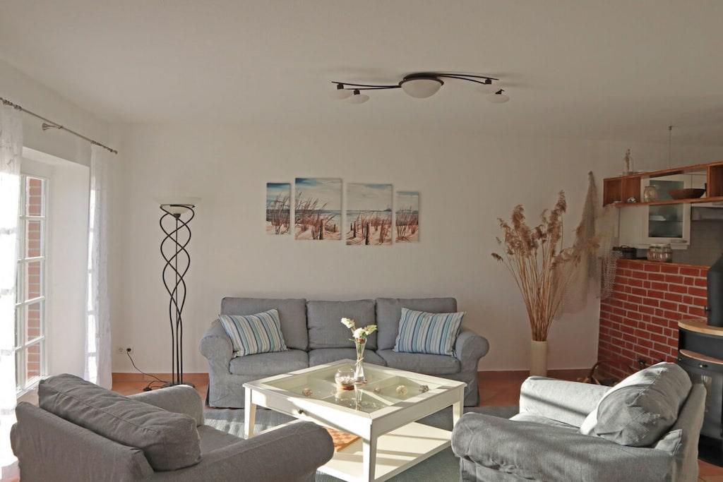 Willkommen in unserer komfortablen 2-Etagen-Ferienwohnung Tamme. Die gehobene Ausstattung ist auf max. 6 Personen (4 Erw.+ 2 Kleinkinder) abgestimmt. Der großzügige Wohnbereich im Erdgeschoss mit vielen Fenstern und Kamin lädt zum Verweilen ein. Lassen Sie sich von dem wundervollen Blick auf die idyllische Boddenlandschaft verzaubern. Direkt an das Wohnzimmer grenzt die Gartenterrasse mit bequemer Sitzgruppe. Die hochwertige Küche befindet sich ebenfalls im Erdgeschoss und bietet viel Platz zum Essen oder für einen geselligen Spielabend. Zur Ferienwohnung gehören weiterhin 2 getrennte Schlafzimmer im Dachgeschoss. Neben dem modernen Duschbad im Dachgeschoss gibt es ein Gäste-WC im Erdgeschoss.