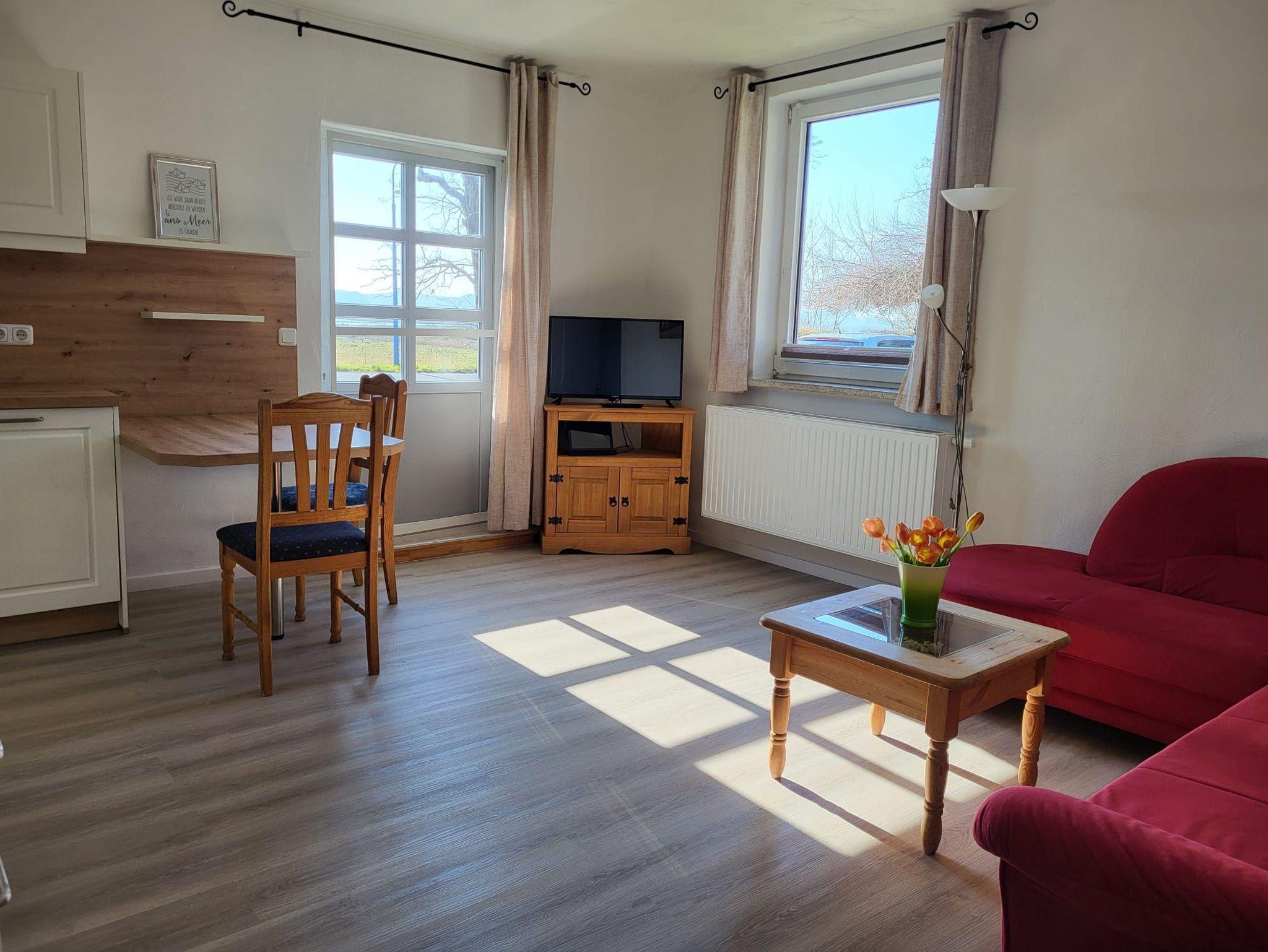 Die Ferienwohnung hat eine eigene Terrasse mit einem herrlichen Seeblick. Auf 45 qm Fläche, mit einem separaten Schlafzimmer, ein Wohnzimmer mit einer ausziehbaren Schlafcouch, TV und mit einer voll ausgestatteten Einbauküche sowie Badezimmer mit Dusche/WC bietet die Wohnung eine optimale Wohnqualität.