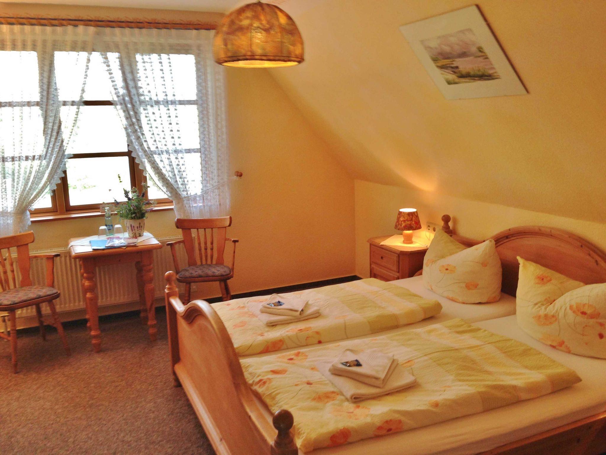 Up'n Hoff ist eine Pension, geschmückt mit einem traditionellen Reetdach. Das Haus im Landhausstil befindet sich in ruhiger Lage umgeben vom herrlichen Gutspark und einem großen Garten. Die Doppelzimmer mit Aufbettung sind modern und gemütlich eingerichtet. Alle Zimmer sind ausgestattet mit Dusche/WC, Föhn und Sat-TV. Eine kleine zentrale Kaffeeküche mit Kühlschrank steht allen Gästen zur Verfügung.