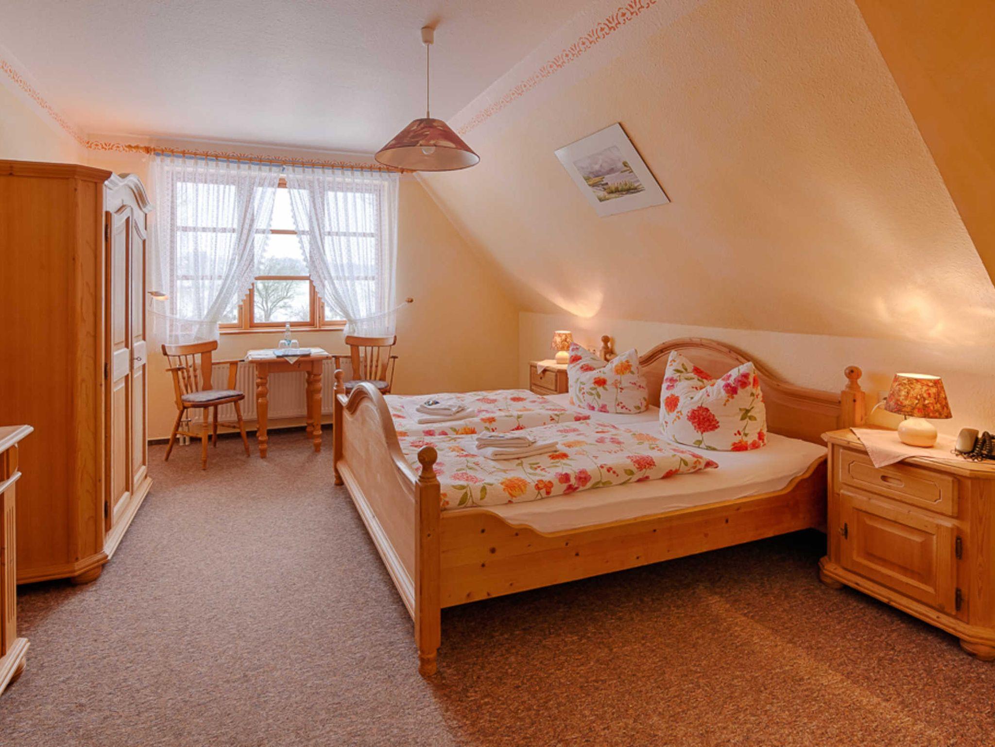 In dem reetgedeckten Haus gibt es 12 Zimmer für zwei bzw. drei Personen auf insgesamt 3 Etagen. In der Pension ist auch die Anmeldung für alle unsere Gäste untergebracht.