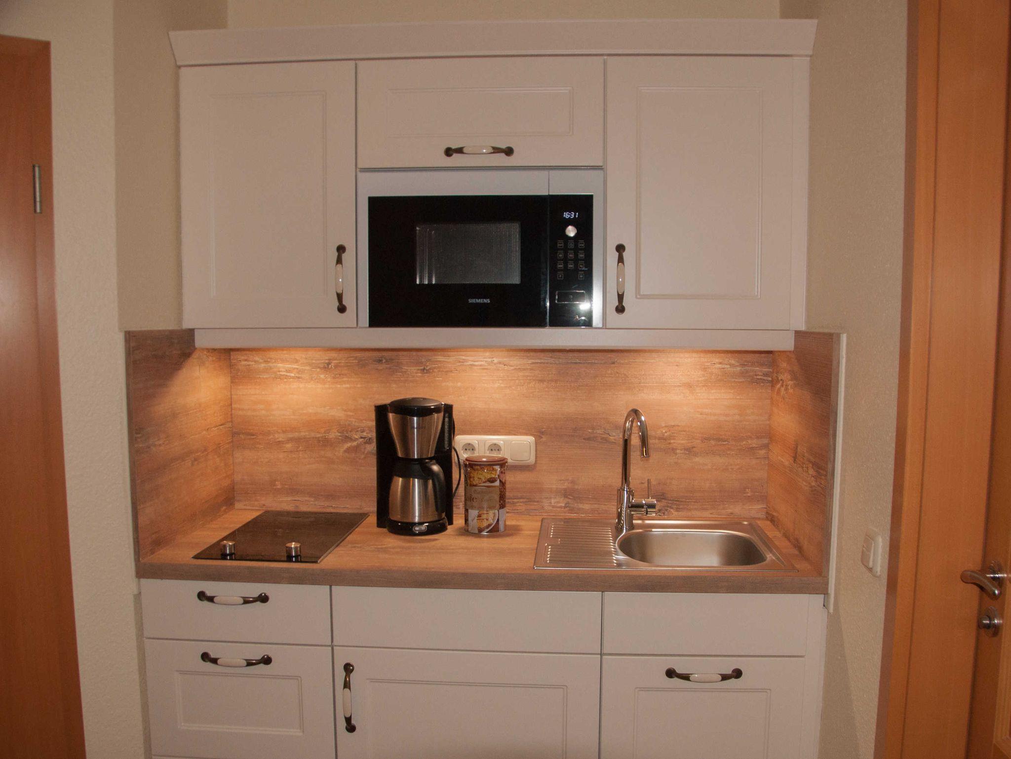 Dieses wunderschöne Appartement im 1. OG (ca. 28 qm) verfügt über einen kombinierten Schlaf- und Wohnbereich mit Pantryküche.