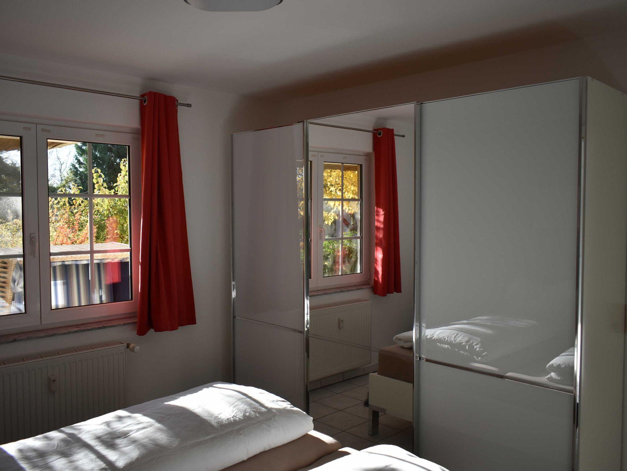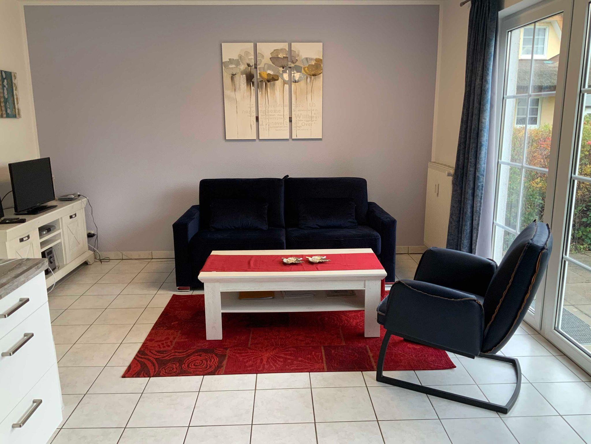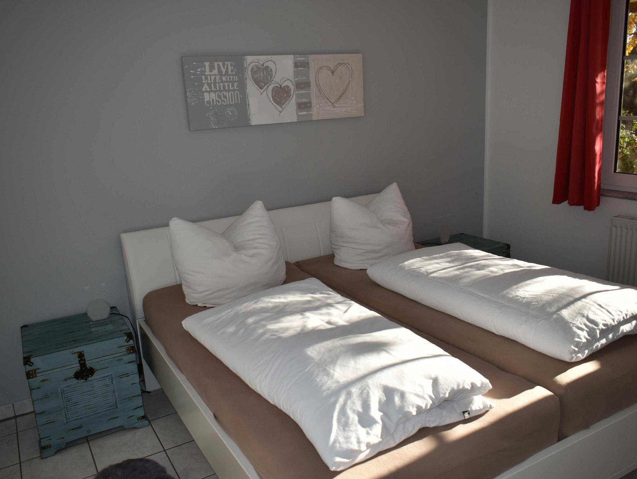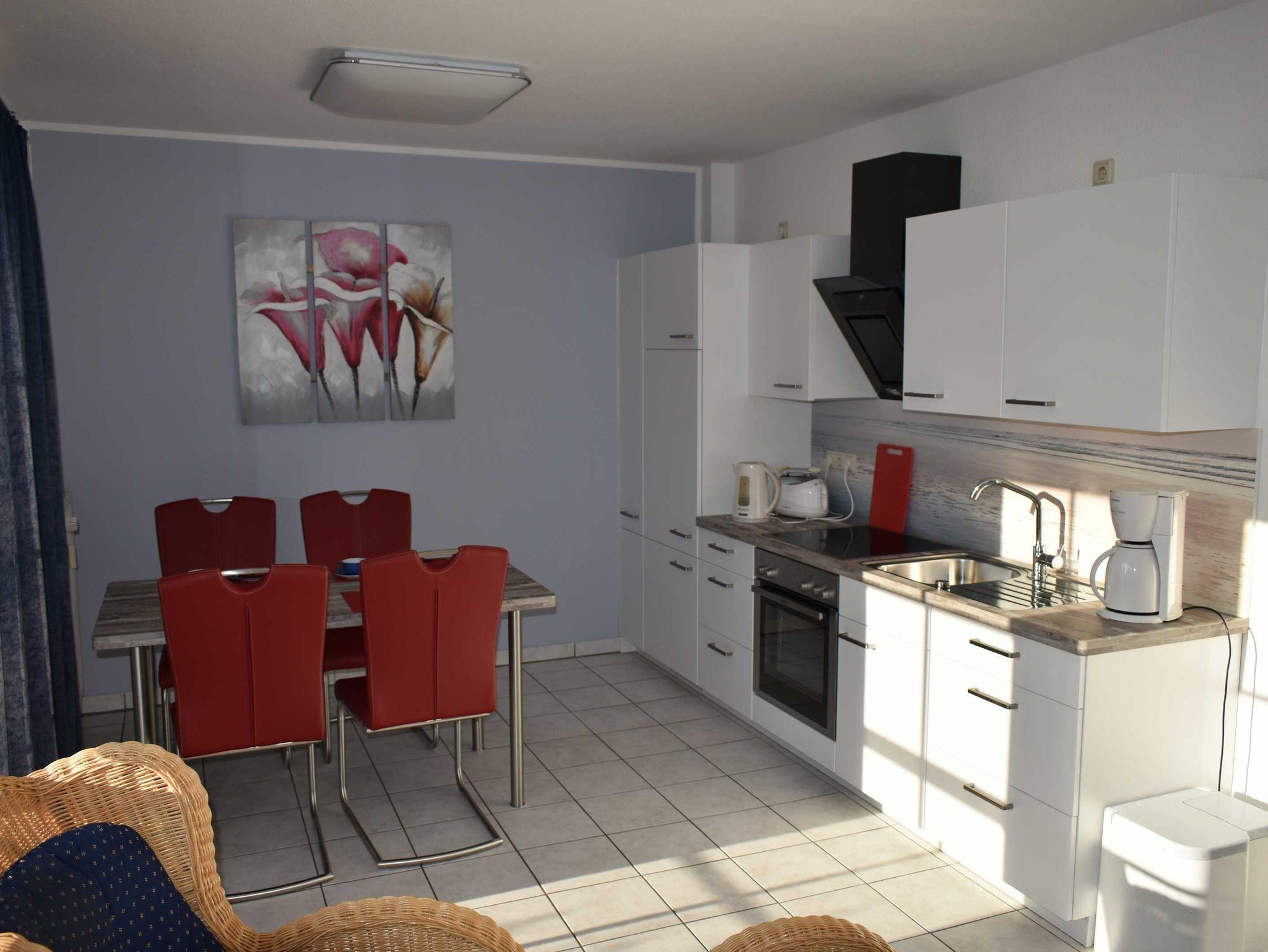 Nr 2: EG Wohnung mit Terrasse . Individuelle Komfortausstattung für 2 - 4 Personen. Größe ca. 49 qm für max. 4 Personen, komfortable Ausstattung im Landhausstil. Wohnraum mit gemütlicher Sitzgruppe (inklusive Schlafcouch), Eßecke, Farb-TV mit SAT.-Empfang, CD-Stereoradio. Küche vollständig eingerichtet (E-Herd, Kühlschrank, Kaffeemaschine, Toaster, Wasserkocher, Eierkocher, Mixer, ausreichend Geschirr und Töpfe). Flur mit Dielenschrank und Garderobe. Schlafzimmer mit Doppelbett, 2 Nachtschränken, geräumigem Kleiderschrank. Bad mit Dusche und WC. Kellerraum mit Gartenmöbeln (Kinderhochstuhl und Reisebett auf Anfrage). Regeln: Bettwäsche, Handtücher, Geschirrtücher sind vom Gast mitzubringen! Haustiere sind nicht erlaubt! Bettwäsche kann auch gegen einer Gebühr pro Person 8, Euro