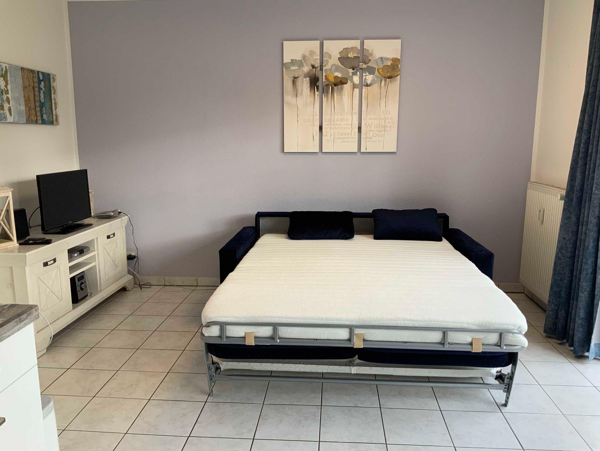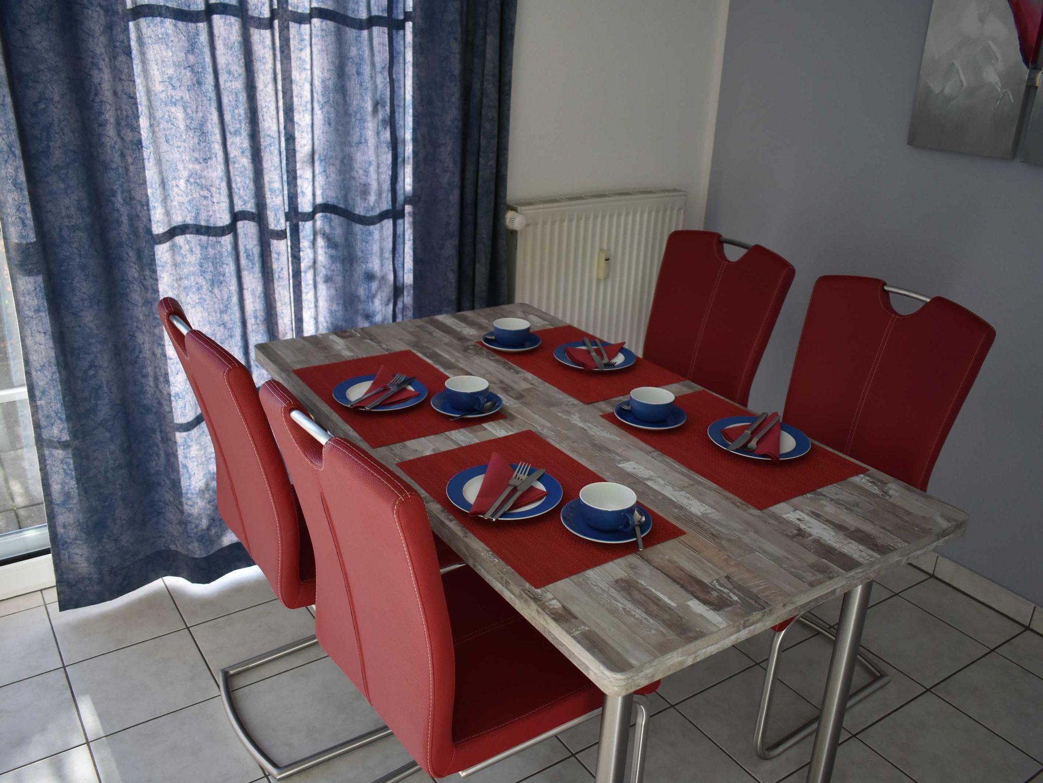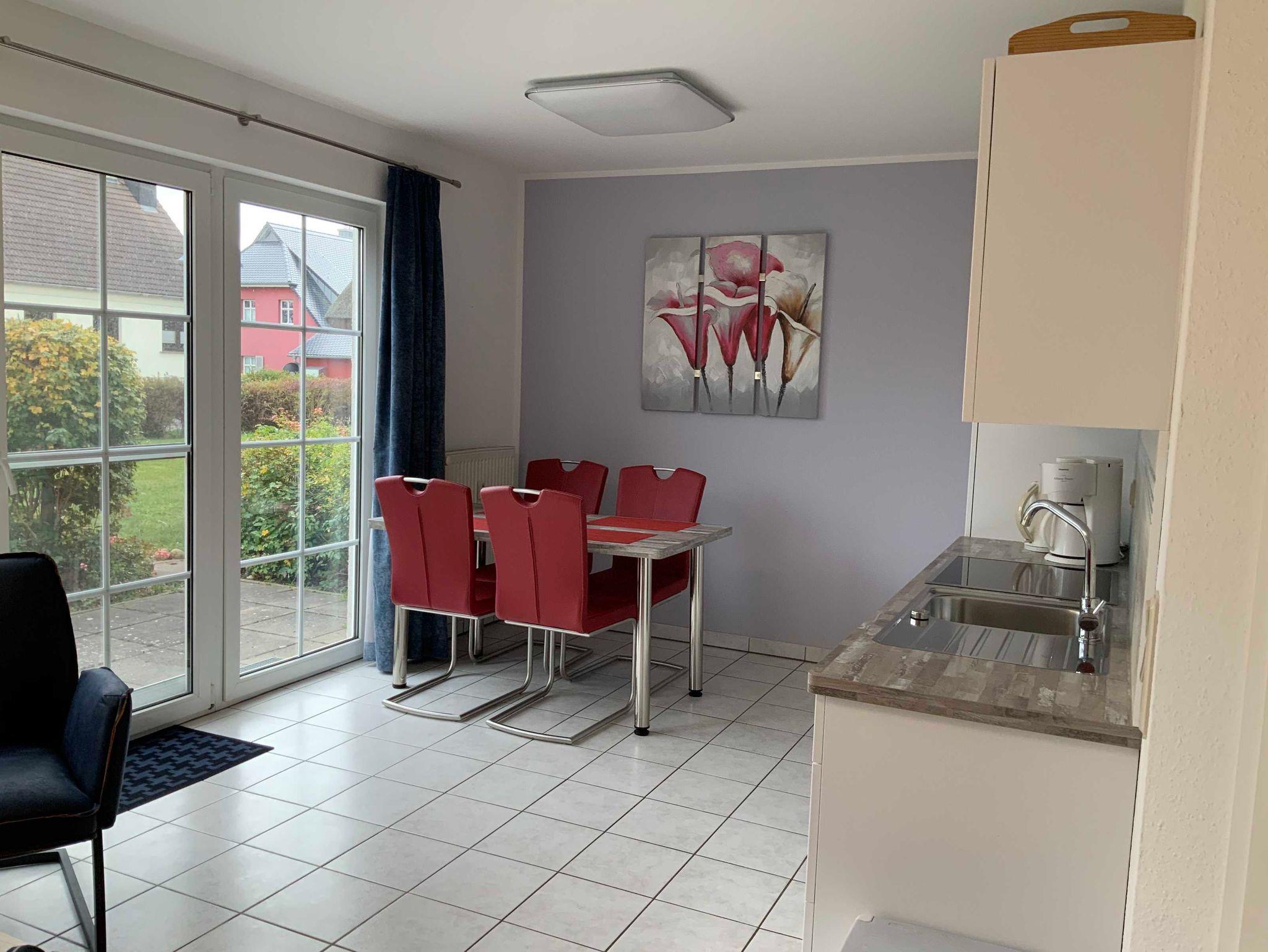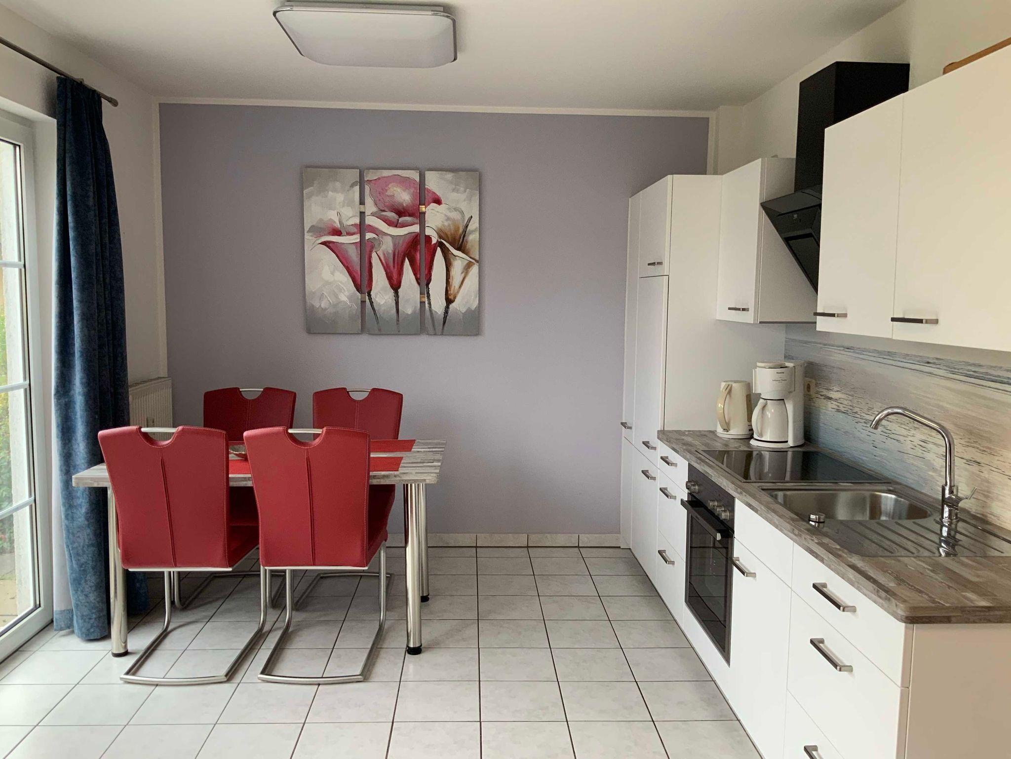 Nr 2: EG Wohnung mit Terrasse . Individuelle Komfortausstattung für 2 - 4 Personen. Größe ca. 49 qm für max. 4 Personen, komfortable Ausstattung im Landhausstil. Wohnraum mit gemütlicher Sitzgruppe (inklusive Schlafcouch), Eßecke, Farb-TV mit SAT.-Empfang, CD-Stereoradio. Küche vollständig eingerichtet (E-Herd, Kühlschrank, Kaffeemaschine, Toaster, Wasserkocher, Eierkocher, Mixer, ausreichend Geschirr und Töpfe). Flur mit Dielenschrank und Garderobe. Schlafzimmer mit Doppelbett, 2 Nachtschränken, geräumigem Kleiderschrank. Bad mit Dusche und WC. Kellerraum mit Gartenmöbeln (Kinderhochstuhl und Reisebett auf Anfrage). Regeln: Bettwäsche, Handtücher, Geschirrtücher sind vom Gast mitzubringen! Haustiere sind nicht erlaubt! Bettwäsche kann auch gegen einer Gebühr pro Person 8, Euro