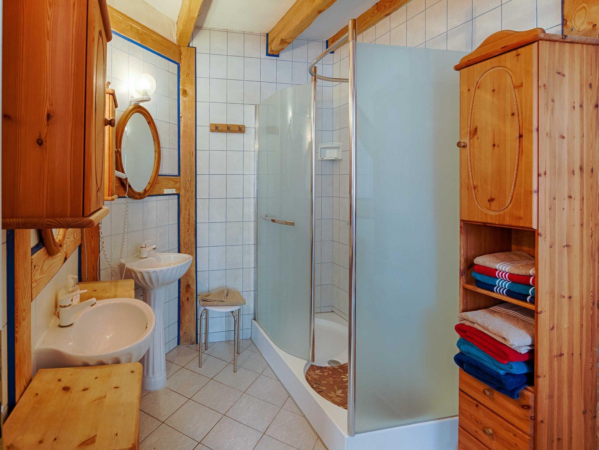 Ein Föhn ist auch vorhanden. Über eine Treppe gelangen Sie in das Obergeschoss