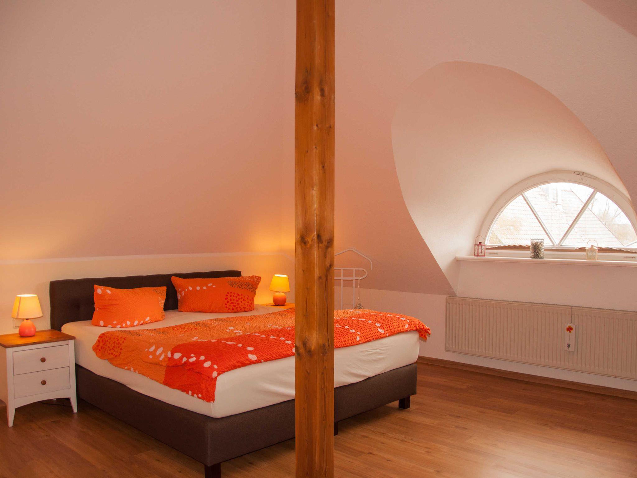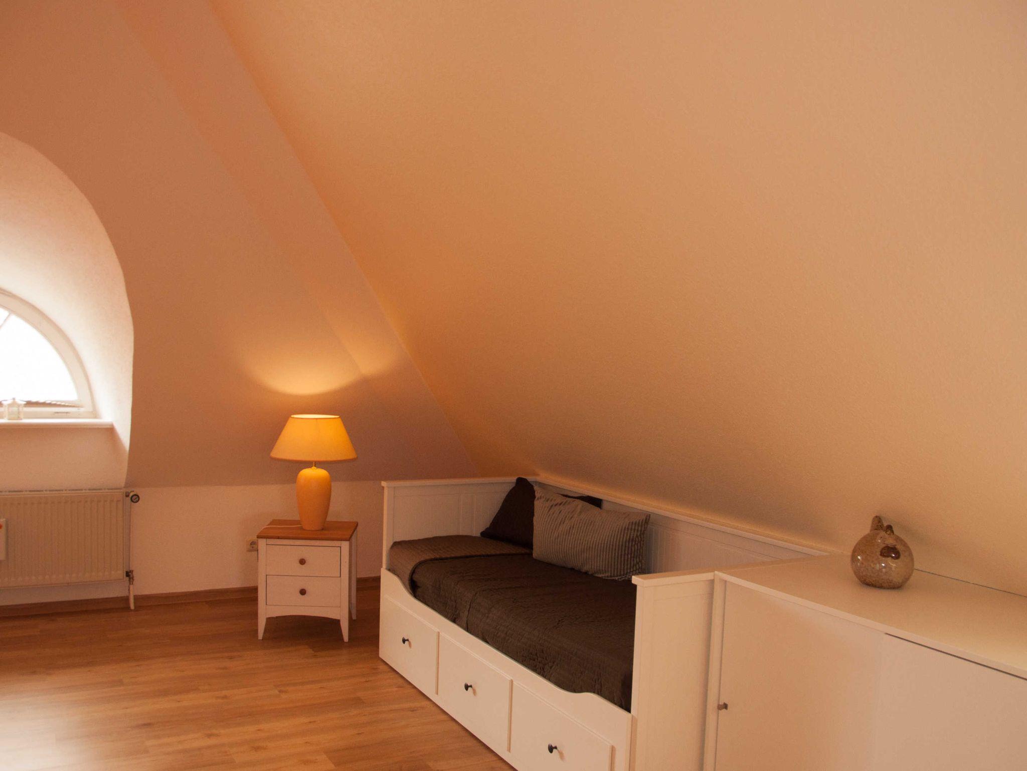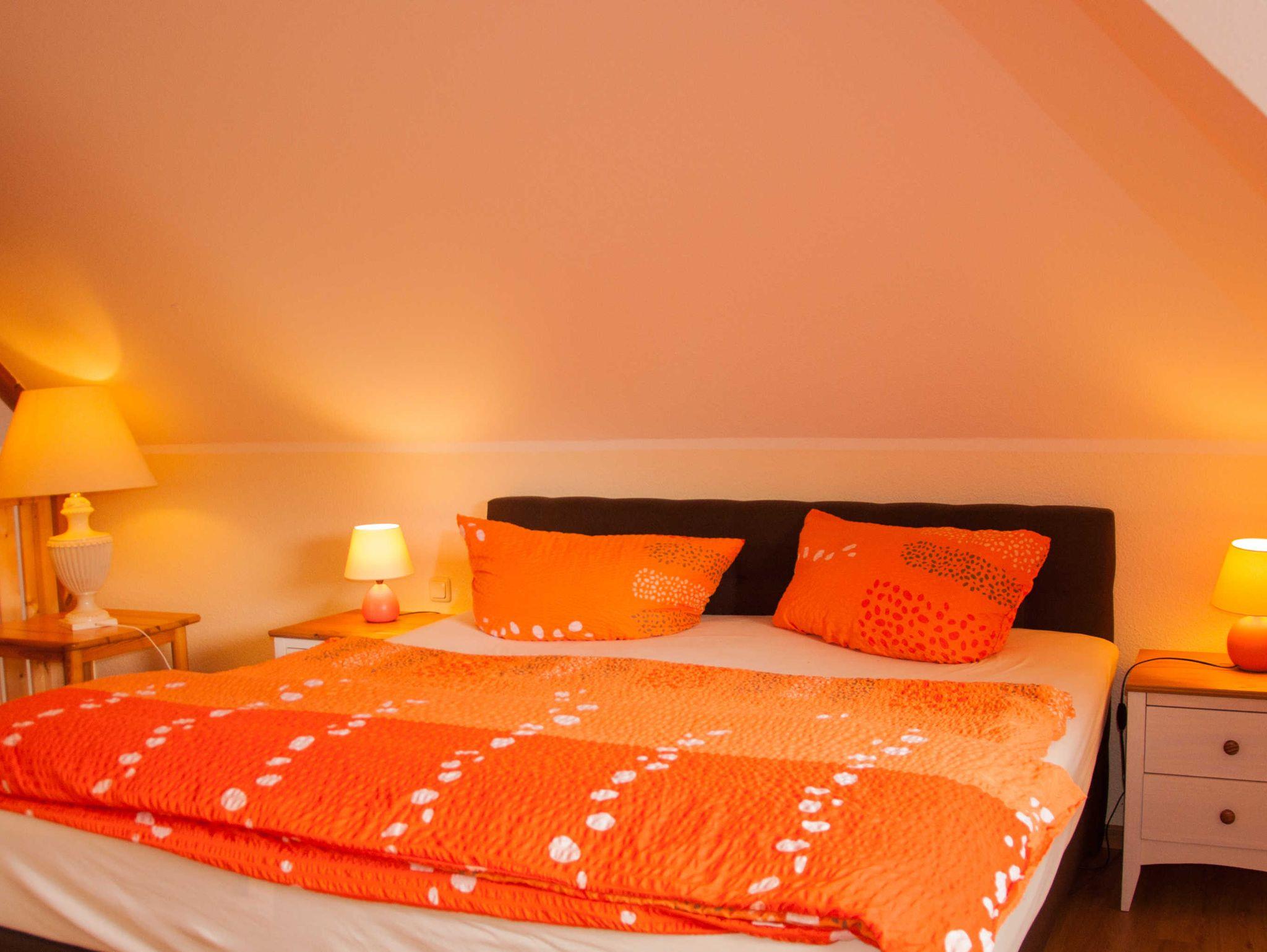 Ein großzügiges Tageslichtbad mit Badewanne und Dusche lässt keine Wünsche offen. Die Fußbodenheizung in der unteren Ebene sorgt für angenehme Wärme zu jeder Jahreszeit. Über eine Treppe gelangen Sie in die obere Etage in der sich der großzügige Schlafbereich. Verbringen Sie entspannte Nächte im bequemen Boxspringbett - kuschelig warm im Winter und im Sommer schön kühl direkt unter dem Reetdach. Kinder können im ausziehbaren Zusatzbett entspannt schlafen. Verdunkelungsmöglichkeiten sowie ein Mückenschutz sorgen für unbeschwerte Nächte ohne lästige Besucher. Genießen Sie direkt nach dem Aufstehen den herrlichen Blick auf den Bodden aus dem Gaubenfenster.