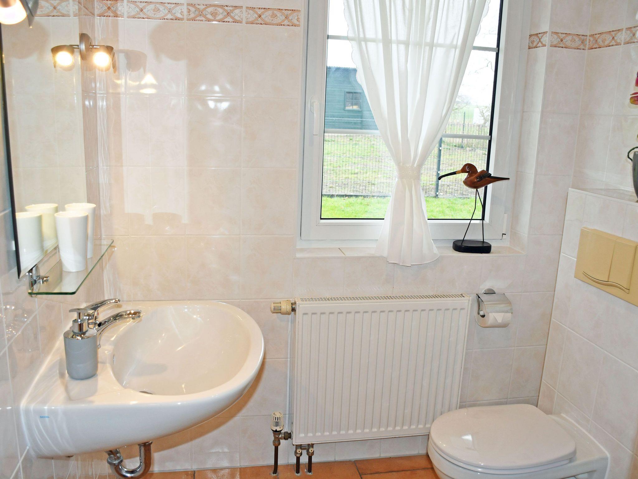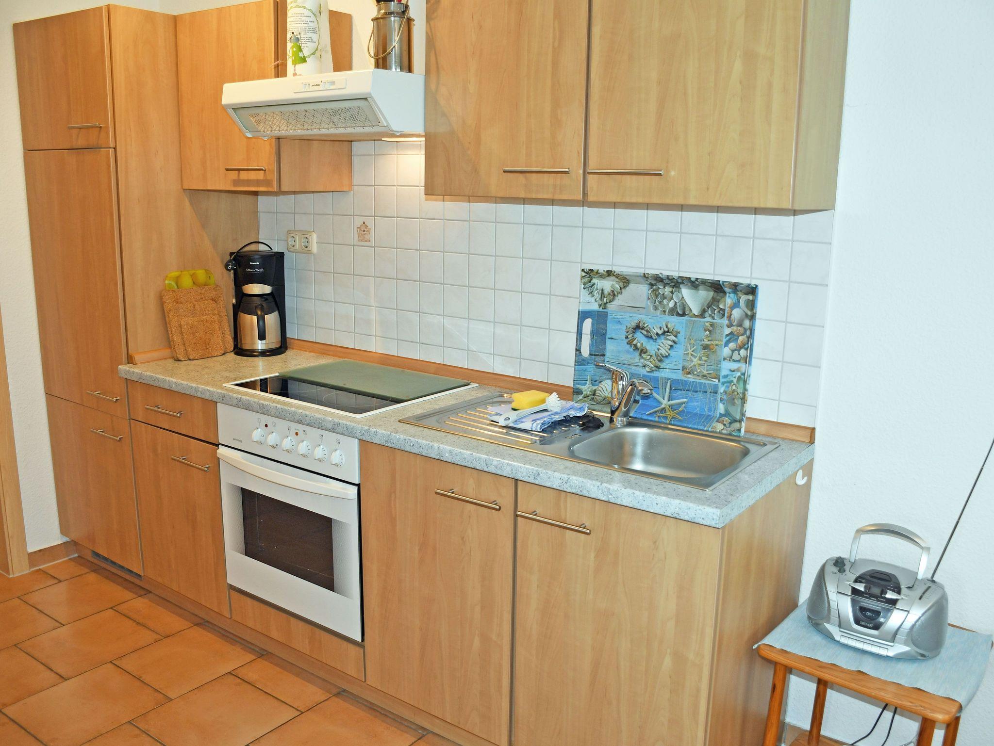 Auf der vor den Wohnungen liegenden Sonnenterrasse mit Gartenmöbeln können Sie die Sonne genießen oder bei einem Gläschen Wein entspannen. Die moderne Küchenzeile ist mit einem Cerankochfeld, Abzugshaube, Backofen, Wasserkocher, Kaffeemaschine, Toaster und Kühlschrank komplett ausgestattet. Das Schlafzimmer ist mit einem bequemen Doppelbett, Nachttischen und Leselampen sowie einem Kleiderschrank ausgestattet. Ein Kinderreisebett und Hochstuhl können auf Wunsch gern bereitgestellt werden. Auf Wunsch sind gegen Aufpreis bei Ihrer Anreise die Betten mir Bettwäsche bezogen und es liegen frische Handtücher bereit, bitte dann mitbuchen! Das moderne und helle Bad ist mit Dusche, WC, Fön und Waschtisch ausgestattet und verfügt über Tageslicht.
