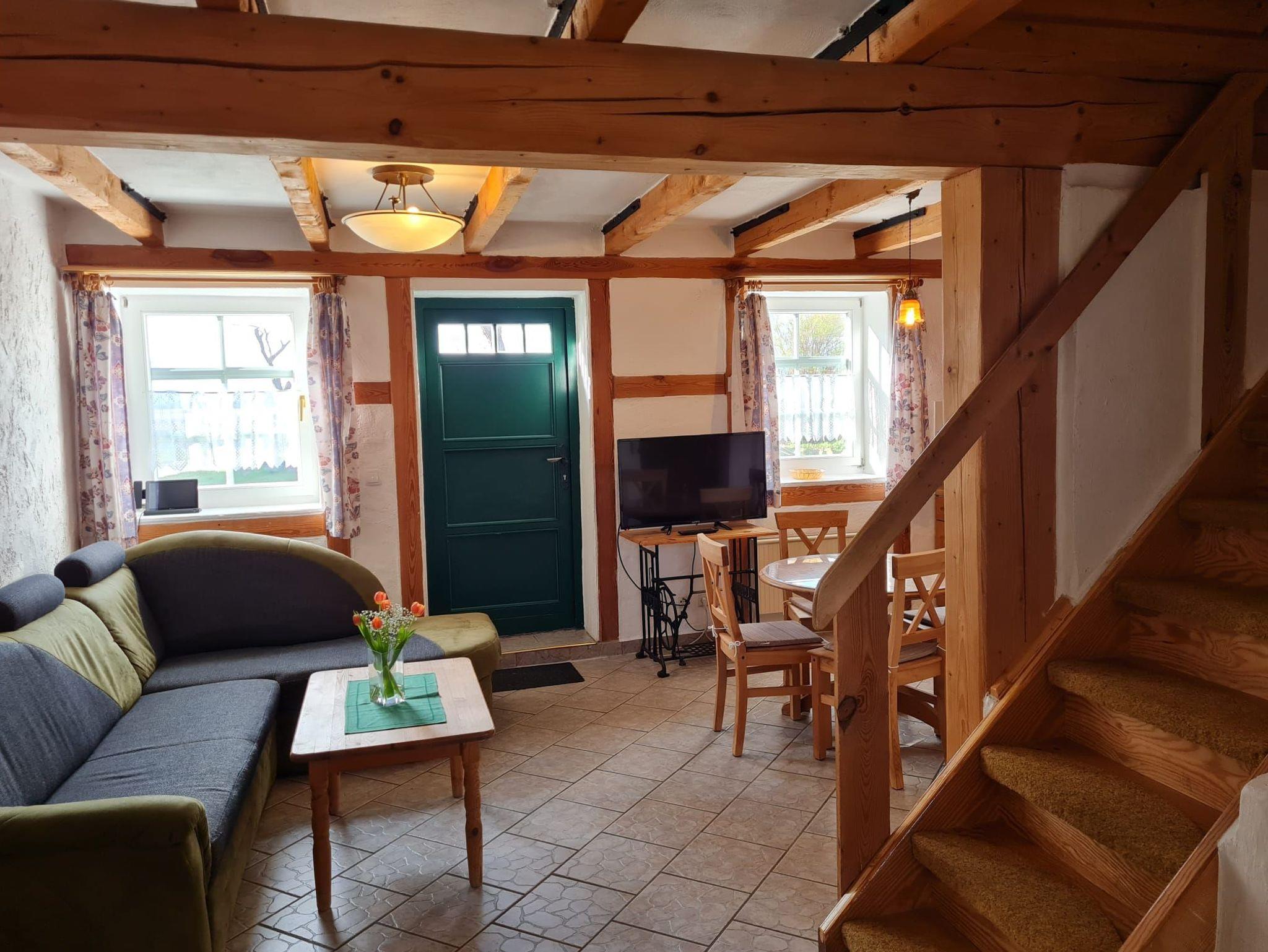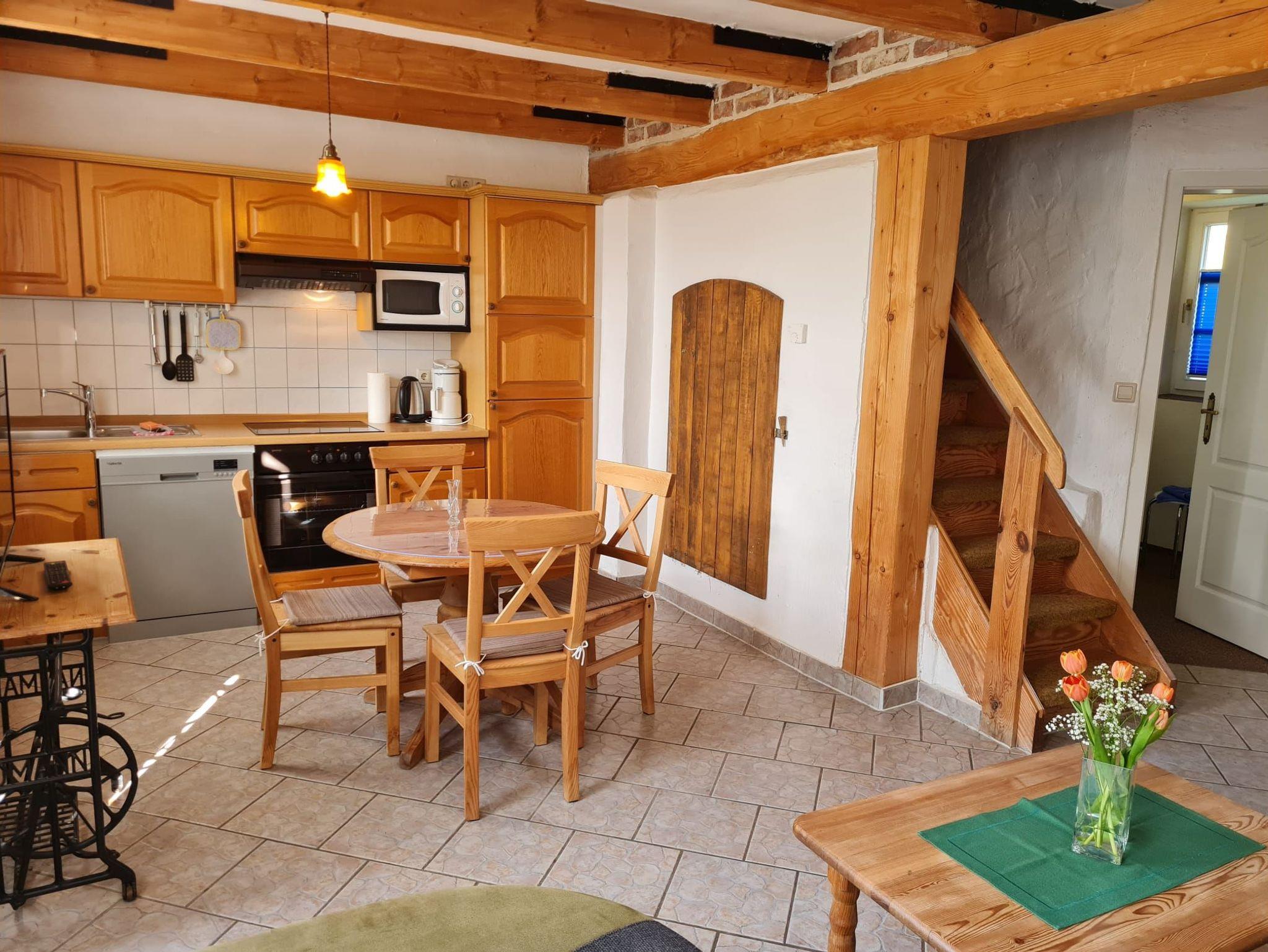 In einer original rekonstruierten Fachwerkscheune aus dem Jahre 1781 bieten wir Ihnen Platz für 2 bis 6 Personen in 6 Ferienwohnungen, jeweils über 2 Etagen. Hinter dem Haus befinden sich die Terrassen zu den Wohnungen mit Blick ins Grüne und in einen Naturgarten der zum Verweilen und Spielen einlädt. Parkplätze sind am Haus vorhanden.