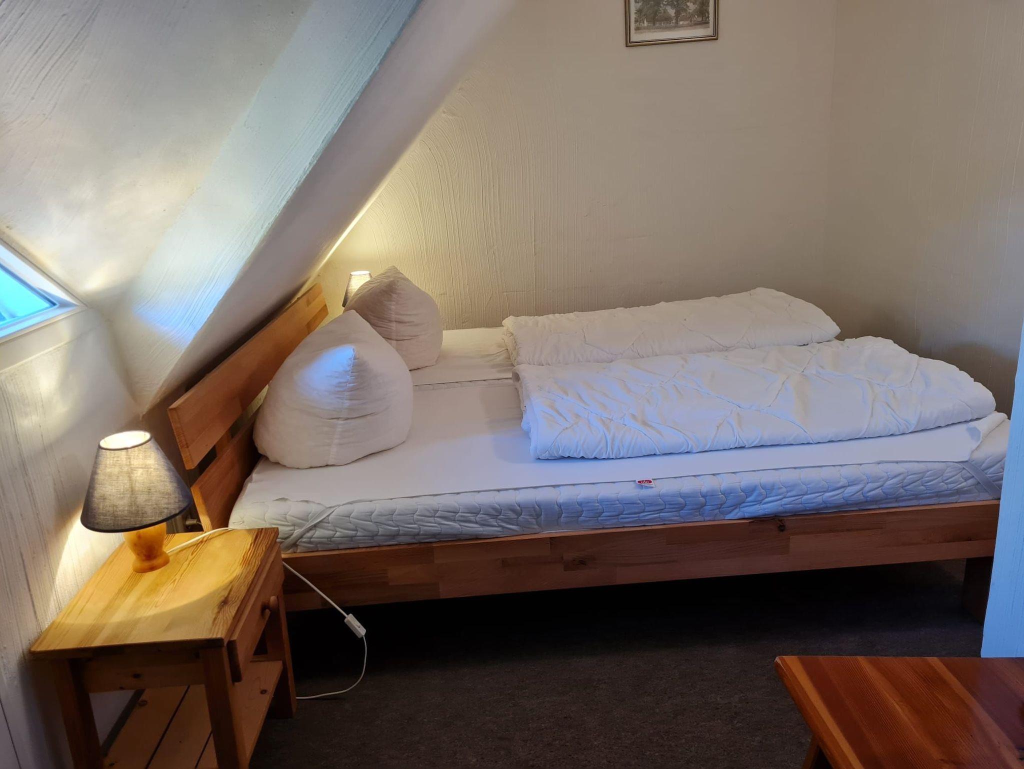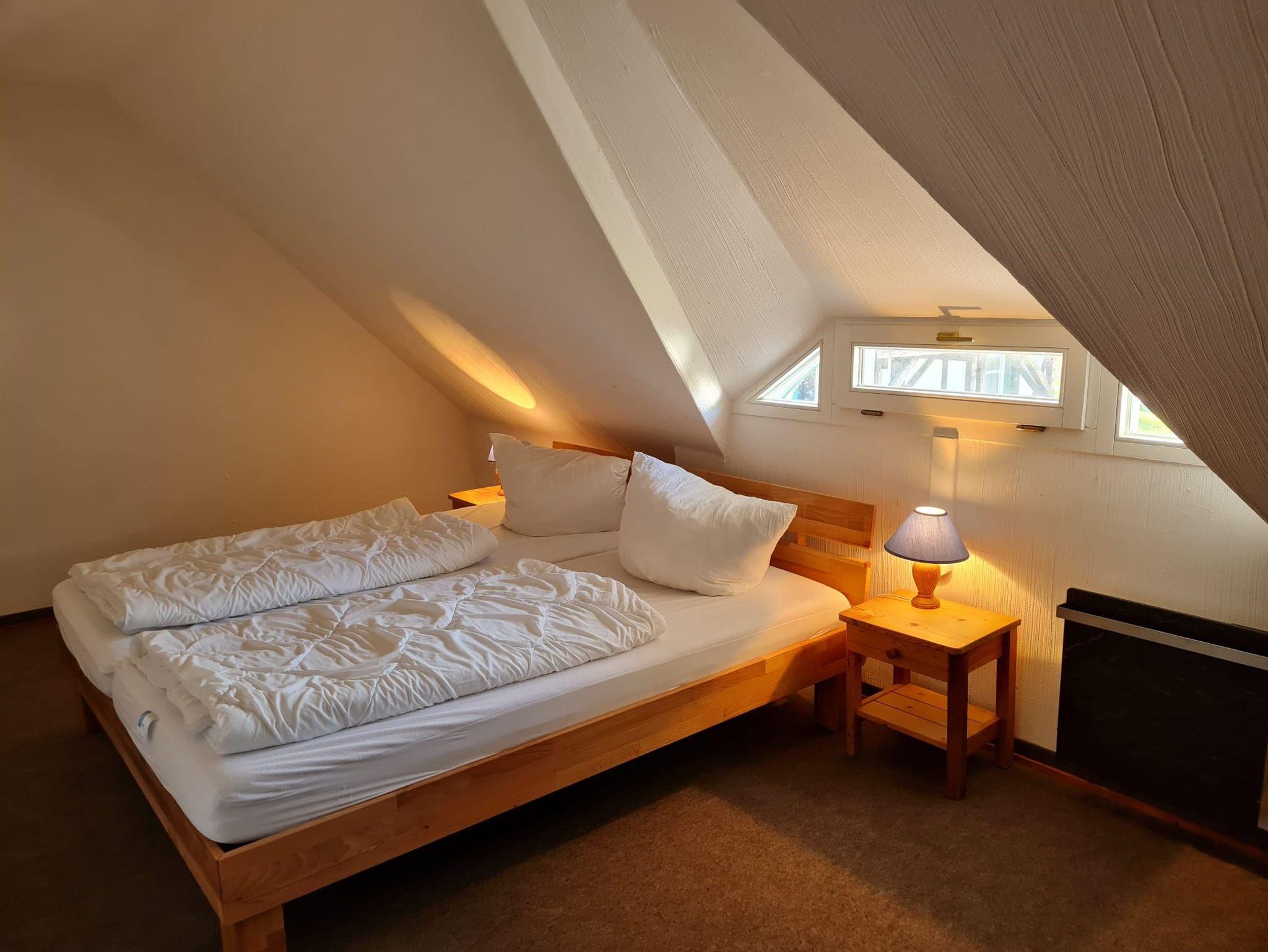 zu den 2 separaten Schlafzimmern unterm Reetdach. Die 2 Schlafzimmern verfügen