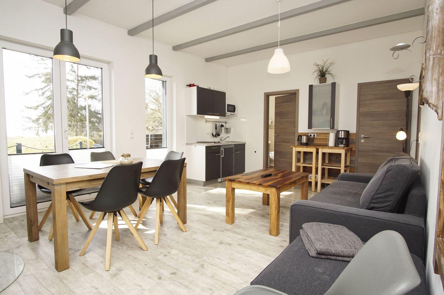 Die 3 gemütlichen Ferienwohnungen auf dem Teschenberg in Middelhsgen haben 1 bzw. 2 separate Schlafzimmer und bieten Platz für bis zu 4 Personen. Jede der einzelnen Ferienwohnungen hat eine Terrasse mit Meerblick. Verbringen Sie einen idyllischen Urlaub in ruhiger Lage und abseits der Touristenströme.
