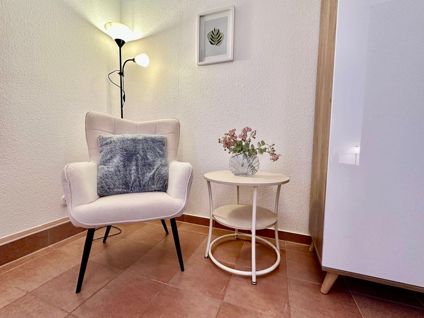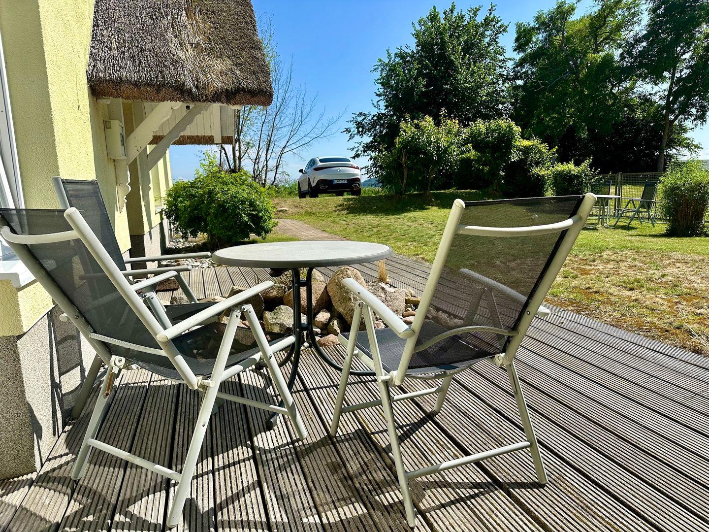 Essbereich und eine eigene Terrasse mit Zugang zum gepflegten Garten. Ideal für bis zu 4 Gäste.