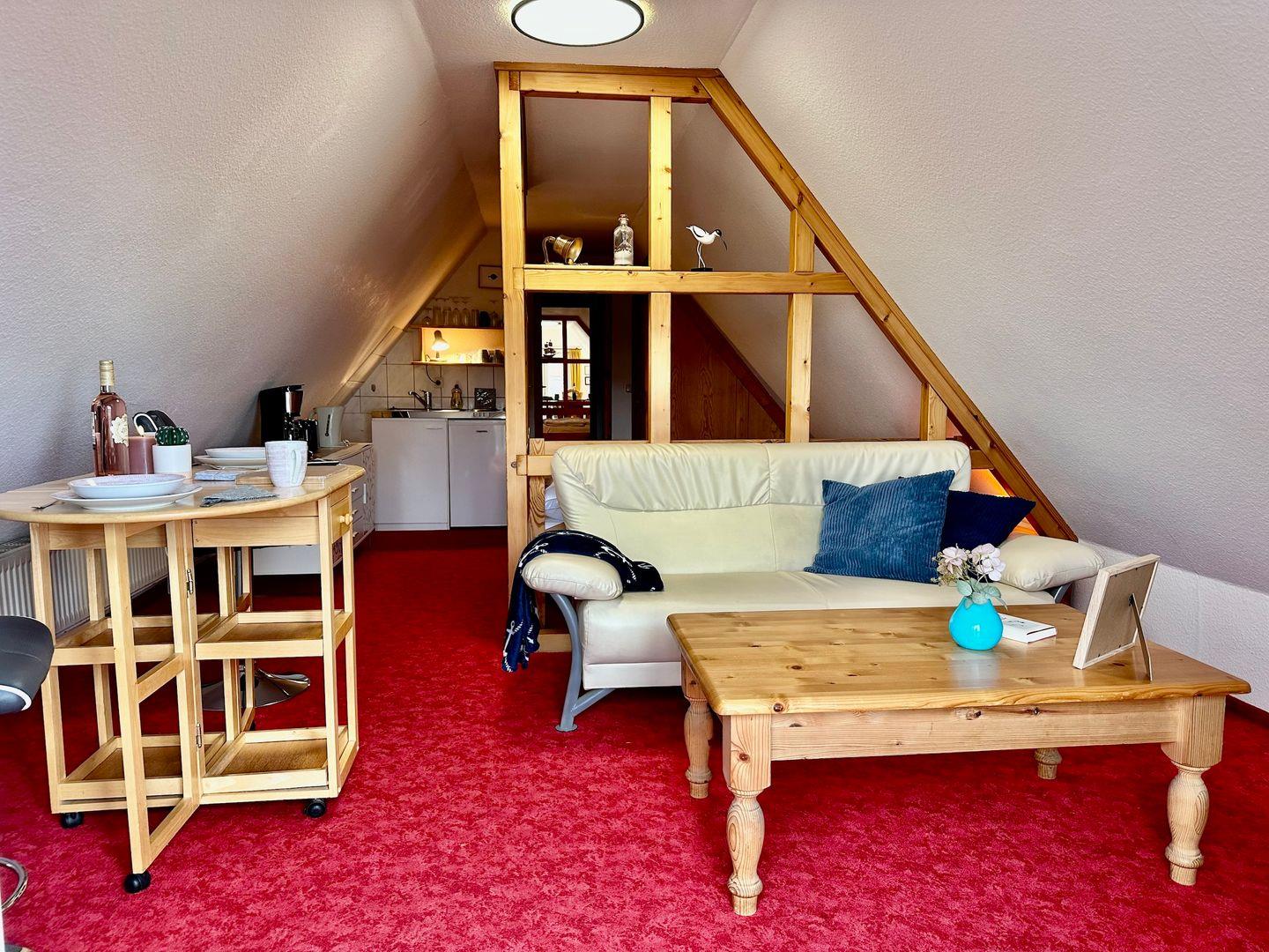 Dieses stilvolle 37?m² große Dachstudio kombiniert gemütliches Wohnen mit weitem Blick über das Wasser. Es eignet sich ideal für Paare, die Wert auf Licht, Luft und Aussicht legen.