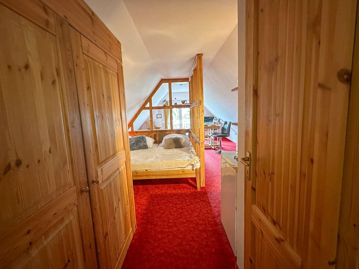 Die Wohnung liegt im Dachgeschoss mit ruhiger Ausrichtung und Zugang zum Gemeinschaftsgarten. Die Badestelle ist in wenigen Minuten erreichbar. Kostenfreie Parkplätze befinden sich direkt auf dem Grundstück.