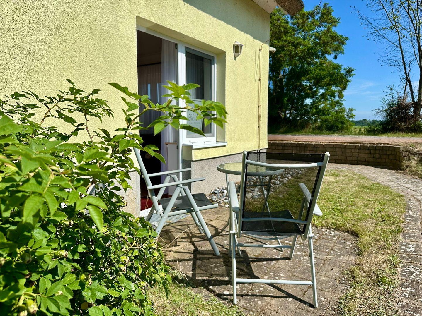 Ferienwohnung 2 – Gemütlicher Rückzugsort mit Terrasse und Boddenblick