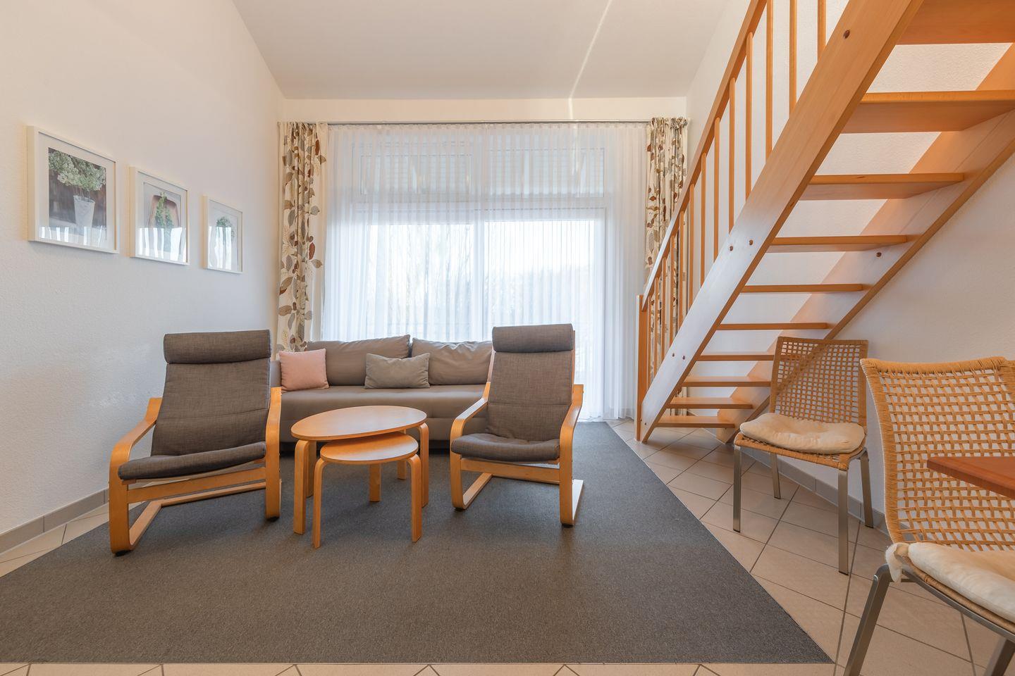 Das Apartment bietet Platz für bis zu 3 Personen auf 2 Etagen mit offener Schlafempore, Wohn-/Essbereich, Pantryküche, PKW-Stellplatz. Für den perfekten Start in den Urlaub sind die Betten bei Anreise frisch bezogen und eine Erstausstattung Handtücher liegt bereit. Die Nutzung des Schwimm-und Fitnessbereichs sowie der Saunalandschaft sind im Mietpreis inklusive.