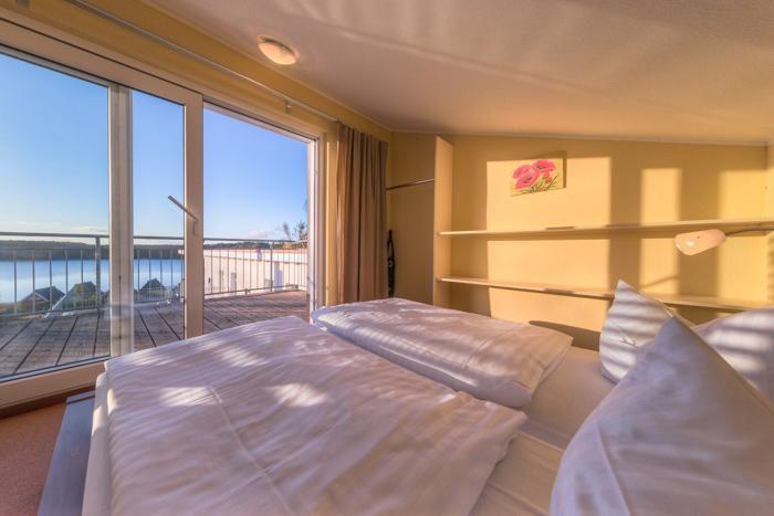 Das Apartment mit Seeblick bietet Platz für bis zu 3 Personen auf 2 Etagen mit offener Schlafempore, Wohn-/Essbereich, Pantryküche, Badezimmer, Balkon, PKW-Stellplatz. Für den perfekten Start in den Urlaub sind die Betten bei Anreise frisch bezogen und eine Erstausstattung Handtücher liegt bereit. Die Nutzung des Schwimm- und Fitnessbereichs sowie der Saunalandschaft sind im Mietpreis inklusive.