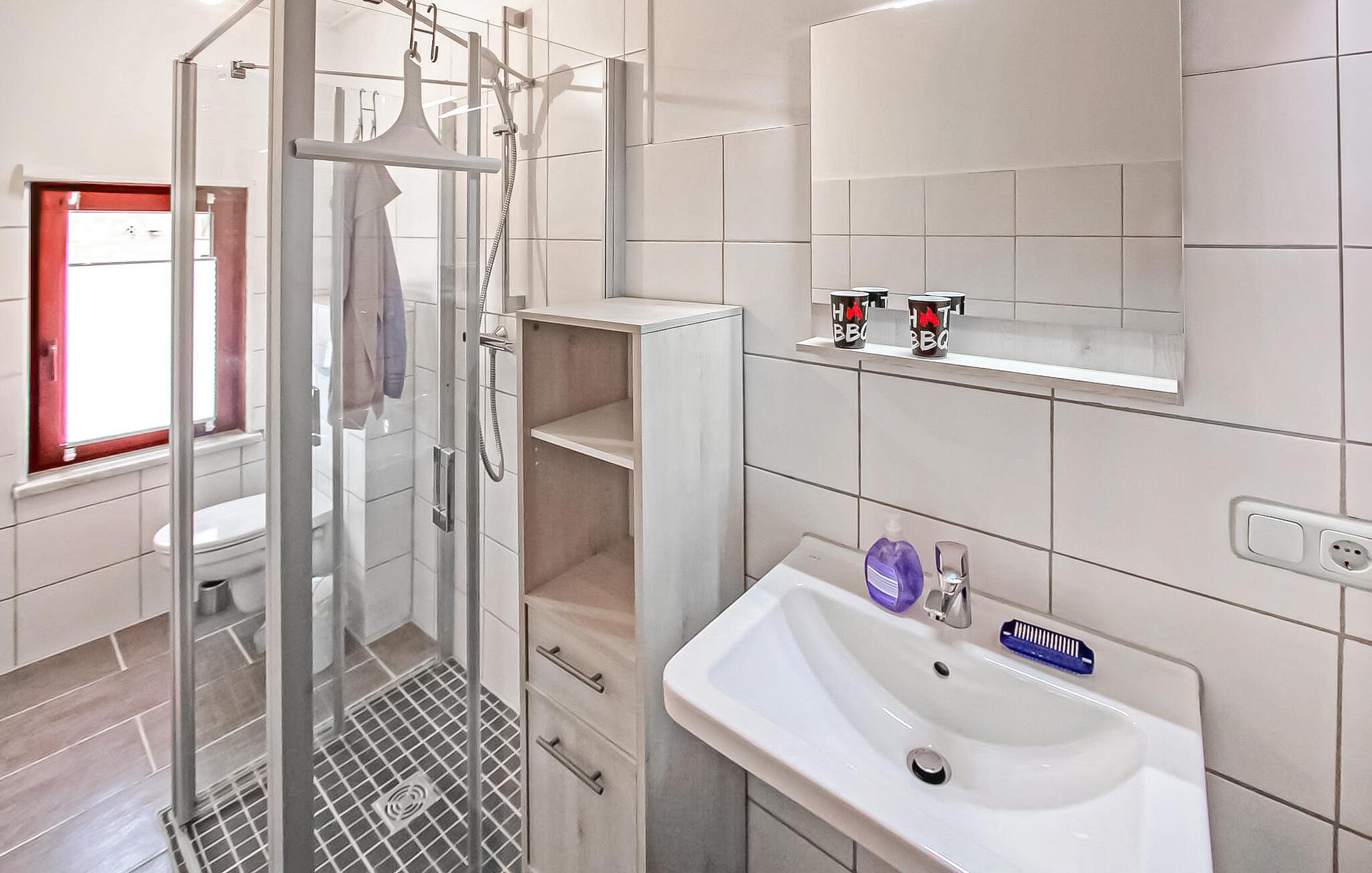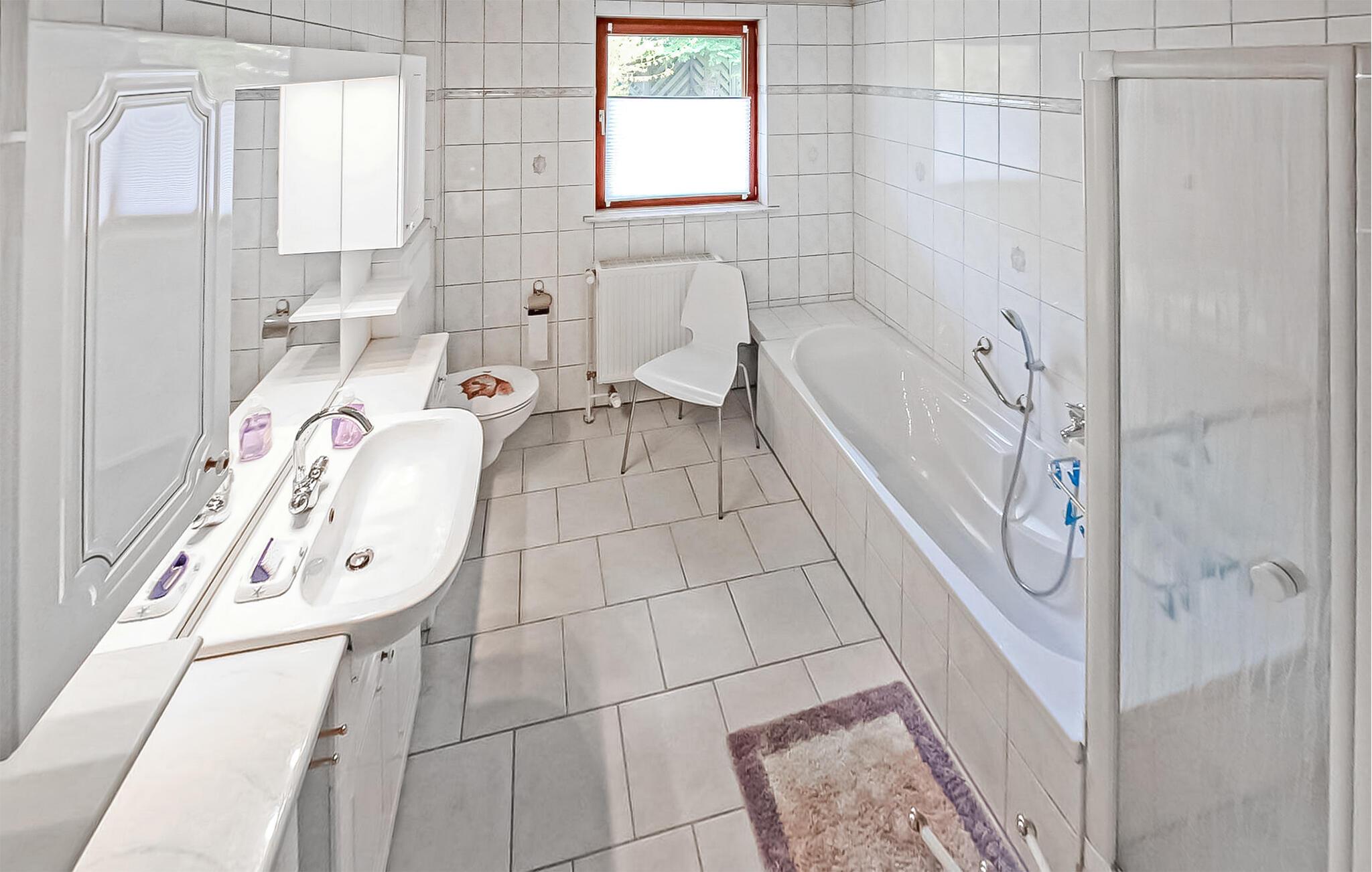 Ferielejligheden ligger helt adskilt i stueetagen af et tidligere stuehus på en rummelig, fuldstændig indhegnet (1,30 m høj) og separat fritidsejendom på ca. . Det blev omfattende udvidet i 2017 og smagfuldt indrettet med stue (polstrede møbler med sovefunktion - ekstra opredning til 2 personer muligt - 1,20 m bred, fladskærms-tv, radio/cd-afspiller, spisebord, pejs), to separate soveværelser , hver fladskærm TV (1 x dobbeltseng og to stabelbare liggestole, 1 x dobbeltseng, ekstra opredning til 1 person mulig), stort køkken (komplet med el-komfur med ovn, køleskab med fryser, mikroovn, opvaskemaskine , fryser). , spisebord, diverse små køkkenmaskiner), to badeværelser (1 x brus/toilet, 1 x bruser og badekar hver, hårtørrer), et gæstetoilet, vaskemaskine og centralvarme. Der er møbleret terrasse, liggestole, grill, cykelkælder, parkeringsplads og el-ladestation. Der er også gratis WiFi. En barneseng og høj stol kan stilles til rådighed for små børn. Den samlede pris inkluderer sengelinned, håndklæder, vand- og energiforbrug samt slutrengøring. Stedet er pålagt turistskat. Roggentin er et distrikt i feriebyen Mirow (12 km) i udkanten af Müritz Nationalpark. Miljøet er meget landligt. Brede marker, enge, skove og folde dominerer landskabet. Der er flere badesøer omkring 5 km væk. Naturrejsende, der søger fred og ro, vil finde perfekte forhold her. Mirow er en lille by midt i Mecklenburgs sødistrikt mellem boligbyen Neustrelitz (ca. 25 km væk) og Waren/Müritz spa (ca. 45 km væk). Byens største attraktion er Slotsøen med Mirow Slot, som først genåbnede i juni 2014 efter mange års restaurering. Slottet er en kulisse for begivenheder. Guidede ture og markeder finder også sted der. Byen ligger på Müritz-Havel vandvejen og Mirower See i byen er også forbundet med Müritz via flere vandområder, hvorfor Mirow er en attraktion for vandsportsentusiaster og vandrere. Johanniterkirche og den idylliske Love Island er også værd at se. Der er flere restauranter, butikker og caféer, båd- og cykeludlejning i byen.
