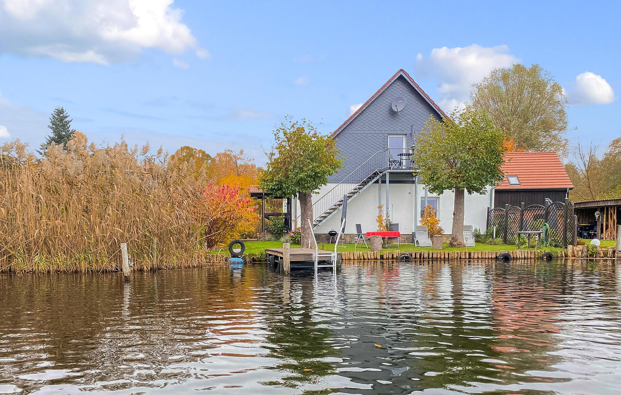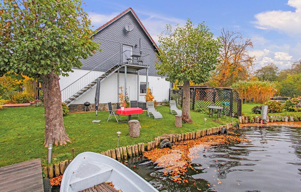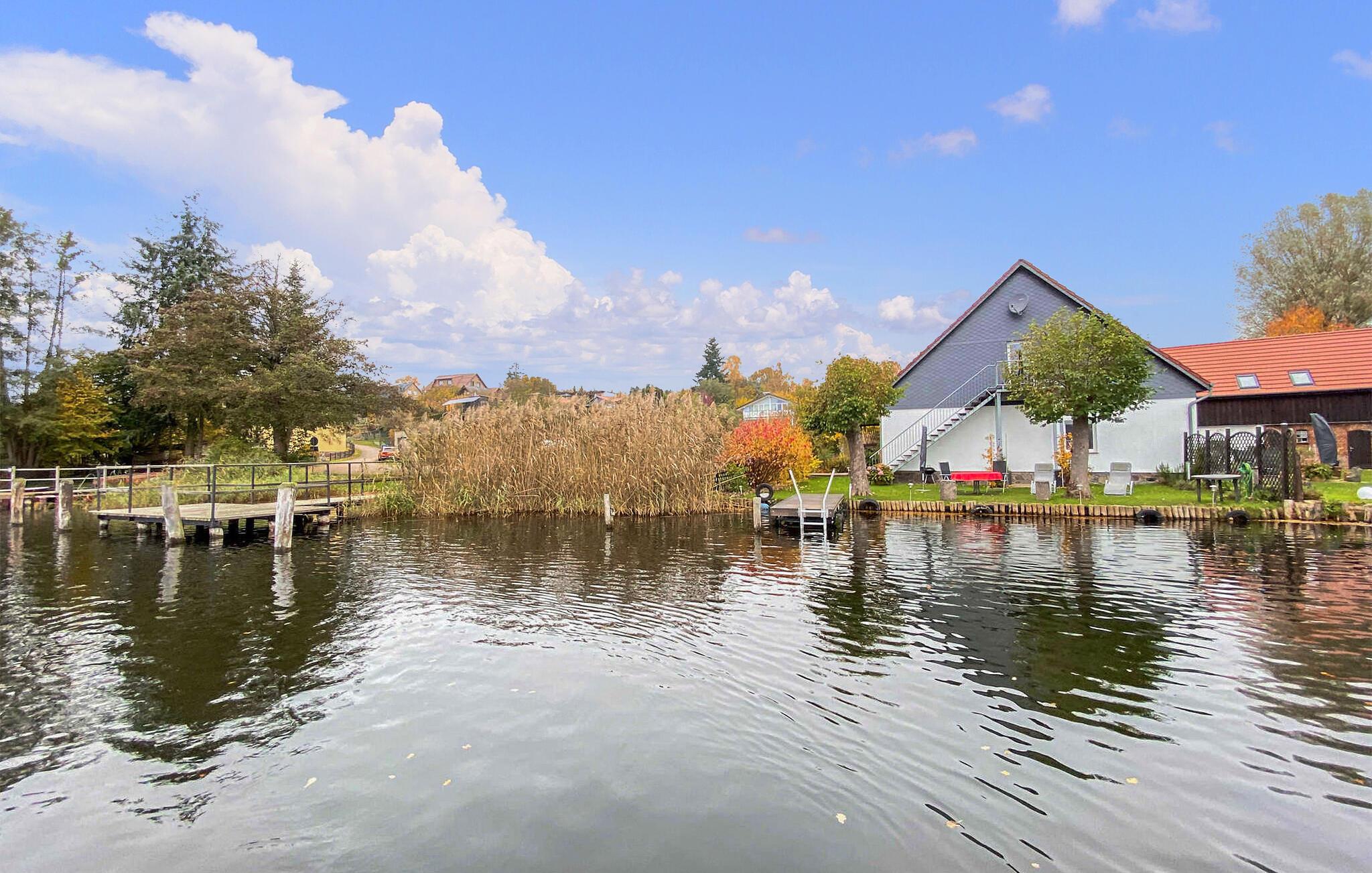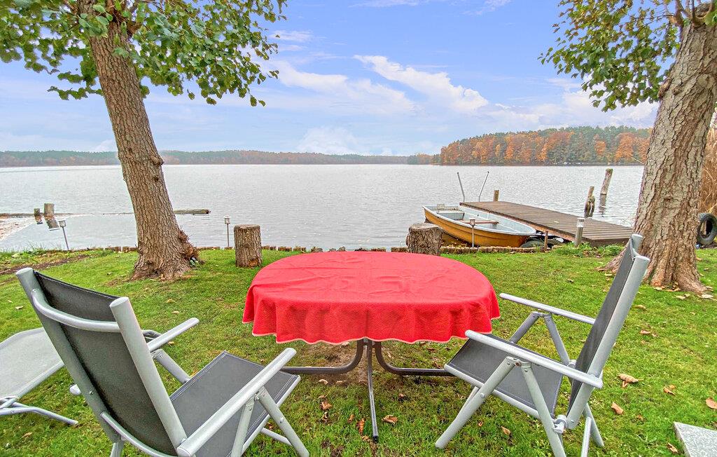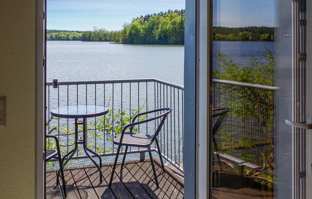 Den cirka 70 kvm store treværelses ferielejlighed til 2 personer ligger separat på øverste etage i ejerboligen på den cirka 1000 kvm store beboelsesejendom direkte ved Den Sorte Sø. Adgang sker via en separat udvendig trappe. Lejligheden er moderniseret i 2019 og er udstyret med stue (polstrede møbler, fladskærms-tv, radio/CD), 2 soveværelser (1 x dobbeltseng, 1 x fransk dobbeltseng, bredde: 1,40 m), stort køkken (spisebord, el-komfur med ovn, køleskab med fryser, opvaskemaskine, mikroovn, diverse køkkenmaskiner) samt badeværelse med brus/toilet. Lejligheden opvarmes med centralvarme. Der er en lille altan med opholdsområde og en vidunderlig udsigt over søen, et møbleret udendørs opholdsområde med liggestole og en grill, et sikkert sted at opbevare cykler og en parkeringsplads. Internet (WLAN) er også tilgængeligt. En robåd kan også lejes direkte fra ejeren (5 EUR/dag). Den samlede pris inkluderer slutrengøring og vandforbrug. Du kan medbringe dit eget sengelinned og håndklæder eller leje dem på stedet. El/energi afregnes efter forbrug. Kæledyr er ikke tilladt. Ejeren driver en have certificeret med Naturen i Havens kvalitetsmærke, hvor du kan købe hjemmelavede produkter som marmelade, likør og sirup. Husets gæster modtager en gratis krukke marmelade ved ankomsten. Schwarz er et lille feriested ved søen af samme navn i et charmerende sølandskab mellem Müritz og delstatsgrænsen til Brandenburg. Bymidten er en klassisk landsbykirke fra det 18. århundrede. Derudover bestemmer adskillige ferieboliger landsbyens udseende. Schwarzer See er en smuk bade- og fiskesø med to strande og et festivalområde med restaurant (sæsonbestemt drift). Motorbåde er ikke tilladt på søen, hvilket gør den behagelig stille i forhold til mange andre søer i regionen. Der er også cykeludlejning i Schwarz.Den lille by Mirow ligger omkring 5 km væk. Det ligger direkte ved Müritz-Havel-vandvejen og er en attraktion for vandsportsentusiaster og vandrere. Den største attraktion er Slotsøen med Mirow Slot, som først genåbnede i juni 2014 efter mange års restaurering, 3 Queens Palace, den idylliske Love Island, St. John's Church og Old Castle Brewery med oplevelsesgastronomi. Der er flere restauranter og caféer i byen, et fiskerøgeri, butikker og båd- og cykeludlejning. Mirow kan nemt nås med tog via jernbaneforbindelsen til Neustrelitz.