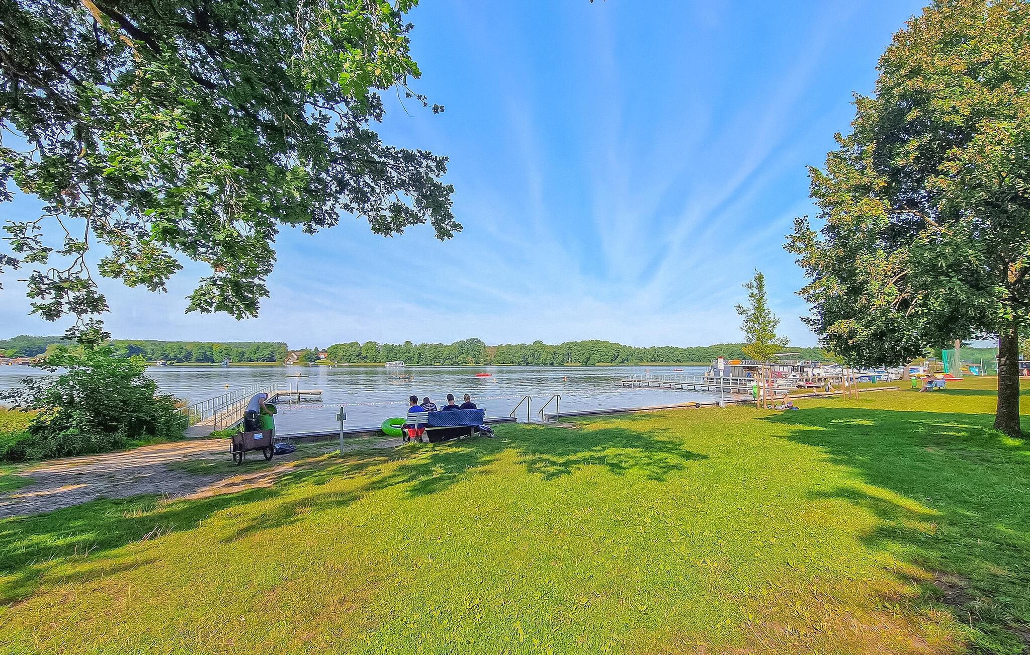I rolige, naturskønne omgivelser i udkanten af ??Starsow, på ejerens cirka 3.000 kvadratmeter store, fuldt indhegnede boliggrund, ligger et dobbelthus med to separate boligenheder til op til 4 personer hver. Det nærmeste supermarked, et bageri og en restaurant ligger omkring 10 km væk. Afstanden til stranden ved Mirow-søen er omkring 2,3 km. 3,5 km væk. De to lejligheder er cirka 50 og 55 kvadratmeter store, smagfuldt møblerede, har centralvarme og insektnet i vinduerne. Hver lejlighed har en stue (polstrede møbler, fladskærms-smart-tv med streamingtjenester) og et fuldt udstyret åbent køkken (elkomfur med ovn, køleskab med fryser, opvaskemaskine, mikrobølgeovn, spisebord, brødrister, kaffemaskine og elkedel). Denne lejlighed på cirka 55 kvm til op til 4 voksne har en pejs i den store stue med tilstødende spise- og køkkenområde (1 brænde inkluderet, ekstra senge tilgængelige mod et gebyr), to soveværelser (1 dobbeltseng 1,40 m bred, 1 enkeltseng) og en stor, overdækket, møbleret terrasse med gynge. Den anden lejlighed, DZV447, har 2 soveværelser, 1 med dobbeltseng og 1 med enkeltseng, samt et badeværelse (bruser, toilet, hårtørrer). Der er også parkering, cykelopbevaring, liggestole, møblerede terrasser med grill og gratis Wi-Fi. Ejernes smukke, rummelige grund med pejs er til rådighed. Slutrengøring, el- og vandomkostninger er inkluderet i den samlede pris. (INGEN opladningsmuligheder til elbiler!) Medbring venligst eget sengelinned og håndklæder. Betales på stedet: turistskat, brænde (1 kurv gratis, yderligere mod et gebyr). Kæledyr er ikke tilladt i denne ejendom.