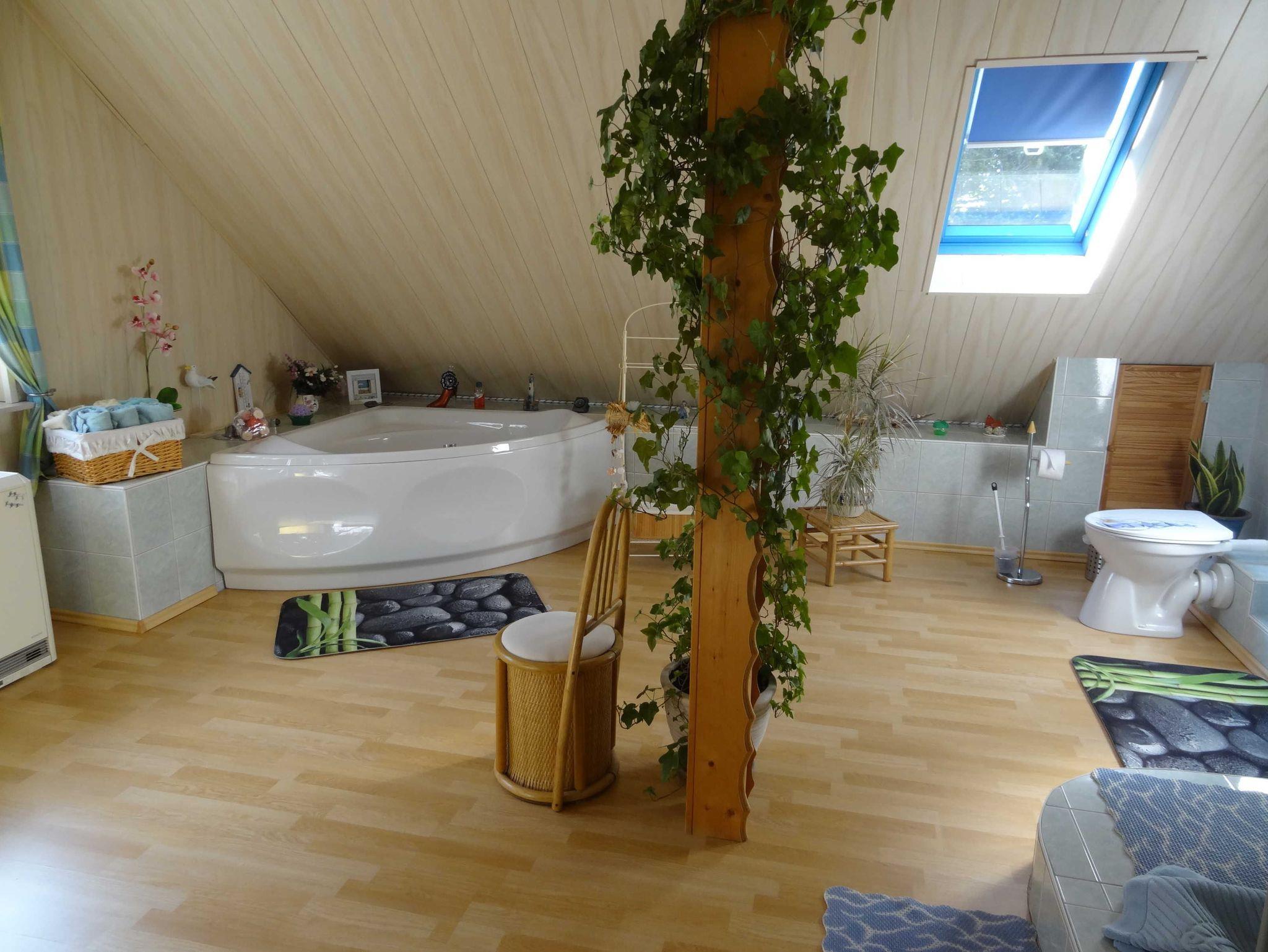 Im Badezimmer erwartet Sie eine Whirlwanne / Eckbadewanne, eine Dusche und WC.