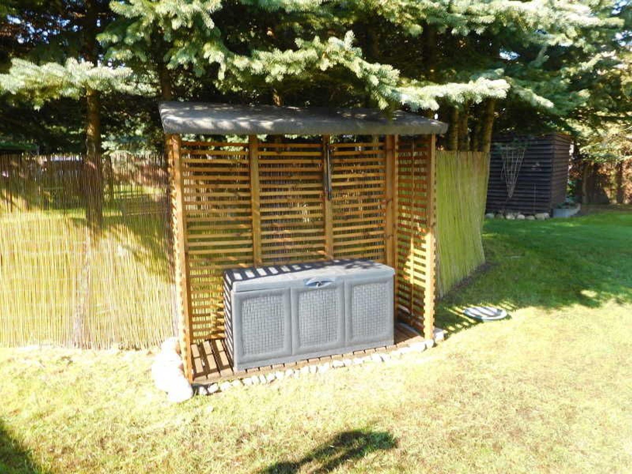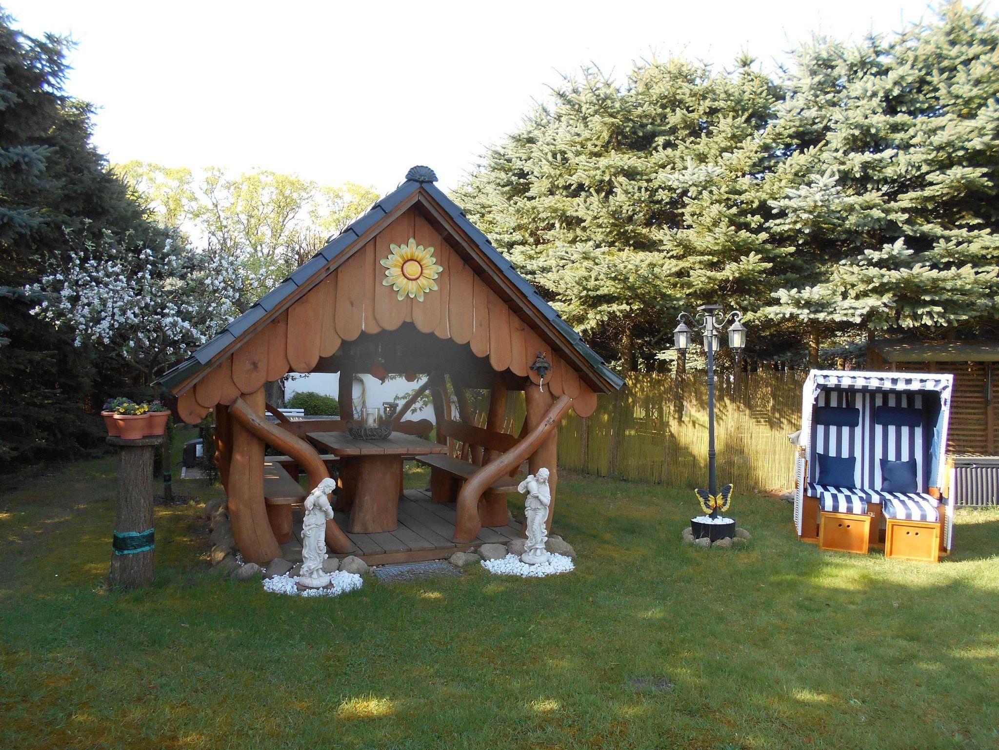Das Gartengrundstück können Sie mitnutzen,ebenso haben Sie eine Sitzecke mit Elektrogrill und Fernseher, eine urige Feuerstelle für ein zünftiges Lagerfeuer. Ein Gartenhaus mit einem Strandkorb steht Ihnen ebenfalls zur Verfügung. Fahrradunterstellmöglichkeit ist vorhanden.