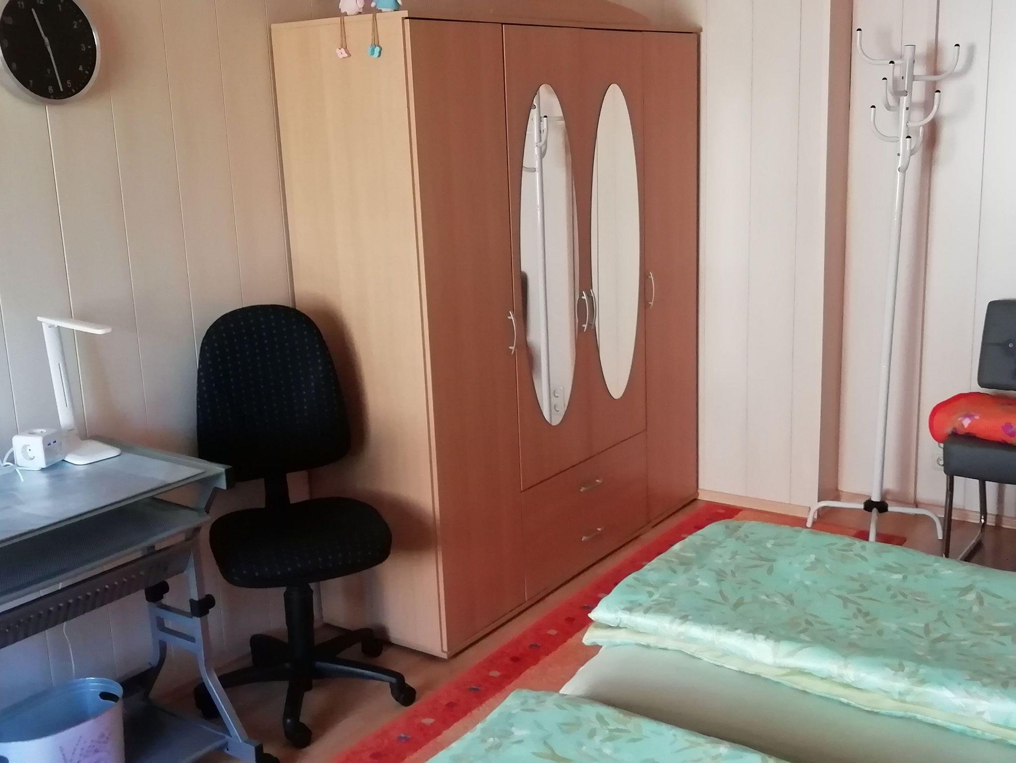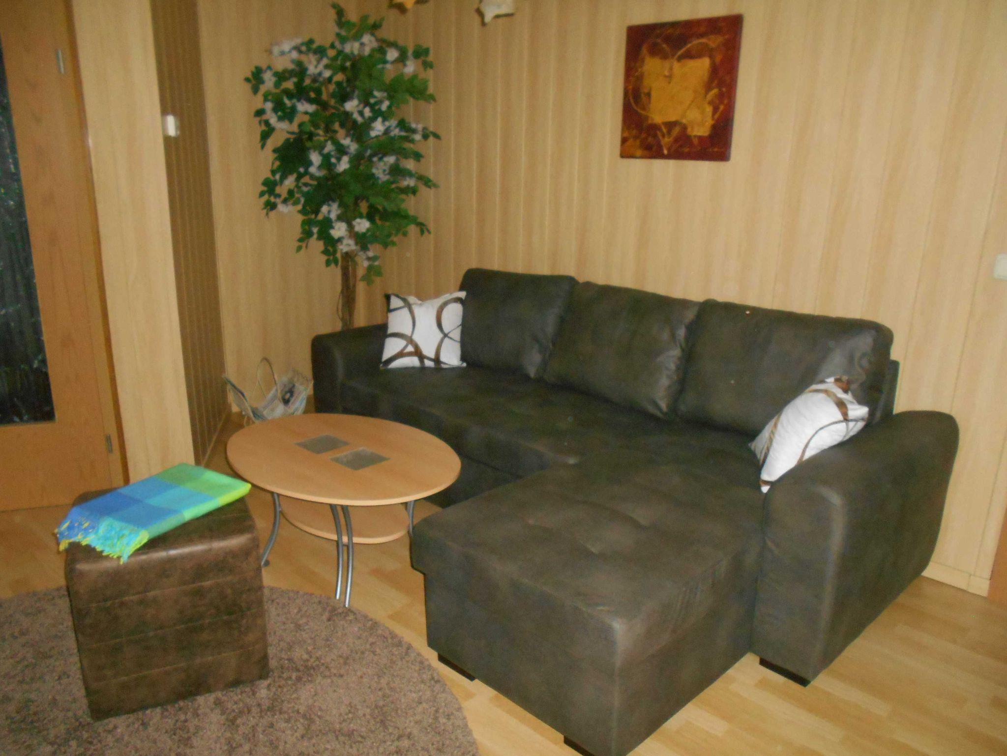Die Ferienwohnung verfügt über ein großzügiges Schlafzimmer mit Polsterbett(180x200), einem Kleiderschrank, Sessel /Hocker, Zweisitzersofa, Nachtschränkchen, Schreibtisch mit DSL-Internetzugang. Das Wohnzimmer bietet Ihnen ein Ecksofa mit Relaxsessel mit Massagefunktion und Couchtisch, Satelliten-TV mit DVD-Player und CD-Stereoanlage.