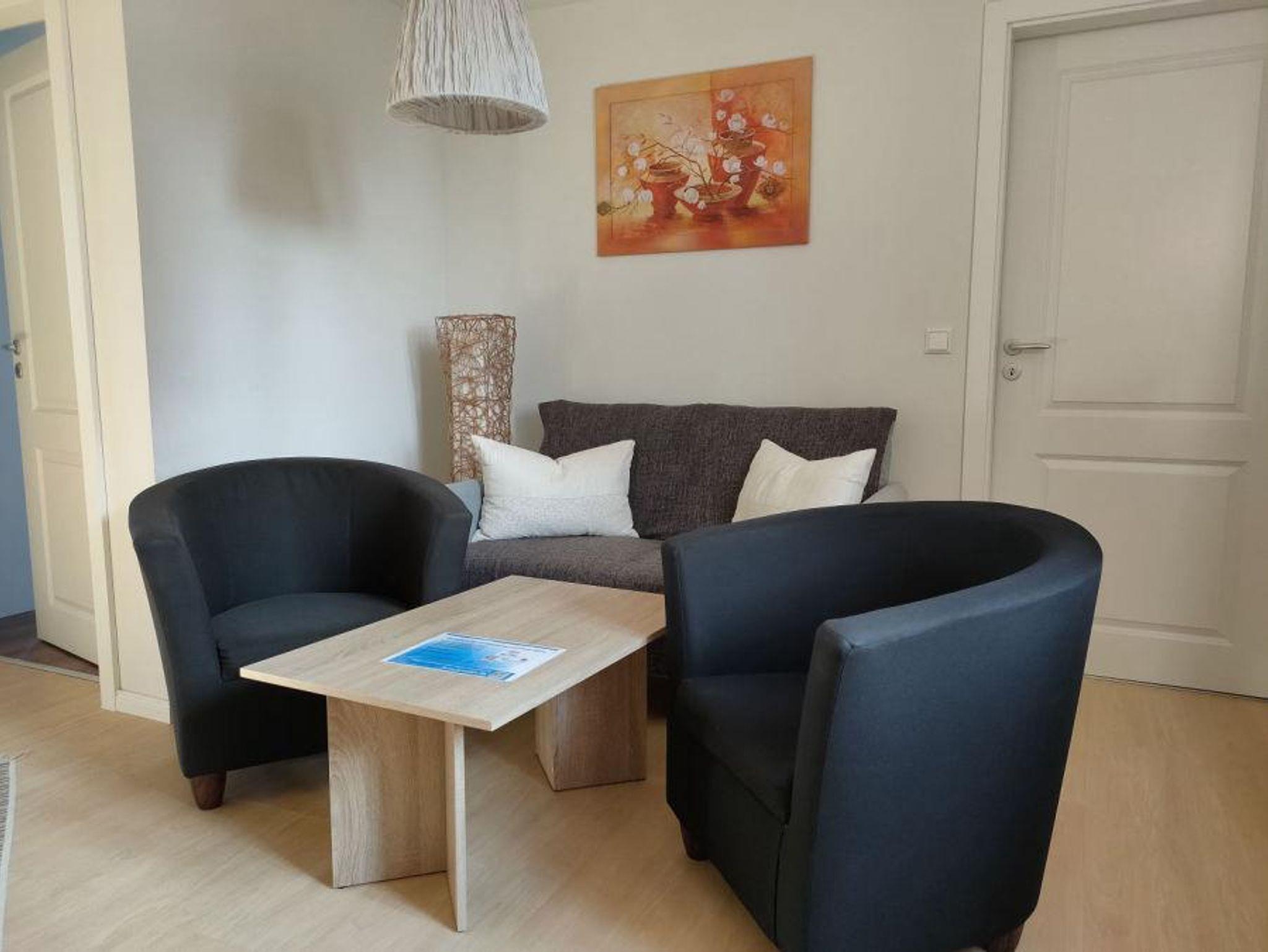 Die Wohnküche enthält einen Esstisch, Herd, Mikrowelle mit Grill, Geschirrspüler, Kaffeemaschine, Wasserkocher und Waschmaschine. Zum Entspannen laden Couch und Sessel ein. Ein Farbfernseher mit Radiofunktion und USB Mediaplayer sowie eine Stereoanlage sorgen für Unterhaltung. Das Bad verfügt über eine ebenerdige Dusche, WC, Waschtisch und Föhn. Bettwäsche und Handtücher sind inklusive. WLAN wird auf Nachfrage freigeschaltet.
