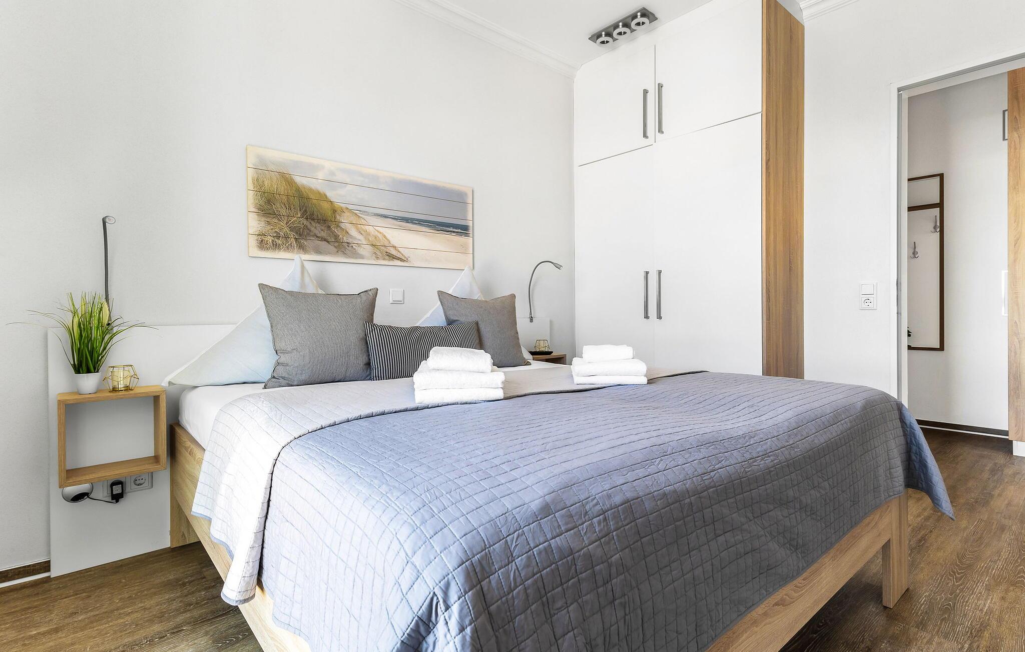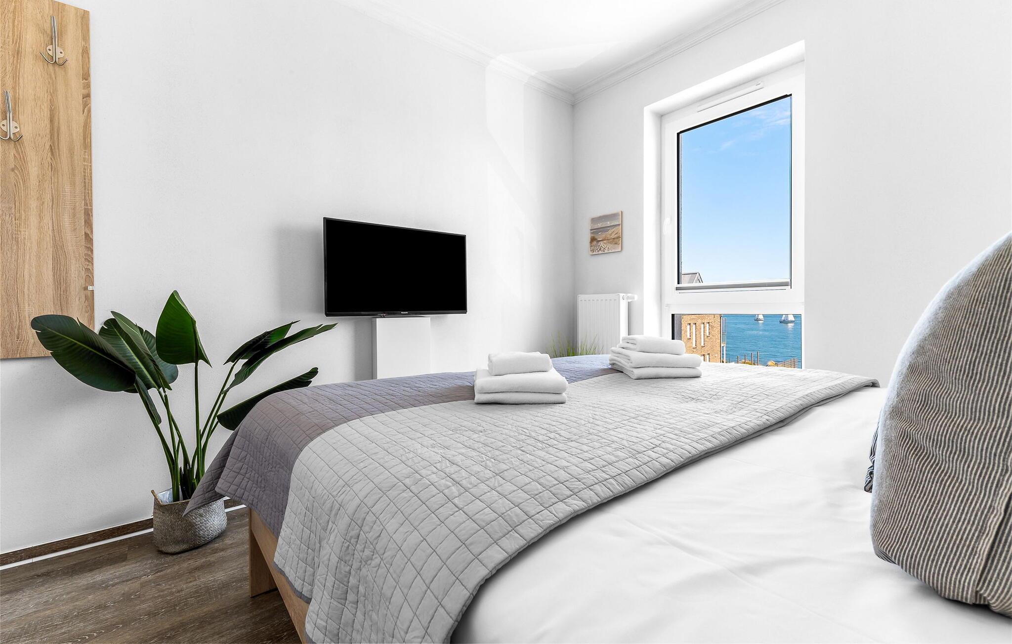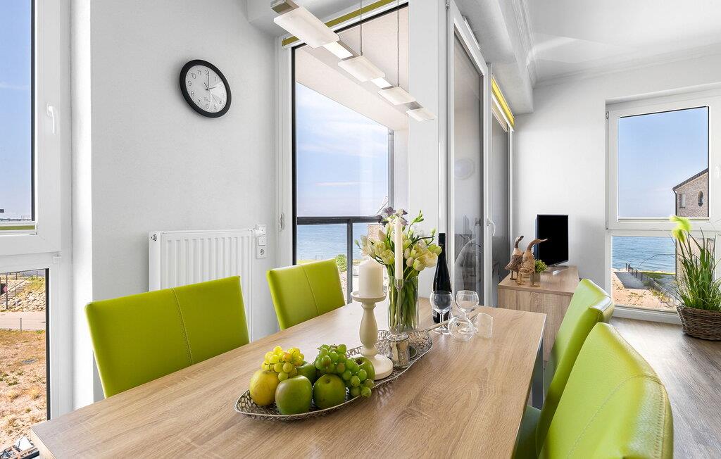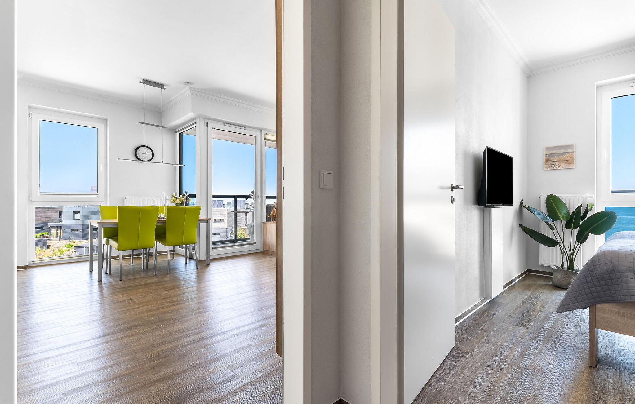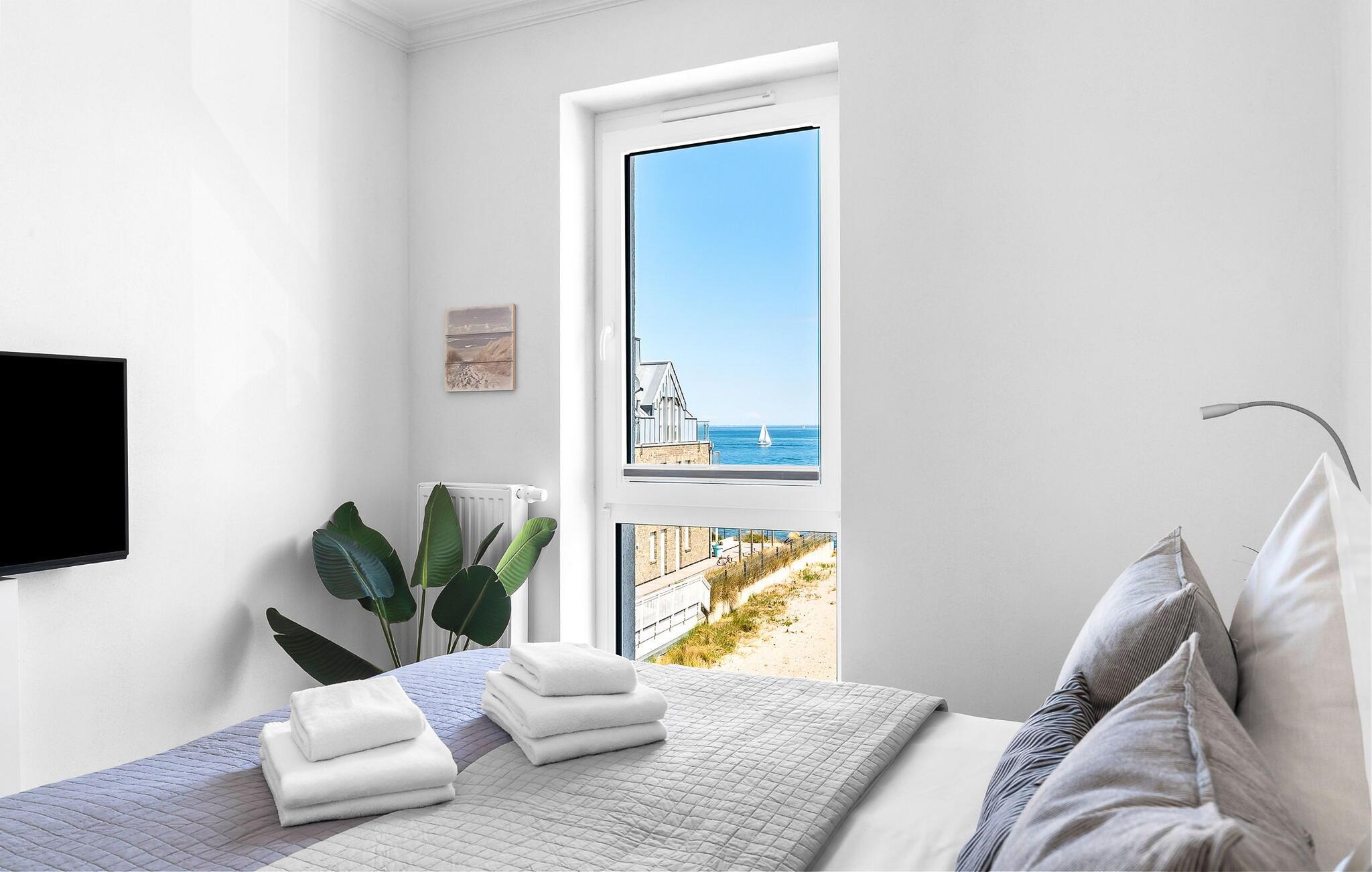 Denne ferielejlighed byder på alt hvad I behøver til en afslappende ferie ved Østersøen. Denne bolig inkluderer også en underjordisk parkeringsplads og en cykelkælder med opladningsfaciliteter til e-cykler. Der er også et fælles vaskerum med vaskemaskine og tørretumbler (via møntautomat) til jeres rådighed.