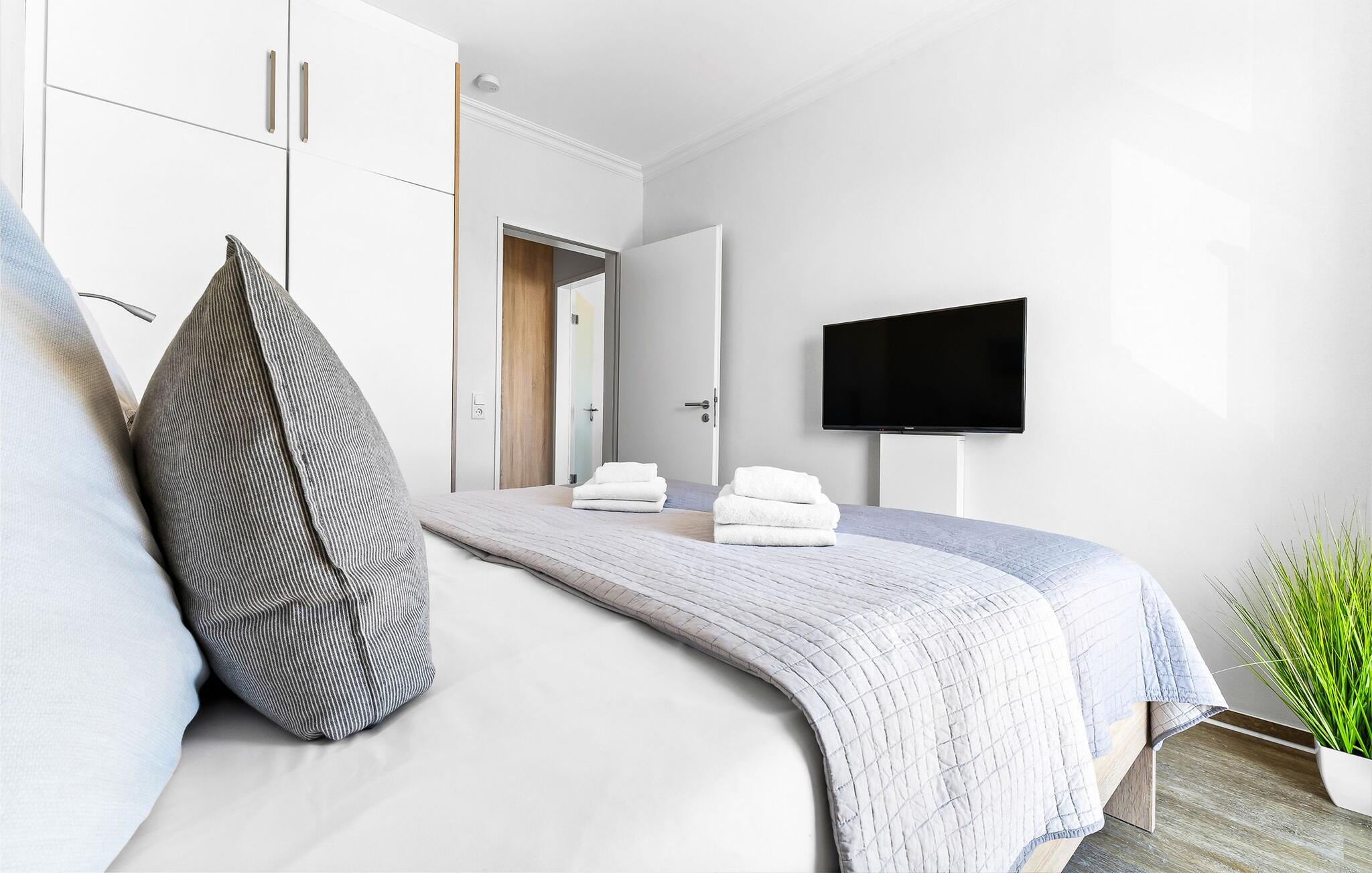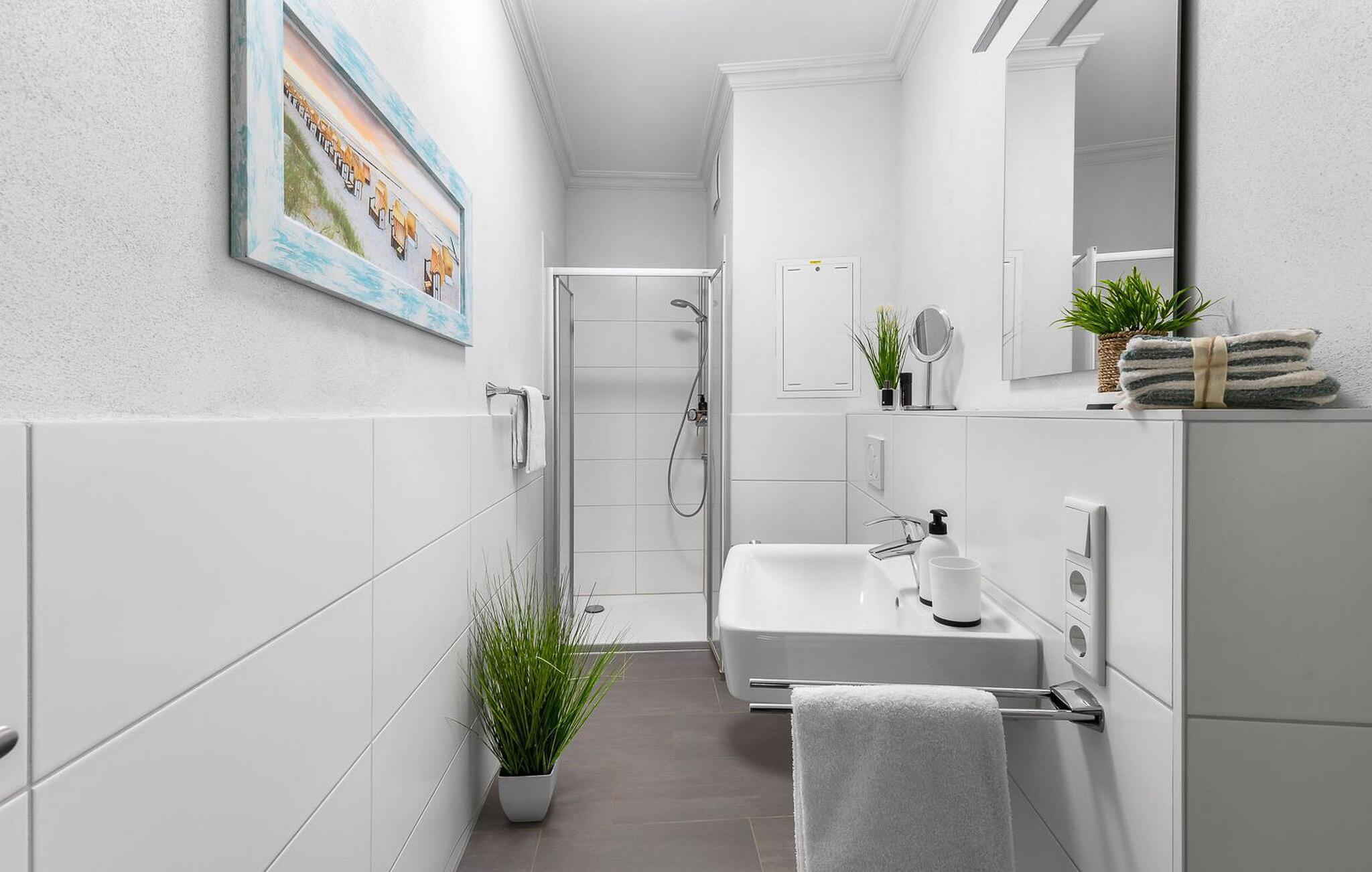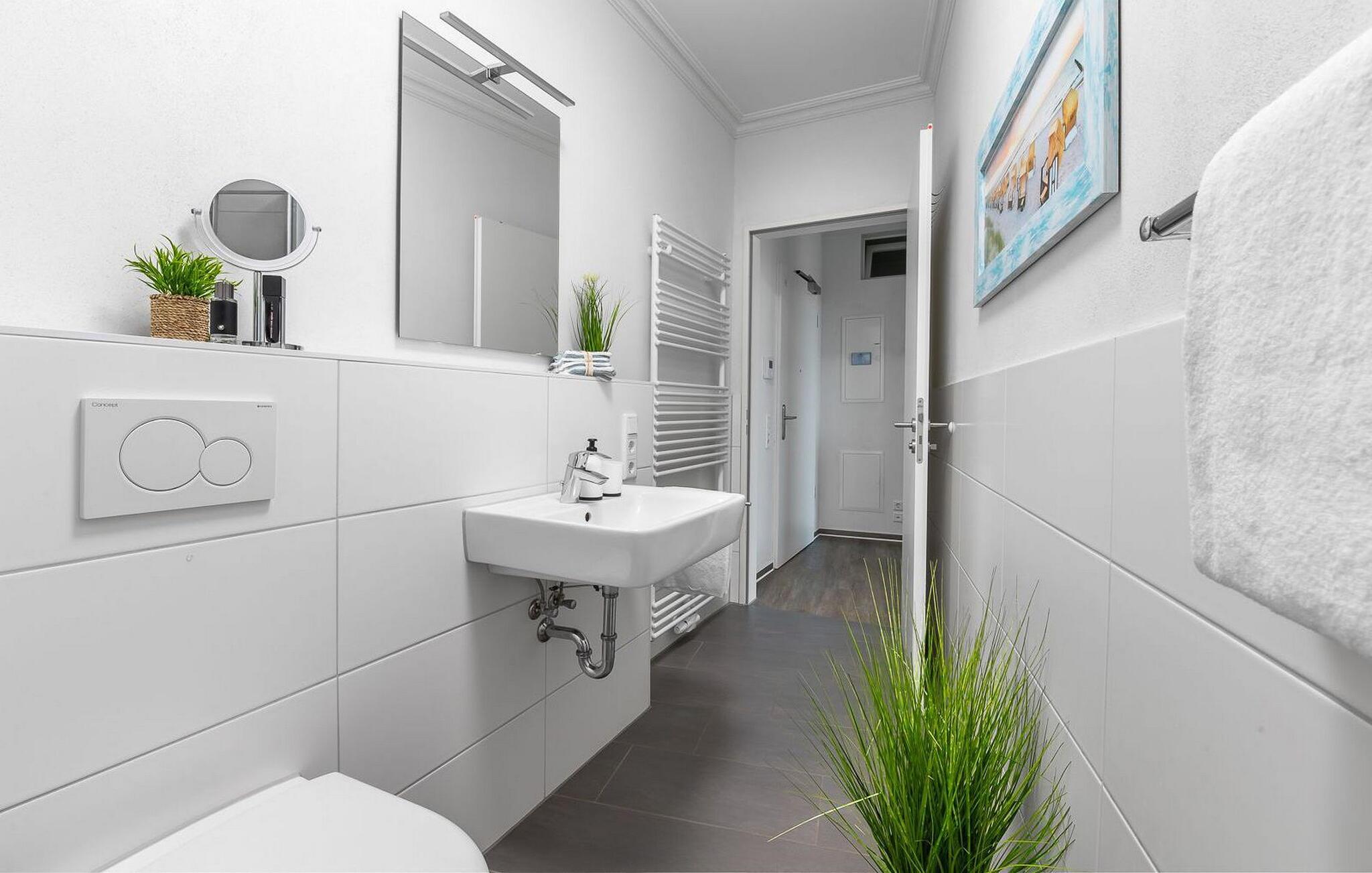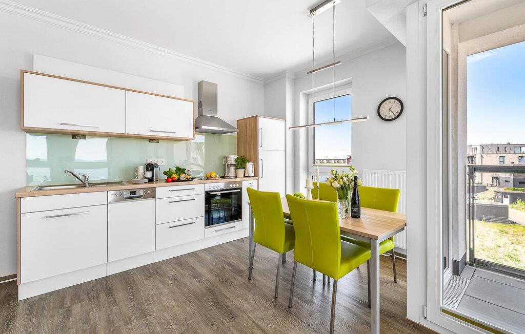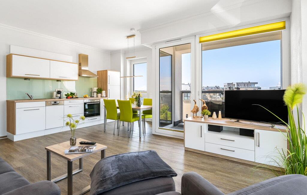 Denne ferielejlighed byder på alt hvad I behøver til en afslappende ferie ved Østersøen. Denne bolig inkluderer også en underjordisk parkeringsplads og en cykelkælder med opladningsfaciliteter til e-cykler. Der er også et fælles vaskerum med vaskemaskine og tørretumbler (via møntautomat) til jeres rådighed.