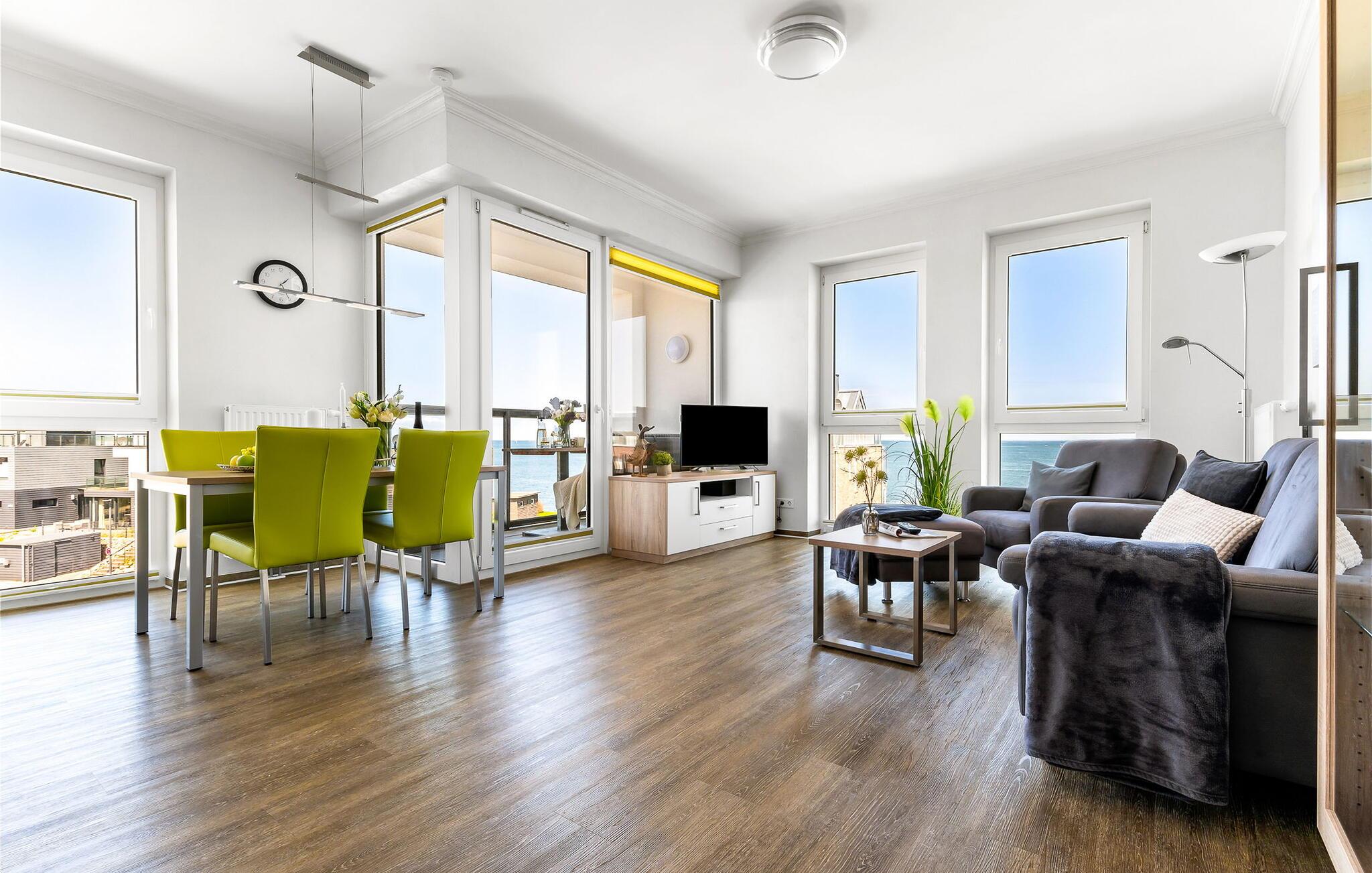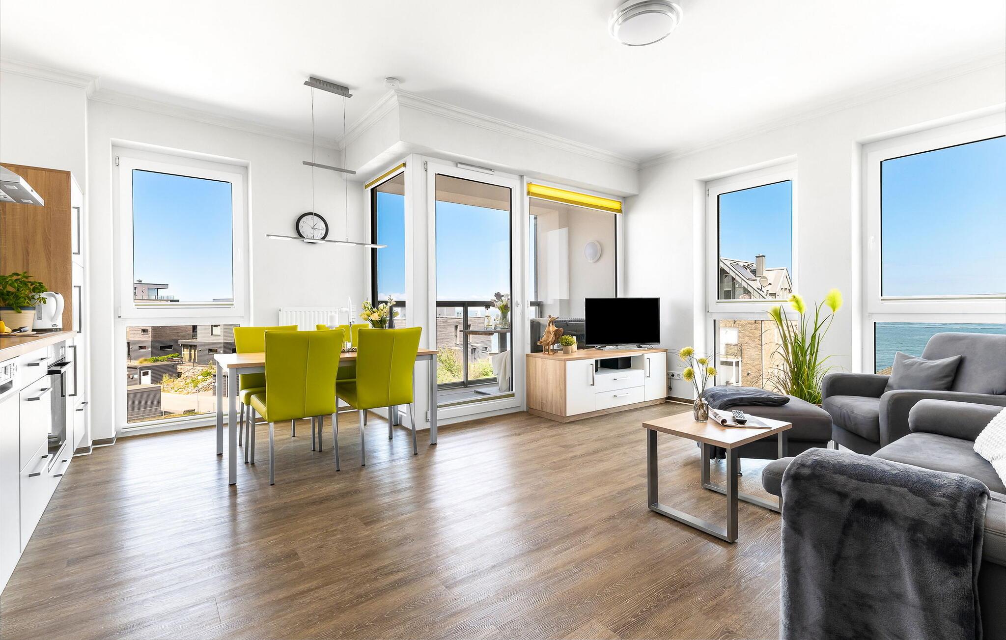 Velkommen til jeres skønne ferielejlighed ved Østersøen! Denne luksuriøst indrettede lejlighed på 2. sal tilbyder jer ikke kun en betagende udsigt over havnen og Østersøen, men også førsteklasses møblering og mange faciliteter, der vil gøre jeres ophold til en uforglemmelig oplevelse.
