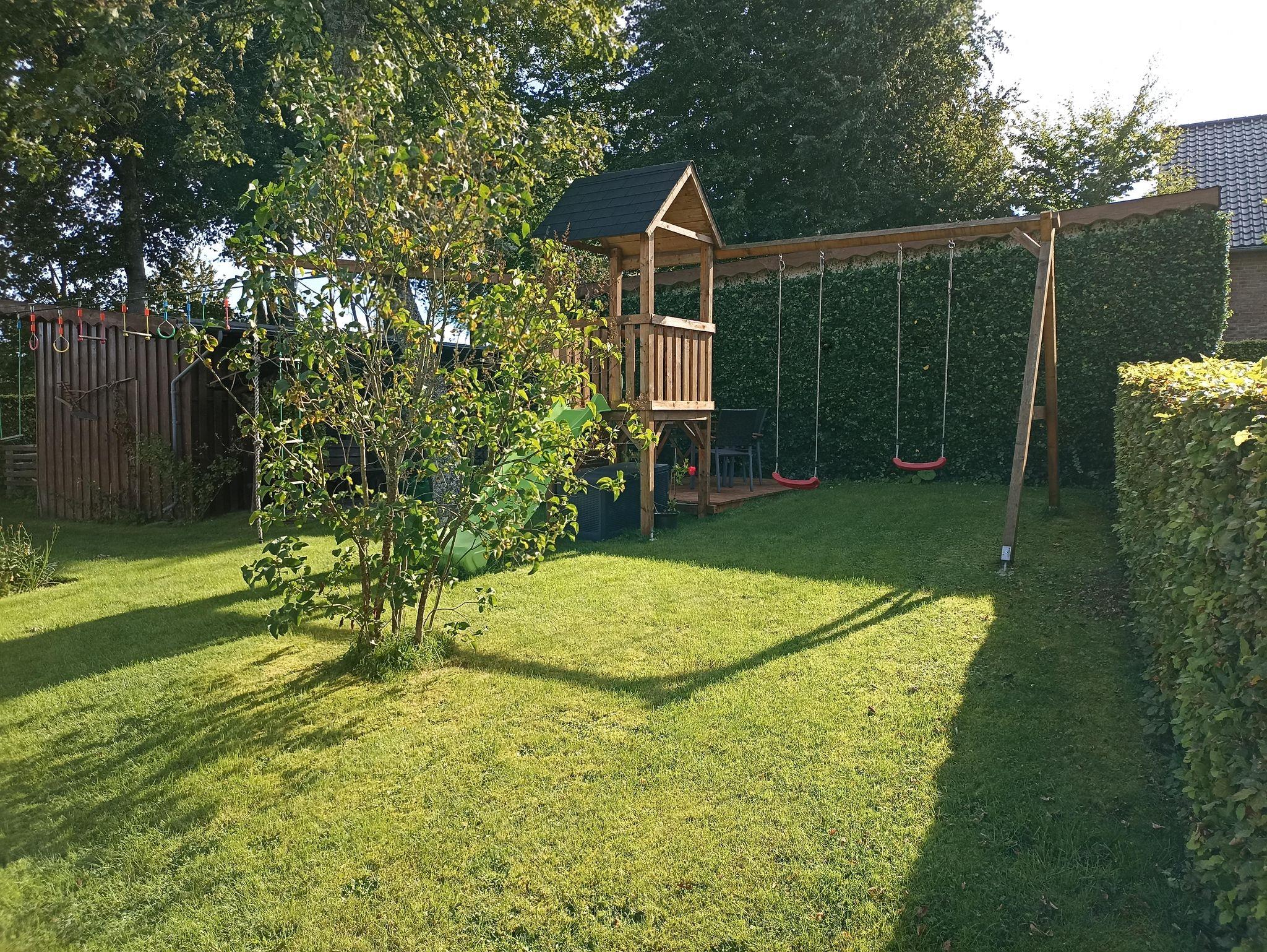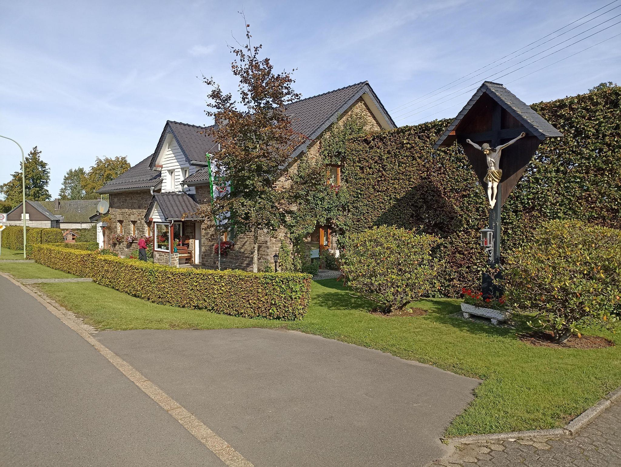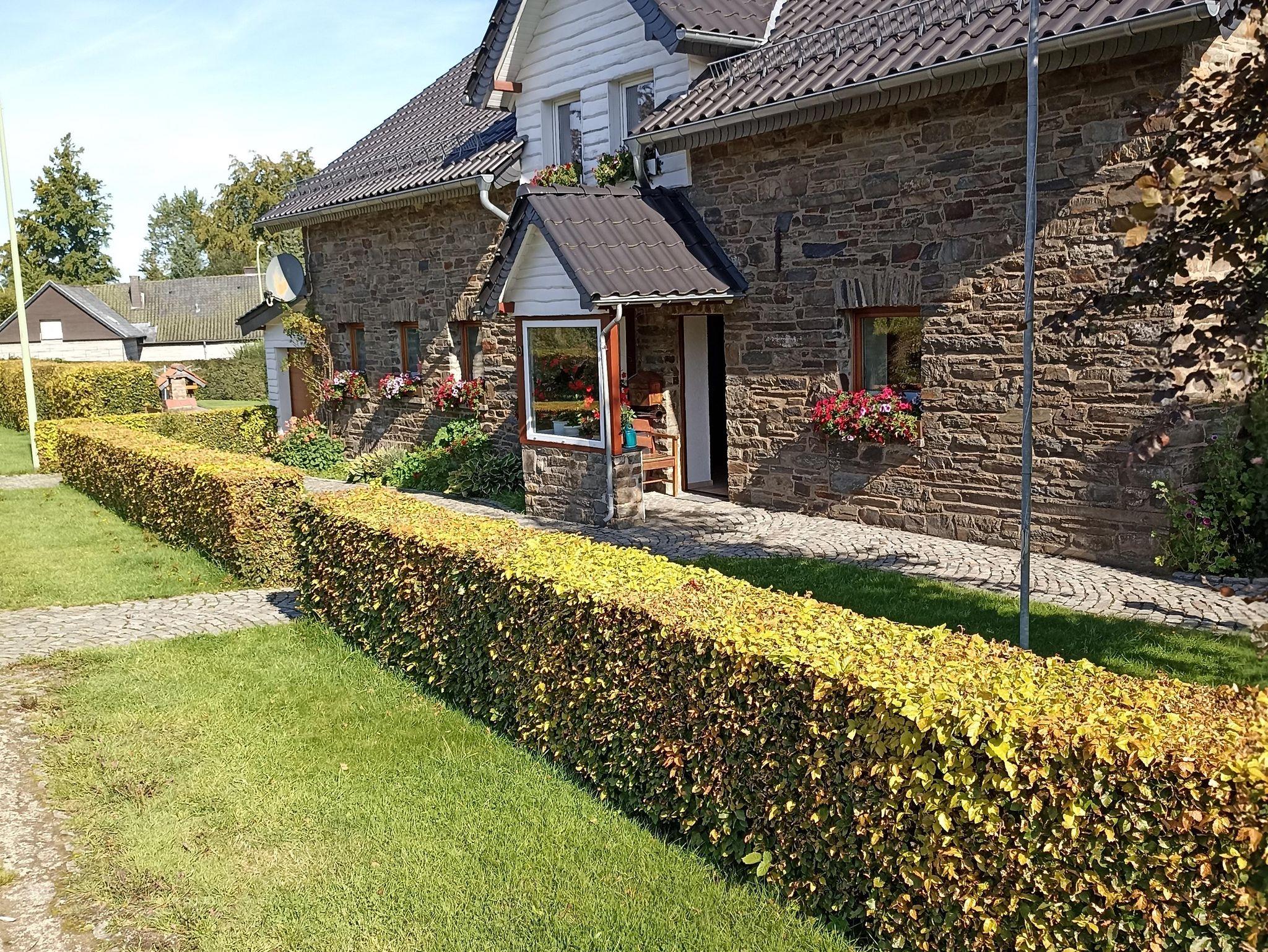 Wir haben unsere Wohnung Biebes - das heißt Schmetterling - genannt. Der Biebes ist das Wahrzeichen unseres Dorfes und wir bringen mit dem Namen unsere Verbundenheit mit unserem Heimatort zum Ausdruck. Zum Haus gehört ein großer Garten, der von unseren Gästen mitgenutzt werden kann. Wir pflegen unser Grundstück, lassen der Natur in einigen Bereichen aber auch ihren Raum, so dass uns im Sommer eine Vielzahl von echten Biebessen begegnen. Im Herbst sammelt ein Eichhornpärchen die Nüsse ein. Es gibt auch Räuber an unserem Haus, denn ein bis zwei Elsterpärchen nisten immer in den großen Buchen im Garten.