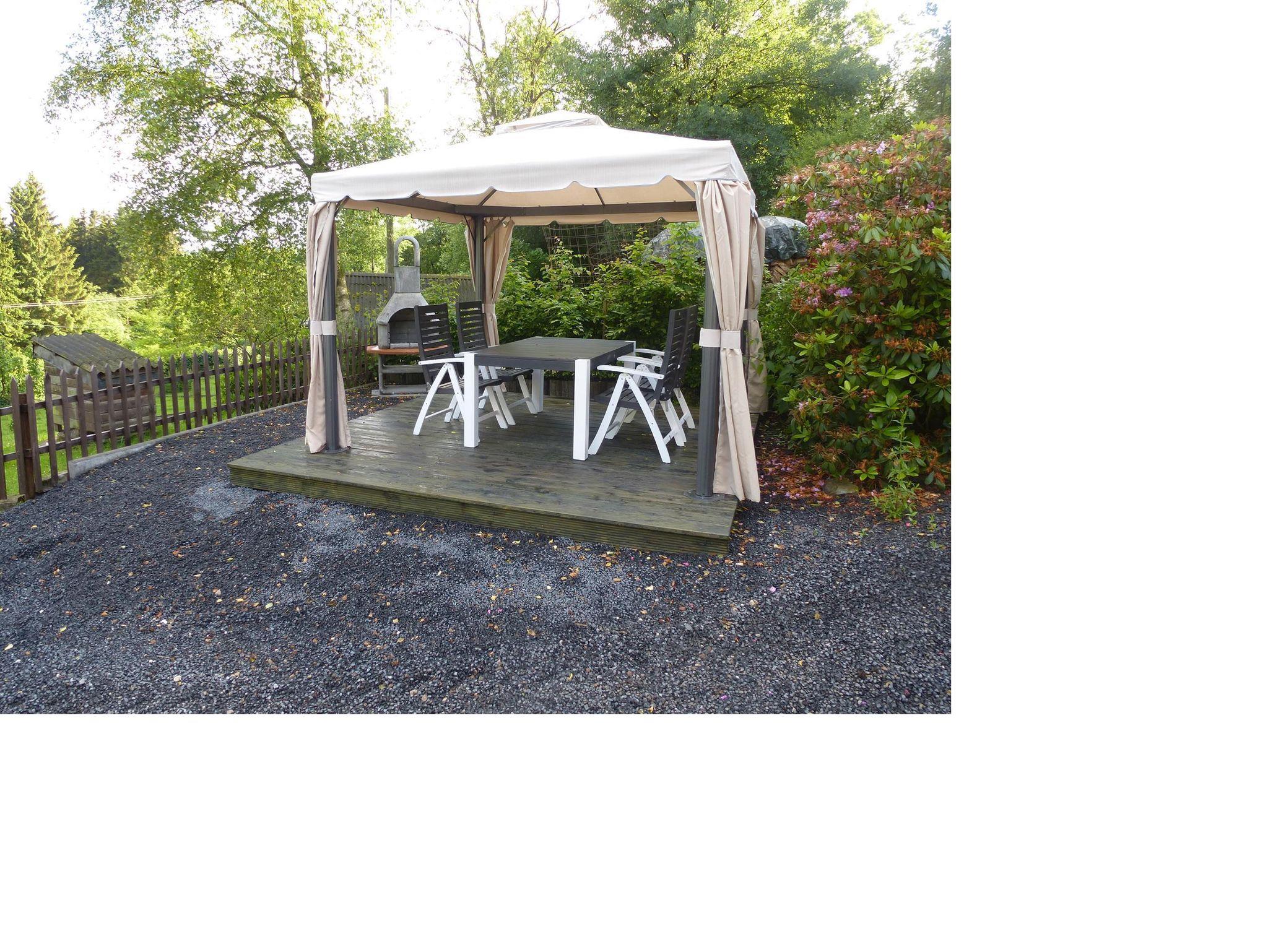 Beide Ferienwohnungen befinden sich im gleichen Haus, links die Wohnung Brettbaum und rechts Wohnung Kirmessief, jeweils mit eigenem Eingang. Die jeweiligen Außenbereiche befinden sich unmittelbar neben den Wohnungen.