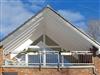 Der großzügige Balkon ist mit Gartenmöbeln und einem Sonnenschirm ausgestattet.